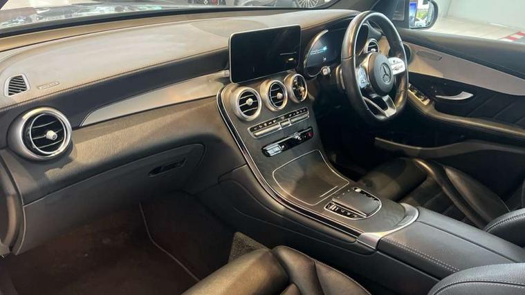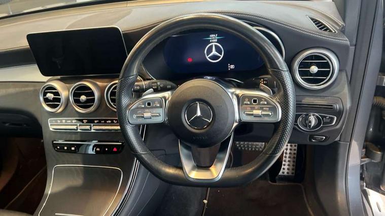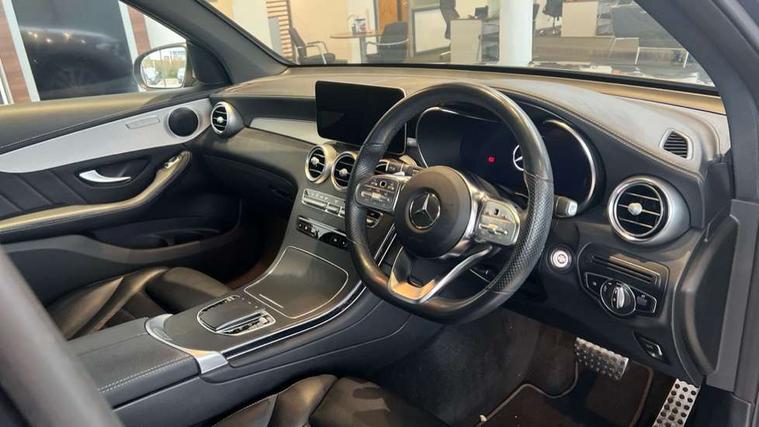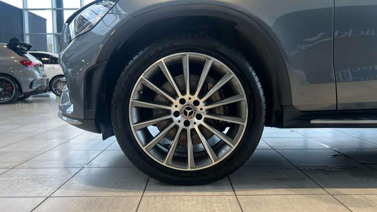 Active parking assist with parktronic system, Attention assist, Bluetooth interface for hands free telephone, Collision prevention assist plus, Cruise control with speedtronic variable speed limiter, Direct steer speed sensitive steering, DYNAMIC SELECT with a choice of driving modes (ECO, Comfort, Sport, Sport+ and Individual), Easy pack automatic powered tailgate, ECO start/stop function, Hard disk navigation, Hey Mercedes Voice activation, Instrument cluster with12.3-inch digital instrument cluster display. High resolution instrument cluster screen with choice of three display styles, MBUX Interior assistant, Mercedes connect me with remote online services, Multi function trip computer, Outside temperature display, rear seatbelt status indicator, Remote boot release, Reversing camera, Service indicator (ASSYST), Smartphone integration with Apple CarPlay and Android auto, Traffic sign assist, 4MATIC permanent four wheel drive, 66 litre fuel tank, 9G TRONIC plus automatic transmission with steering column gear selector, DIRECT SELECT steering wheel gearshift paddles, Diesel particulate filter, Sports suspension tuned for improved handling and driving dynamics, 5 speakers, Frontbass loudspeakers, MBUX multimedia system with DAB digital radio and touchpad, Media display 10.25-inch touchscreen display, Pre installation for Mercedes Benz Link, USB ports x 2 in centre console, Adaptive brake lights, Aluminium roof rails, AMG bodystyling - AMG front apron with sporty air intakes and chrome trim element, AMG diffuser-look rear apron with insert in black, Body colour door mirrors, Body coloured bumpers, Electric windows one touch open/close, Electrically adjustable and heated door mirrors, Front, side and rear exterior chrome trim, Headlamp assist automatic headlamp activation, High level LED brake light, LED high performance headlamps with integrated LED daytime running lights, LED tail lamp, Motor way mode function and locator lighting, Privacy glass with dark glass from B pillar backwards, Radiator diamond grille, Rain sensor windscreen wipers, Range adjustable headlights, Rear side wing doors, Rear wiper, Roof spoiler, Running boards, Tinted glass all round with single layer safety glass, Tinted rear windows, Two chrome plated tailpipe trim elements, Variable front intermittent wipers, 2 way rear head restraints, 3-spoke multifunction sport AMG steering wheel in black nappa leather with flattened bottom section, chrome insert and perforated leather in grip area, 40:20:40 split folding rear seats, Ambient lighting, AMG floor mats with edging and embroidered AMG lettering, AMG sports seats, Artico man-made leather upper dashboard with contrast topstitching, Automatic child seat recognition sensor, Black roof lining, Dividing net - rear, Double cup holder in centre console, Easy-pack removable load compartment cover, Front armrest with storage box, Front door sills with Mercedes Benz lettering, Front head restraints, Front seats with electric adjust (backrest, height and seat cushion inclination) with 4 way electric lumbar support and manual cushion depth adjust, Heated front seats, Height/reach adjustable steering column, Illuminated and lockable glove compartment, Leather upholstery, Rear top tether child seat ISOFIX attachment, Sports pedals with stainless steel surfaces and rubber studs, Steering wheel with touch control buttons, THERMOTRONIC 3 zone automatic climate control, Interior lighting pack - GLC, Mirror pack - GLC, Storage pack - GLC, 3 rear 3 point seatbelts, Active bonnet, Adaptive brake system with HOLD function and brake drying in the wet, ASR, Black seat belts, Brake calipers with Mercedes-Benz lettering + perforated brake discs, Child proof door locks, Dual-stage airbags - driver and front passenger, driver knee bag and window bags for driver, front passenger and rear passengers, Electronic parking brake, Electronic stability programme (ESP) with curve dynamic assist and cross wind assist, Front and rear seatbelt reminder, Front passenger seat occupancy sensor, Hill hold function, Tyre pressure monitoring system, Warning triangle and first aid kit, Alarm system/interior protection/immobiliser, Automatic door locking, KEYLESS-GO starting function, Remote central locking, Open pore black ash wood trim, 20" AMG multi spoke design alloy wheels painted in titanium grey with high sheen finish, Run flat tyres, Summer tyres,