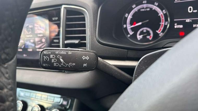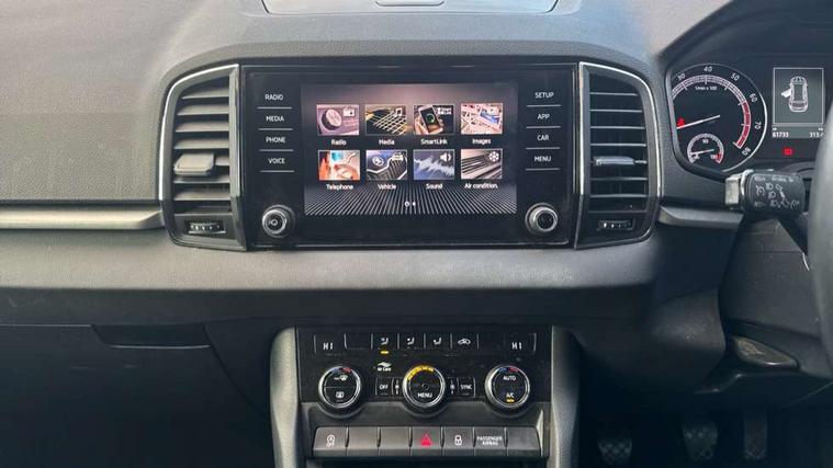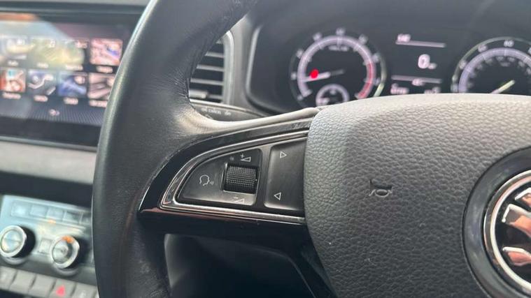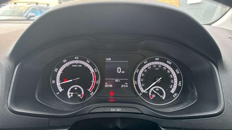 Chrome framed air vents, Storage on wheel cover, Alarm with interior monitoring, back up horn and tilt sensor with safe function, Electronic engine immobiliser, Remote central locking with 2 remote folding keys, DAB radio with Bluetooth, SD card slot, USB connection, Airbags - Front side, head, knee and curtain, Automatic door unlocking in case of crash, Automatic fuel cut off in case of crash, Driver airbag, Electronic parking brake with auto hold function, Emergency rear braking signal, ESC including ABS, MSR, ASR, EDS, HBA, DSR, RBS, MKB and traction control, Front assist radar scanning of the space in front of the car with automatic braking, Hill hold control, Passenger airbag with switch-off function, Pedestrian monitor, Three point seatbelts rear, Two tone horn, Tyre pressure display, Tyre pressure monitor, Acoustic glass, Aero front windscreen wipers with intermittent function, Automatic headlight control system, Body colour door mirrors and handles, Body coloured bumpers, Electric front and rear windows with child proof lock, Electrically adjustable heated folding and auto dimming door mirrors with boarding spots, Heated rear windscreen, LED rear lights with high functionality, Light assistant (coming/leaving home/tunnel light), Privacy glass, Safety reflectors on front doors, Third brake light, 1.5 litre bottle holders in driver and front passenger door panels, 12V socket in boot, 12v socket in front centre armrest with storage compartment and rear air vents, 2 Folding hooks and nets in boot, 2 Front readings lights for driver and passenger, 3 rear height adjustable headrests, 4 foldable roof handles with rear coat hooks, 4 lashing points on luggage floor, Backrest release, Cargo elements in boot, Chrome inner door handles, Driver and passenger seats height adjust, Dual zone climate control, Folding tables on the front seat backrests, Front seat and rear pockets, Height adjustable front three point seats belts with tensioners, Height/reach adjust steering wheel, Ice scraper, Illuminated and cooled glovebox, Illuminated luggage compartment, Isofix child seat preparation outer rear, Manual lumbar support for front seats, Net programme in boot, Pen holder, Pollen filter, Rear boot cover, Rear reading lights, Rear seats fixed folding and divided 60:40, Removable LED torch in the boot, Safety vest holder, Seatbelt reminder signalisation and pretensioner for all seats, Storage box in upper central dashboard closed, Storage net on centre console passenger side, Sunglasses storage compartment, Sunvisors with illuminated vanity mirrors, Umbrella under passenger seat, Driver alert system, Driver fatigue sensor, Driver profile selection, Electro-mechanical PAS, Outside temperature gauge, Service interval indicator, Start/stop system with regenerative braking,