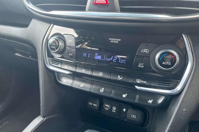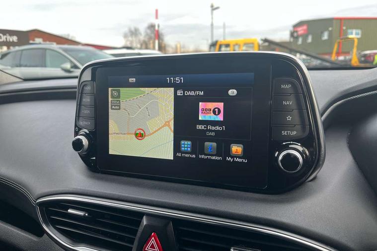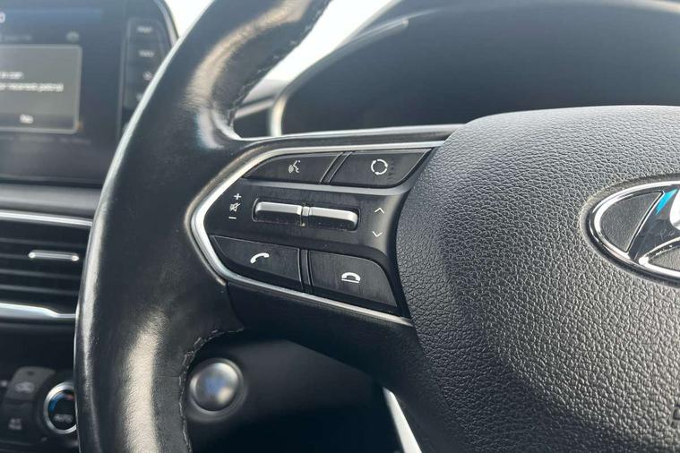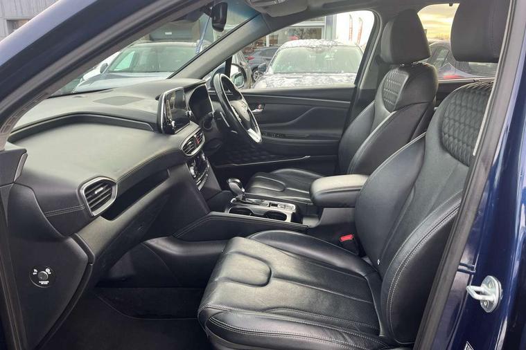 8" touch screen sat nav with TMC, Adaptive cruise control with Stop and Go, Apple car play/Android Auto, Around View Monitor, Blind spot assist, Bluetooth connectivity with voice control, Drive mode selector, Driver alert system, Emergency stop signalling system, Front parking sensor, Fully electric and hands free tailgate + keyless entry and start, Head up Display, Lane departure warning system, Lane keep assist, Park assist with rear view camera, PAS, Rear cross traffic alert, Rear parking sensor, Smartphone connectivity, Smartphone wireless charging plate, Trip computer, Self levelling suspension, Vehicle Stability Control (VSC), Auxiliary input socket, DAB Digital radio, Premium audio system with 10 speakers, Rear USB port, Steering wheel mounted controls, USB connection, Auto dimming rear view mirror with compass, Automatic defog system, Automatic headlights with dusk sensor, Automatic windscreen wiper control, Body coloured bumpers, Body coloured door mirrors, Chrome door handles, Dynamic cornering light, Electric folding door mirrors, Electric front/rear windows/one touch/anti trap, Electric panoramic sunroof, Follow me home headlights, Heated rear windscreen, Heated/electric door mirrors with integrated indicators, High beam assist, LED brake lights, LED daytime running lights, LED front fog lights, LED Headlights, LED rear fog light, LED rear lights, Positioning Lights - LED, Privacy glass, Puddle lights, Rain sensor, Rear spoiler, Rear wash/wipe with intermittent wipe setting, Roof rails, Solar glass with windscreen shade band, Trailer stability assist, Variable front intermittent wipers, Windscreen wiper de-icer, 12V power point in luggage area, 12V power points in front + rear centre consoles, 50/50 split/folding 3rd row of seats, 60/40 split folding slide/recline seats 2nd row, Bottle holders, Driver seat memory function, Driver's seat electric height adjustment with lumbar support, Driver/passenger sunvisors + illuminated vanity mirrors (drivers with ticket holder), Dual zone climate control, Electric lumbar adjustment on passenger's seat, Faux leather door trim, Front and rear door pockets, Front armrest/storage, Front cupholders, Front map reading lights, Front passenger seat electric height adjust, Front seat and rear pockets, Front/rear interior lights, Fully adjustable front head restraints, Grab handles, Heated front seats, Heated rear seats, Heated steering wheel, Height adjustable rear head restraints, Height/reach adjustable steering column, Internal chrome door handles, Isofix child seat preparation for front passenger seat, Isofix on 2nd row rear seats, Leather gear knob, Lockable/illuminated air conditioned glovebox, Luggage compartment lighting, Luggage hooks, Luggage net, Manual rear door side blinds, Multifunction leather steering wheel, One-touch folding rear seats, Overhead console with sunglasses holder, Rear armrest with cupholder, Retractable load area cover, Underfloor storage system in load area, Ventilated front seats, Trailer wiring pack - Santa Fe, 3 point seatbelts on all seats, ABS/EBD, Autonomous emergency braking, Brake assist function, Childproof rear door locks, Downhill Assist Control (DAC), Driver and passenger airbags, Drivers knee airbag, Electronic parking brake with auto hold, ESP, Front and rear curtain airbags, Front seatbelt pretensioner, Front side airbags, Height adjustable front seatbelts, Hill start assist control (HAC), Passenger airbag deactivate switch, Predictive pedestrian protection, Rear seat belt pretensioners, Rear seat Occupancy alert, Seatbelt warning lamp, Traction control, Tyre pressure monitoring system, Alarm and remote central locking, Automatic door locking, Deadlocks, Engine immobiliser, Locking wheel nuts, Faux leather wrapped dashboard, 19" alloy wheels, Alloy spare wheel,