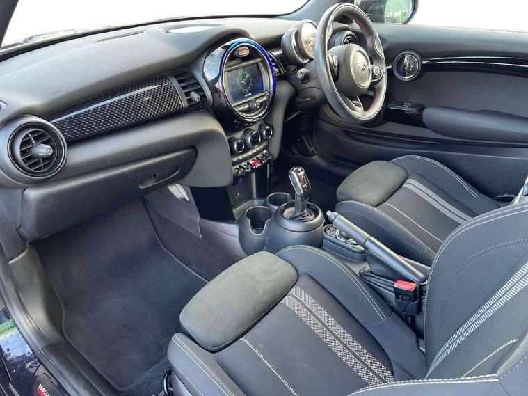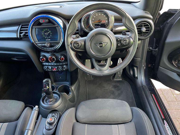 Automatic start/stop function with brake energy recuperation, Compatible mobile phone bluetooth with audio streaming, Electro-mechanical speed dependant steering assistance, Instrument cluster, Mini E-call, MINI TeleServices, On board computer, Service interval indicator, Double Vanos system, Fully variable valve control, High precision injection, Performance Control, Steptronic sport transmission with double clutch and steering wheel paddles, 6.5" touchscreen with LED ring, FM tuner and DAB digital radio, Automatic headlight activation switch, Bonnet scoop, Chrome border honeycomb structure radiator grille with S badge, Chrome plated fuel cap, Dynamic brake lights, Electric front+rear windows, Heated rear window, Heated windscreen washer jets, John Cooper Works - aerodynamic kit (front and rear apron, spoiler), front and rear sport bumpers and part-painted side sills with door sill finishers, John Cooper Works rear spoiler, LED headlight with closed ring and daytime driving lights, Metal door sill strips with Cooper S imprint, Model logo Cooper S on right of tailgate, Rain sensor window wipers, Rear fog lights, Rear LED lights with union jack design, Rear window wiper, Side scuttle panel with integrated indicator, Sun/heat protection glass, Two central exhaust tailpipes with chrome finisher, White indicator lenses, 12V Accessory socket in centre console, 4 lashing eyes in luggage compartment, 60/40 split folding rear seat, Anthracite headlining, Chrome interior highlights, Cupholders, Front and rear head restraints, Front and rear isofix with front passenger airbag deactivation, Glove compartment, Height and length steering column adjustment, Interior lighting with 12 basic colours selectable via toggle switch in roof, John Cooper Works leather steering wheel with contrasting stitching in Chilli Red with John Cooper Works logo, John Cooper Works Logo in seat, Leather gearshift lever and handbrake gaiters, LED reading lights, vanity mirror lights, front foot well light and spotlight on front seats, Manual air conditioning, Mechanical seat adjustment, driver seat height adjust, forward/back and front seats backrest, Mini logo projection on floor from drivers exterior mirror, Multifunction steering wheel, Storage compartments in doors, Storage pocket on back of front seats, Sunvisors with vanity mirrors, 3 point seatbelts on all four seats, 6 Airbags - front, side, head and seat belt tensioners, Anti-lock braking system (ABS), DSC - Dynamic Stability Control, Front and rear disc brakes, Hill start assist, Two tone horn, Tyre pressure monitoring system, Alarm system with tilt sensor, monitoring doors, bonnet interior and tailgate, Electronic vehicle immobiliser, Start/stop toggle with keyless go, Tool kit,