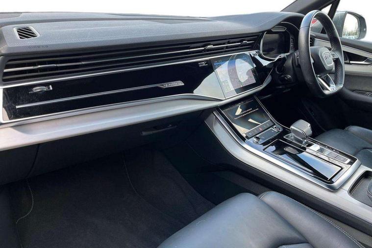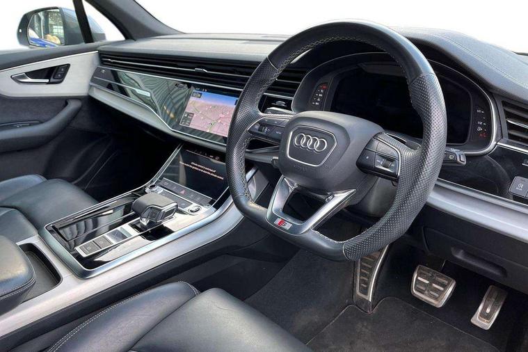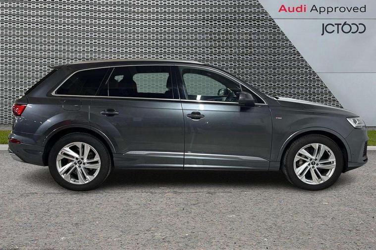 Audi connect safety and service (e-call), Audi connect with Amazon Alexa Integration, Audi drive select (Auto, Comfort, Dynamic, Efficiency, Individual, Off-road and All road), Audi smartphone interface includes wireless Apple carplay/Android Auto, Bluetooth interface, Camera based traffic sign recognition, Electromechanical steering, MMI navigation plus with MMI touch screens includes 10.1" and 8.6" screens with haptic feedback, Natural voice recognition, Parking system plus with 360 degree display (front, rear and side sensors) - acoustic and visual park assist system, Power operated tailgate, Rear view camera, Start/stop system, 48V Mild hybrid technology, 85 litre fuel tank, Adaptive air suspension, Quattro all wheel drive with self locking centre differential, Audi music interface - front 2 USB-C ports with charger and data functions, Audi sound system with 6 channel amplifier, 180 watt amplifying capacity and 10 loudspeakers including subwoofer, DAB digital radio module, 3rd brake light, Aluminium roof rails, Aluminium window trim, Audi matrix LED headlights with dynamic front and rear indicators, Auto dimming frameless rear view mirror, Body coloured door mirrors, Electrically adj heated/folding + automatically dimming exterior mirrors with memory + automatic kerb side function for passenger side exterior mirror, Heat insulating glass in windshield, Integrated LED indications in door mirrors, LED daytime running lights, LED rear tail lights, Privacy glass - dark tinted rear and rear side windows from B-pillar backwards, Rear side wing doors, Rear wiper, S Line badge on wings, S line bumpers in full body colour paint finish, S line roof spoiler, S line styling side ventilation grilles and side skirts, 2 seat bench in 3rd row, 2 zone automatic climate control, 3 seat bench in 2nd row, 7 seat layout with ISOFIX points for the front passenger seat and rear passenger seat, Black cloth headlining, Comfort front centre armrest, Electric adjustable front seat with 4 way lumbar support, driver memory functionality, Folding rear seats, Front head restraints, Front/rear floor mats, Heated front seats, Illuminated door sill trims with S logo, LED interior ambient lighting, Luggage compartment cover, Luggage compartment sill protection in stainless steel, Rear head restraints, Single front passenger seat, Stainless steel pedals, Sunvisors with illuminated vanity mirrors, Tool kit, 3 point seatbelts on all rear seats, Audi pre sense front, Child locks on rear doors, Driver and front passenger, front side and curtain airbags, Electromechanical parking brake, Electronic Stabilisation Control (ESC) including ABS, ASR and EDL, Extended pedestrian protection measures, Hill hold assist, Seatbelt monitoring, Tyre pressure loss indicator, Warning triangle and first aid kit, Anti theft alarm, Anti-theft wheel bolts and wheel loosening detection, Keyless Go, Remote central locking, Darkened matt brushed aluminium inlays, Tyre repair kit,
