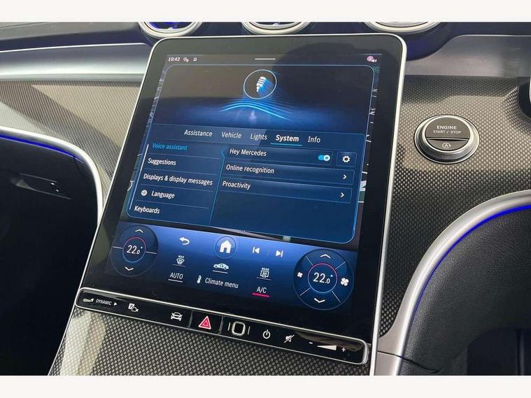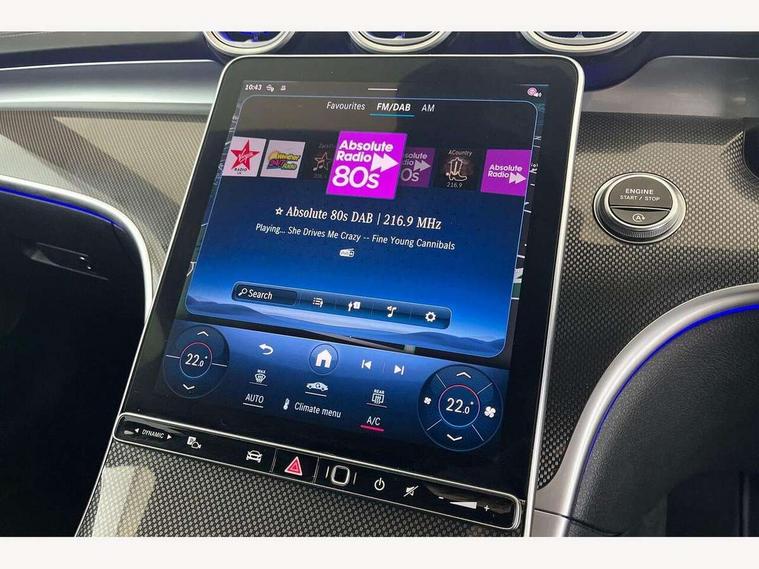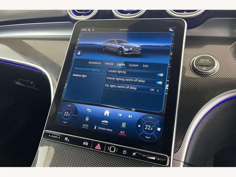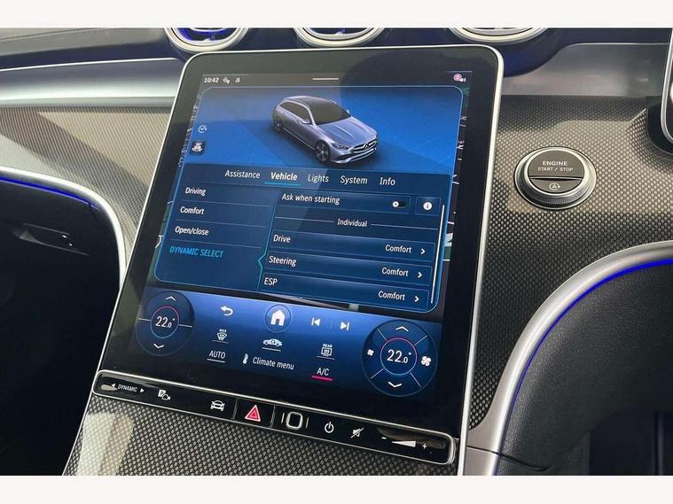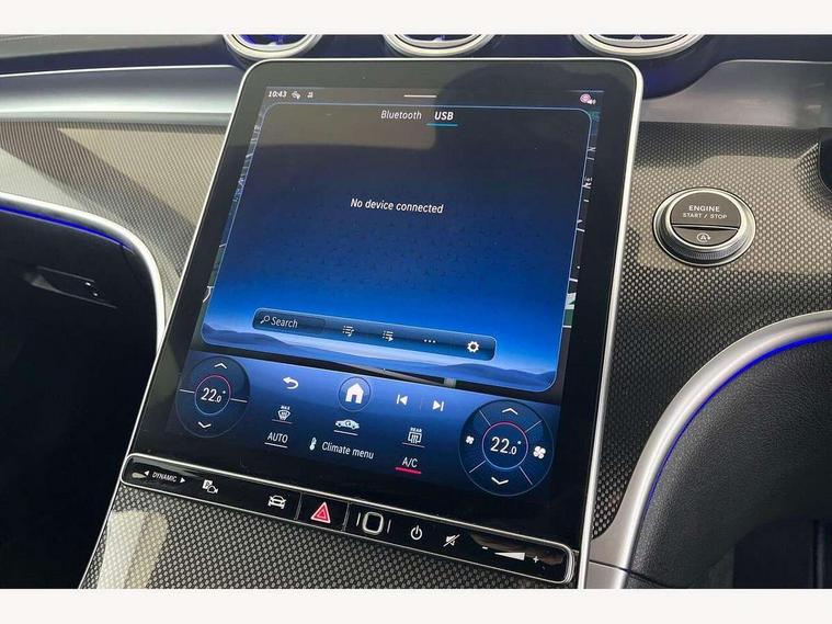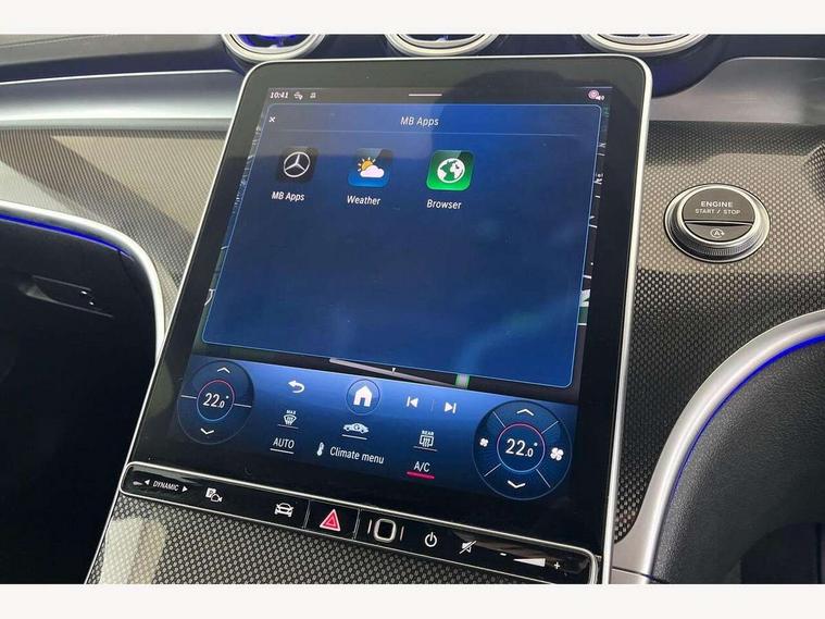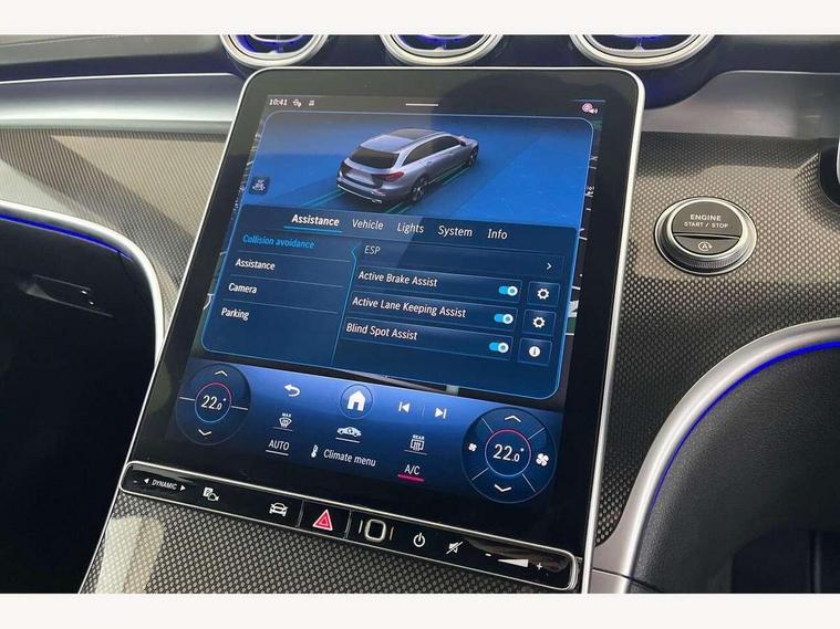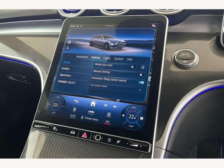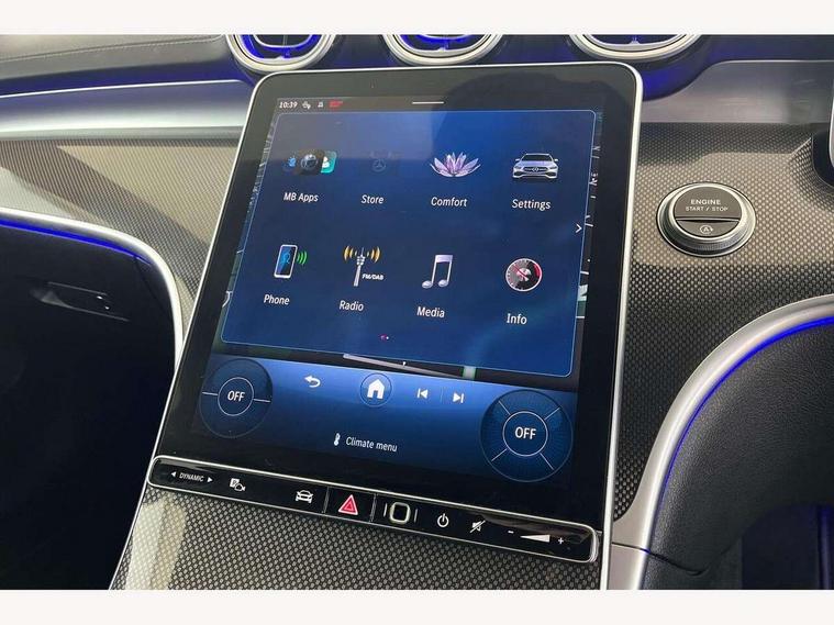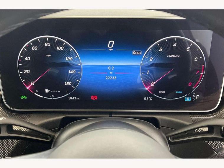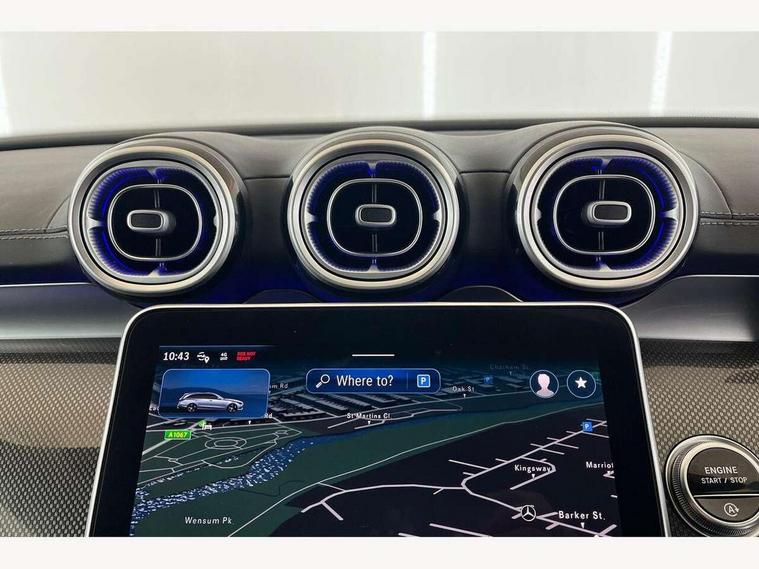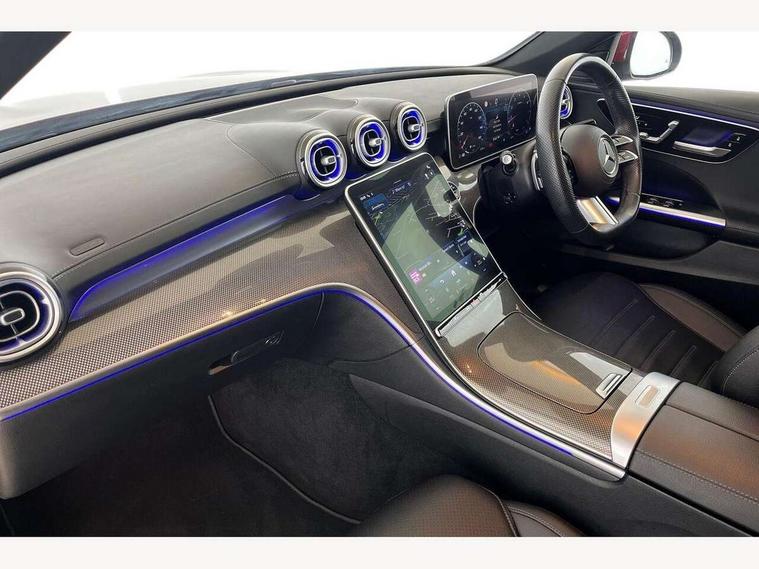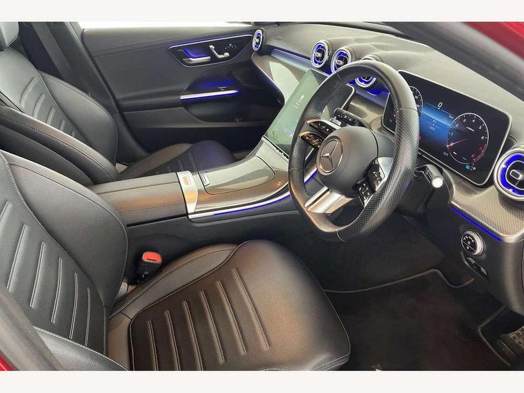11.9" high resolution multimedia colour display, 12.3" digital instrument cluster display, Active blind spot assist, Active brake assist plus, Active lane keeping assist, Attention assist, Cruise control with speedtronic variable speed limiter, DYNAMIC SELECT with a choice of driving modes (Comfort, ECO, Sport, Sport+, Individual), E-call, Easy pack automatic powered tailgate, Extended MBUX functions, Finger print sensor, Fluorescent jacket for driver, MBUX navigation premium, MBUX voice control activated by keywords "Hey Mercedes", Mercedes connect me, Mercedes me remote services, Outside temperature gauge, Pre-installation for digital key transfer, Remote boot release, Service indicator (ASSYST), Smartphone integration, Speed limit assist, Sports direct steer speed sensitive steering, Status display for rear seat belts in instrument cluster, Traffic sign assist, Wireless charging system for mobile devices, 66l fuel tank with increased capacity, 9G TRONIC 9 speed automatic transmission, Agility control sports suspension and lowered by 15 mm, Petrol Particulate Filter, Sporty engine sound system, DAB Digital radio, MBUX multimedia system, Adaptive brake lights, Adaptive high beam assist, AMG body styling front apron, rear apron and side skirts, AMG front bumper with sporty air intakes and chrome elements, AMG rear bumper with high gloss chrome elements, AMG side skirts in vehicle colour, B-pillar trim in glossy black, Body coloured bumpers, Body coloured door mirrors, Chrome beltline trim, Chrome roof rails, Daytime running lights, Electric windows with one touch opening/closing and obstruction sensors, Electrically adjustable and heated door mirrors, Green tinted glass, Heat insulating dark tinted glass, Illuminated front door sill panels, LED high performance headlamps, LED Indicators, LED tail lights, LED third brake light, Powerdomes on bonnet, Privacy glass, Radiator diamond grille with integrated Mercedes Benz star and louvre silver with chrome pins, Radio aerial integrated into rear window, Rain sensor with automatic windscreen wiper activation, Rear side wing doors, Rear wiper, Side windows surround in polished aluminium, Two visible exhaust pipes integrated into rear bumper, 3 seat bench in 2nd row, 3 spoke flattened bottom AMG multifunction steering wheel in black nappa leather with chrome inserts and perforated leather in grip area, 40:20:40 split folding rear bench seat, AMG sports seats, Artico man-made leather upholstery, Audio and onboard settings control on multifunction steering wheel, Auto Mercedes-Benz child seat recognition sensor, Black air vents with silver chrome elements, Black floor mats with AMG lettering, Black roof liner, Door trim elements high gloss black with silver chrome surroundings and switches, Double cupholder in centre console, Folding rear seat backrest, Front and rear head restraints, Front centre armrest with storage compartment, Front door sills with Mercedes Benz lettering, Gearshift paddles on steering wheel, Heated front seats, Illuminated glove compartment stowage, Interior lighting - 64 colour Ambient lighting, Load compartment cover, Manually height and reach adjustable steering column, Overhead control unit in high gloss black, Rear top tether child seat ISOFIX attachment, Single front passenger seat, Sports pedals with stainless steel surfaces and rubber studs, Sunvisors with illuminated vanity mirrors, THERMATIC 2 zone automatic climate control, Interior lighting package - C Class, Memory package - C Class, Mirror pack - C Class, Parking package with reversing camera - C Class, Seat comfort pack - C Class, Stowage space pack - C Class, USB package plus - C Class, 3 rear 3 point seatbelts, Active bonnet pedestrian safety measure which detects an impact and raises bonnet, Adaptive brake system with HOLD function and brake drying in the wet, Anti-lock braking system (ABS), Black seat belts, Brake calipers with Mercedes-Benz lettering + perforated front brake discs, Child proof door locks, Drivers knee airbag, Drivers pelvis airbag, Dual stage driver/passenger airbags, Electric parking brake, Electronic Stability Programme (ESP), Front centre airbag between driver and front passenger seats, Front side airbags, Larger brake discs on front axle, Rear seatbelt warning indicator, Sports braking system, Tyre pressure monitoring system, Warning triangle and first aid kit, Window airbags for driver, front passenger and rear passenger, Central locking with interior switch, automatic locking and crash sensor with emergency opening function, Chrome surround in electric key, Keyless Go, URBAN GUARD vehicle protection (Thatcham Category 1) consisting of break-in, anti-theft alarm system (ATA), interior monitoring and tow-away protection, Artico man-made leather dashboard with contrast stitching, Centre console trim in metal weave, 18" AMG 5 spoke design aerodynamically optimised alloy wheels painted in tantalite grey with high sheen finish, Summer tyres, TIREFIT with tyre inflation compressor,