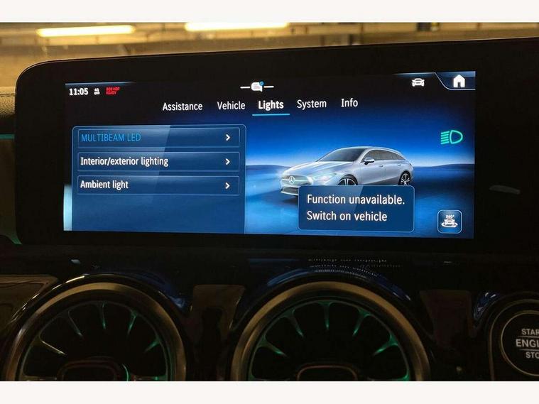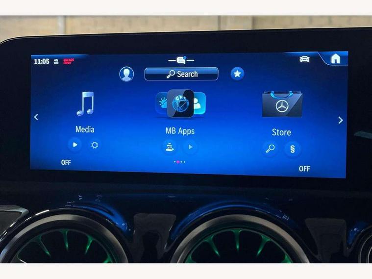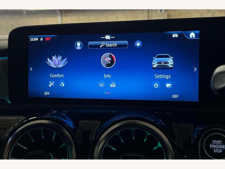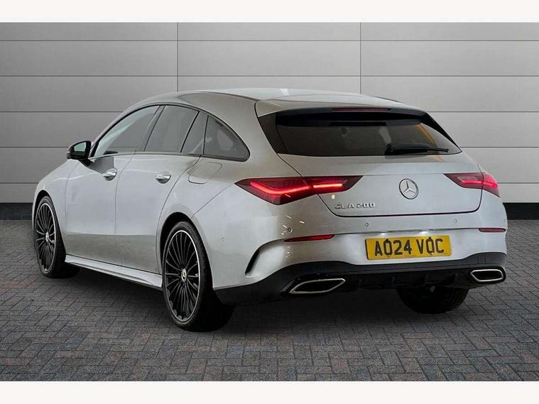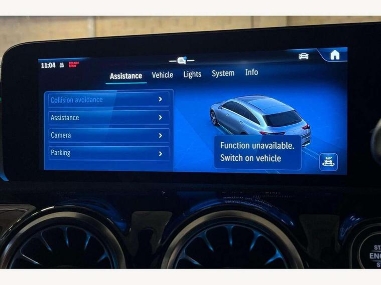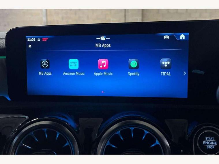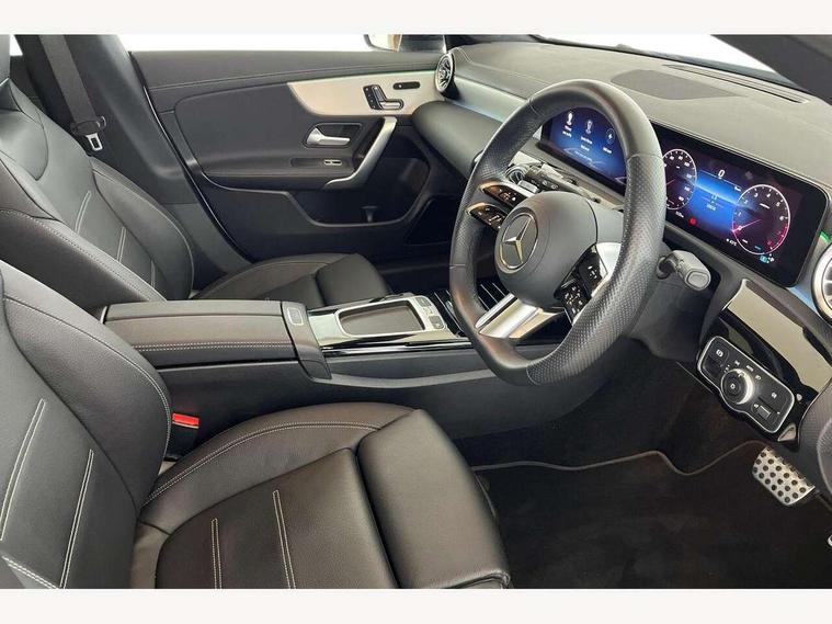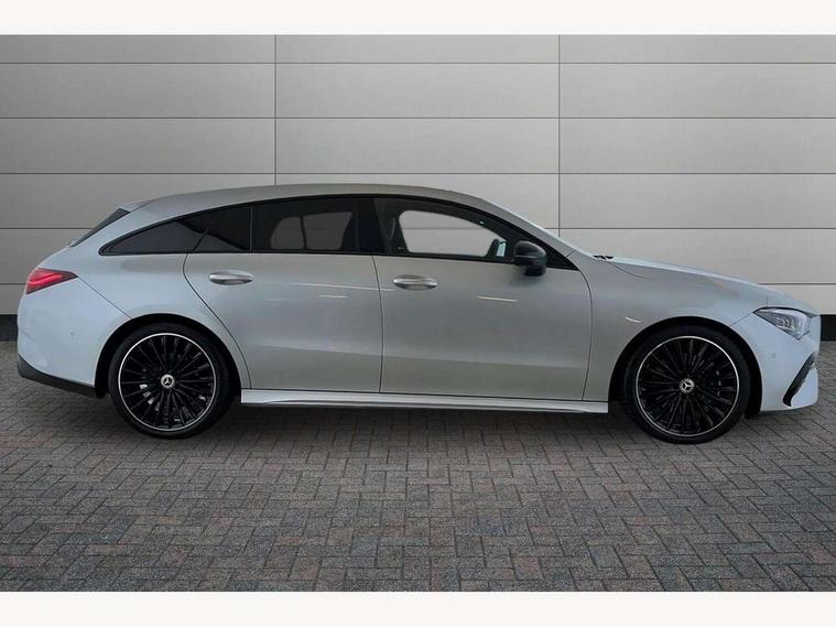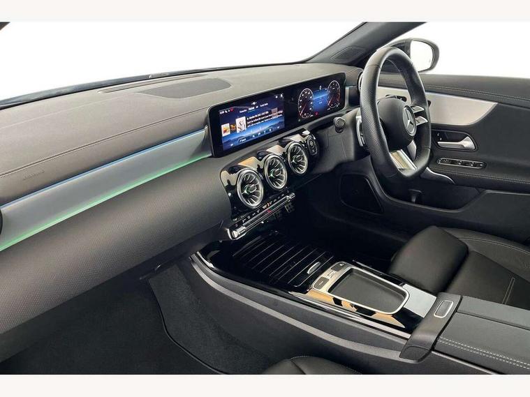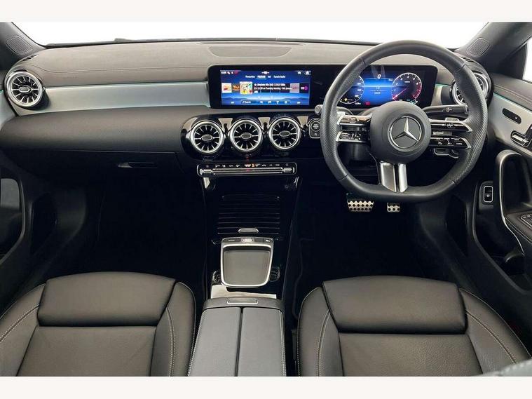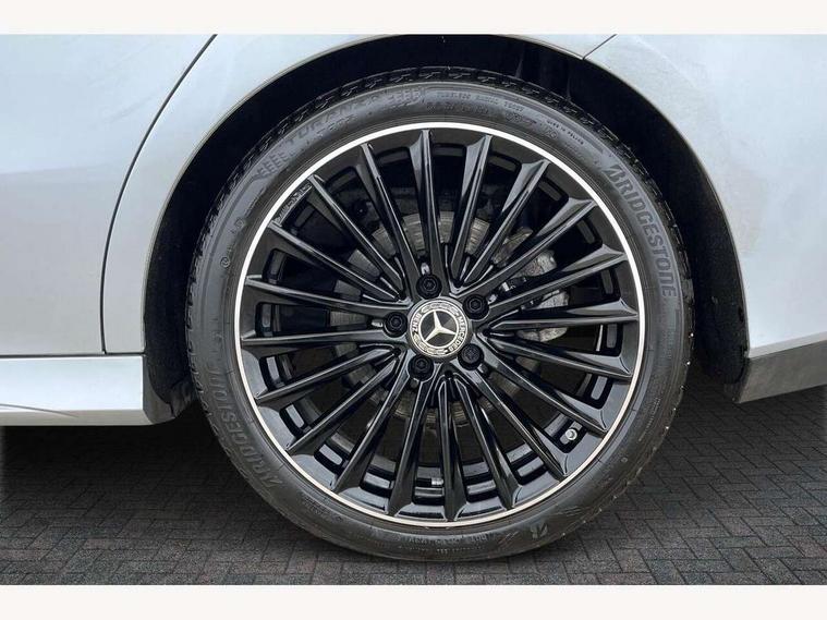 10.25 inch Instrument display with digital cockpit, 10.25 inch touchscreen central media display, Active lane keeping assist, Attention assist - Monitors steering behaviour and long journey fatigue, Bluetooth connection, Car wash mode, Cruise control with limiter, Direct steer system, DYNAMIC SELECT with a choice of driving modes (ECO, Comfort, Sport and Individual), ECO start/stop function, Fluid level warning indicator for fuel, oil, coolant and washer fluid, Hard-disk navigation, Hey Mercedes Voice activation, Lamp failure indicator, MBUX augmented reality for navigation, Mercedes me connect including emergency call system, accident recovery, breakdown and maintenance management, Mercedes me remote services, Outside temperature gauge, Owners manual in English, Pre-installation of private car share, Radio aerial integrated into front and rear windshields, Service indicator (ASSYST), Smartphone integration with Apple CarPlay and Android auto, Tailgate, Traffic sign assist, Trip computer in multifunction display with current consumption indicator, Wireless charging in the front centre console, Comfort suspension with ride height lowering, Rear axle multi-link, DAB digital radio tuner, MBUX multimedia system, Mercedes Benz advanced sound system (225 W) with 10 speakers, 1 central speaker, speakers on doors, a tweeter on door, one sub woofer + boost amplifier, Pre installation for Mercedes Benz Link, Adaptive brake lights, AMG body styling with AMG front apron and rear apron and visible exhaust tailpipe in chrome trim elements, Body colour door handles, Electric panoramic sunroof with automatic tilt and convenience closing fuinctions, rain sensor auto closing and electronic roller sunblind, Electric windows, Electrically adjustable and heated door mirrors with integrated LED indicators, Exhaust system with 2 Visible tailpipe trim elements and rear apron with trim in chrome, Hand free access, Headlamp assist automatic headlamp activation, Heated glass rear windscreen + timer control, High gloss beltline strips, High level LED third brake light, Integrated LED daytime running lights, Interior mirror with black reading lamps and frameless, LED tail lamp, Multibeam LED headlamps with adaptive highbeam assist plus, Privacy glass with dark tinting on rear side windows and rear window, Radiator grille with Mercedes-Benz pattern in chrome and central Mercedes star, single louvre in high-gloss black with chrome inserts, Rain sensing windscreen wipers with two sensitivity settings, Rear fog lamp, Rear side wing doors, Rear wiper, Variable front intermittent wipers, 3 seat bench in 2nd row, 3 twin spoke flattened multifunction steering wheel in nappa leather - horizontal twin spoke in high gloss black, vertical twin spoke in silver chrome, 40:20:40 split folding rear seat backrests, Air conditioning - Two zone thermotronic luxury automatic climate control with display, Air vents with surround in silver chrome, Automatic child seat recognition sensor, Black roof lining, Brushed stainless steel sports pedals with rubber studs, Electrically adjustable front memory seats including 4 way lumbar support, Floor mats with stitched AMG lettering, Fluorescent jacket, Front centre armrest with stowage, Galvanished gear shift paddles in silver chrome, Heated front seats, Illuminated front door sills with Mercedes Benz lettering and changeable cover, Interior lighting - 64 colour Ambient lighting, Luggage net on driver/front passenger seat backrest, Manually height and reach adjustable steering column, Rear armrest with two integral cup holders for drinks, Rear head restraints, Single front passenger seat, Sport seats with fixed head restraints, Stowage compartment in centre console with retractable cover, Sunvisors with illuminated vanity mirrors, Twin front cupholders, Two outer rear seat isofix and top tether child seat fixing points, Keyless go comfort pack - CLA with easy pack tailgate, Light and sight pack - CLA, Mirror pack - CLA, Night package - CLA, Parking pack with 360 degree camera - CLA, Seat comfort pack - CLA, USB package plus - CLA, Active bonnet pedestrain safety measure which detects an impact and raises bonnet by 65mm, Adaptive brake assist with hold function and hill start assist, Anti lock braking system (ABS) with brake assist, Black seat belts, Bonnet with power domes, Brake calipers with Mercedes-Benz lettering, Brake pad wear warning indicator, Childproof locks manually operated for rear doors and electrically operated for rear power windows, Crash responsive emergency lighting, Driver and front passenger head and sidebags, Driver and front passenger windowbags, Drivers knee airbag, Dual stage driver and front passenger airbags, Electric parking brake, Electronic stability programme with acceleration skid control, ESP curve dynamic assist, Exit warning, Front and rear seatbelt reminder, Front passenger seat occupancy sensor, Perforated front brake discs, Sports braking system, Three point rear seat belts, Tyre pressure monitoring system, Warning triangle and first aid kit, Alarm system with immobiliser and interior protection -Thatcham category 1, Guard 360 deg vehicle protection - tow away protection with visual, acoustic warning, interior monitoring, preinstallation for parking damage, Remote central locking and crash sensor with emergency opening function, Light aluminium with longitudinal grain interior trim, 19" AMG multi-spoke black painted light alloy wheels with high sheen rim finish, Summer tyres, Tirefit tyre sealant kit,
