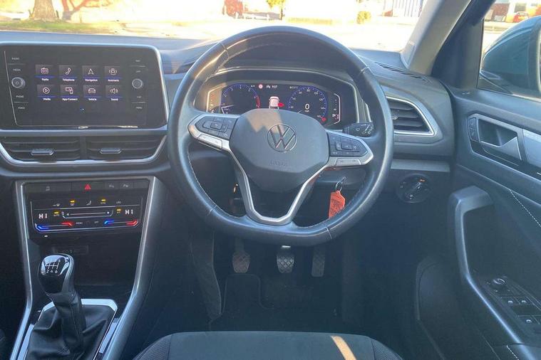 10.25" Digital cockpit pro, Bluetooth mobile phone interface, Driver alert system with fatigue detection, Driver tips and journey analysis, Emergency call service, Lane keeping system Lane Assist, Modified key software - reduce switch off time for key status change to Long no motion, Online services, Park assist including front and rear parking sensors, Service interval indicator, Tailgate/trunk lid release from outside, Think blue trainer driver tips and journey analysis, Warning sound and light for front seatbelts unfastened, Wireless app connect, Battery regeneration during braking, Start/stop function with battery regeneration, Diversity antenna for FM reception, Front and rear 6 speakers, Music playback - MP3, WMA and AAC files, Premium USB cable in choice of either Apple or Android smartphone compatibility, SD card slot, Simultaneous pairing of 2 compatible mobile devices, Title and cover art display, We Connect and We Connect Plus functionality, 3rd brake light, Auto dimming interior rear view mirror, Automatic hazard lights activation under emergency braking, Automatic headlight control with LED separate daytime running lights with coming/leaving home function, Body colour sports bumpers with silver metallic underbody fascia, Dynamic headlight range control with self adjusting whilst driving, Extended roof spoiler, Exterior mirrors aspherical on driver side, convex on front passenger side, External USB type C socket and charging sockets, Front windscreen wiper with intermittent wipe and 4 position delay, Heated rear window, LED Plus headlamps, LED rear combination lamps, LED rear number plate lights, LED tail lamp rear comination lamps, Light mode for poor weather, rain, fog or snow, Power windows with comfort operation and circuit breaker, Rain sensor, Rear exhaust tailpipe, Rear fog light on one side and reversing lights on both sides, Rear side wing doors, Rear wash/wipe with intermittent wipe setting, Remote electrically foldable door mirrors, puddle lights and reverse activated passenger's door mirror, 12V power socket in centre console, 3 rear head restraints, 3 seat bench in 2nd row, 4 load lashing points in luggage compartment, Air care climatronic air conditoning system with active combination filter and 2-zone temperature control, Chrome plated radiator grille inserts, air vent surrounds and light switch surrounds, Door and side trim panel with leatherette insert, Drawer under drivers seat, Front + rear carpet mats, Front centre armrest, Front comfort sports seats, Front cupholders x 2, Front footwell illumination, Instrument lighting, white adjustable panel illumination, Interior ambient lighting and surround lighting, Interior light delay, Isofix child seat preparation, Leather gearshift handle, LED interior light with switch off delay/dimmer and 2 front/rear LED reading lights, Load-through provision with cup holder when folded down ('Unsplit rear seat bench, split folding backrest, with centre armrest), Luggage compartment lighting, Non-folding front passenger seat backrest, Single front passenger seat, Storage compartment in left and right luggage area, Storage compartment in rear doors, Storage compartments in driver and front passenger doors, Sunvisors with illuminated vanity mirrors, Variable boot floor, height adjustable and removable, Driver assistance pack - T-Roc, 3 point height adj front seatbelts + pretensioners, 3 point seatbelts in outer rear with ECE label, ABS, Child locks on rear doors, Driver and front passenger airbag with front passenger airbag deactivation, Driver and front passenger safety-optimised head restraints, Drivers seatbelt reminder, Electronic parking brake, Electronic Stability Control (ESC) inc EDL (Electronic Differential Lock) and ASR (Traction Control), Front and rear passengers curtain airbag system including front side airbags, Front assist with city emergency braking and pedestrian monitoring, Front seat side impact airbags, Predictive pedestrian protection, Rear disc brakes, Single tone horn, Tyre pressure loss indicator, Volkswagen roadside assistance, Alarm with interior protection, Anti-theft alarm system with interior monitoring, backup horn, and towing protection, Remote central locking with SAFELOCK, radio remote control with 2 remote control folding keys, Trims for alloy wheels,