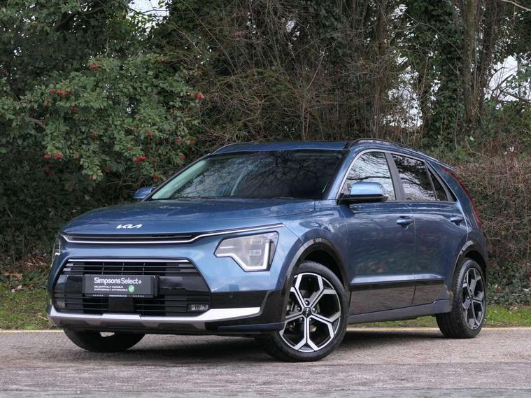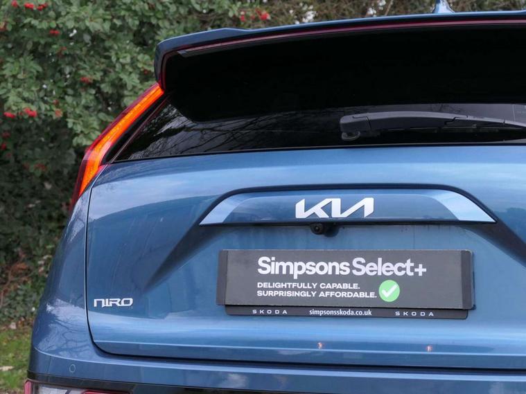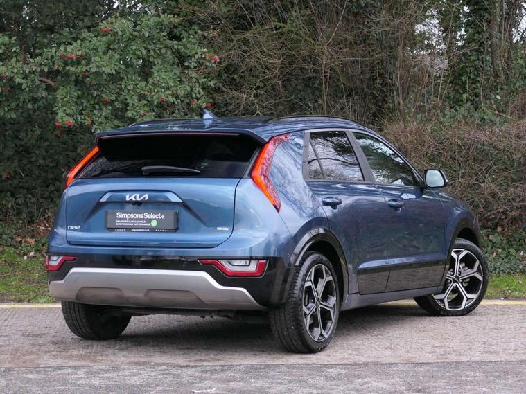 10.25" Supervision colour cluster display, 10.25" touchscreen satellite navigation, Adaptive smart cruise control function (SCC) with stop and go, Apple car play/Android Auto with voice control, Blind spot collision avoidance assist, Drive mode select (Eco, sport), E-call, Emergency stop signalling system, Forward Collision-Avoidance Assist (FCA) 1.5 - City/Pedestrian/Cyclist/Junction turning, Front parking sensors, Head up Display, Highway Driving Assist (HDA), Kia Connect (UVO), Lane Following Assist (LFA), Lane keep assist, Motor driven power steering, Parking collision avoidance assist (PCA), Power opening/closing tailgate, Rear cross traffic alert, Rear parking sensors, Remote smart parking assist, Reversing camera with dynamic guide lines, Safe exit warning (SEW), Speed limit assist, Trip computer with distance/fuel consumption/average speed, Wireless Smartphone charger, 220v AC Inverter, 'Shark fin' mobile antenna, 2 type C USB ports on front seats, 2 USB ports in centre console including 1 type C, 6 speakers, Bluetooth with music streaming, DAB Digital radio, Steering wheel mounted controls, Acoustic windshield, All round electric windows with drivers and front passenger auto up/down and safety function, Auto dimming rear view mirror, Automatic defog system, Automatic headlight control system, Black grille with chrome surround, Body colour bumpers, Body colour exterior door handles, Deluxe door scuff plates, Dual LED headlights (low and high projection), Electric heated door mirrors, Electrically folding door mirrors, Front and rear chrome skid plates, Front fog lights, Heated rear window with timer, High gloss black cladding, High gloss black door mirrors, LED daytime running lights, LED rear combination lights, LED third brake light, One touch single tilting/sliding power sunroof, Privacy glass - Rear windows and tailgate, Rain sensing front wipers, Rear fog lights, Rear side wing doors, Rear spoiler, Rear wiper, Roof rails, Solar glass windscreen, Welcome and follow-me home light functionality, Windscreen Washer Level Warning, 12V socket in front, 12V socket in luggage compartment, 3 seat bench in 2nd row, 60:40 split remote folding rear seats, All-round height adjustable headrests, Aluminium pedals, Artificial leather centre console storage box, Artificial leather steering wheel, Centre console cupholder, Chrome coating interior door handles, Driver and front passenger power adjusted seat, Driver power adjusted memory seat, Driver/passenger sunvisors with illuminated vanity mirrors, Drivers seat power lumbar support, Dual zone automatic air conditioning, Front and rear door storage, Heated front seats, Heated outer rear seats, Heated steering wheel, Illuminated glovebox, Interior door lock/unlock function, ISOFIX Child seat top tethers and anchor fixings, LED overhead console, 2nd row and luggage lamp, Luggage area load cover, Luggage board, Paddle shifts, Passenger premium relaxation seat, Power adjustable lumbar support on front passenger seat, Rear armrest, Seatback pocket - driver, Seatback pocket - front passenger, Shift by wire SBW, Single front passenger seat, Tilt/telescopic adjustable steering wheel, Vegan leather upholstery, Ventilated front seats, Ventiliation ducts to rear compartment, Towing pack - Niro, 3 point seatbelts on all seats, ABS, Automatic unlocking of doors in case of impact, Centre side front airbags, Curtain and side airbags, Drivers knee airbag, Dual shell horn, Electric parking brake with auto hold function, Electronic stability control, Front passenger airbag deactivation, Height adjustable front seatbelts, Hill start assist control (HAC), Manual rear child locks, Rear seat alert system, Traction control, Tyre pressure monitoring system, Alarm system and engine immobiliser, Deadlocks, Engine Start/Stop Button with Smart Entry System, Locking wheel nuts, Visible vehicle identification number, Warranty - 7 Years/ 100, 000 miles, Centre fascia chopped carbon, 18" Alloy wheels, Tyre mobility kit,