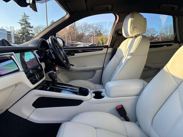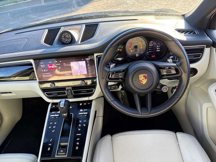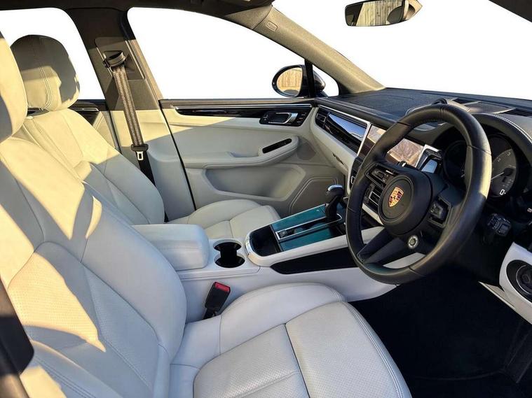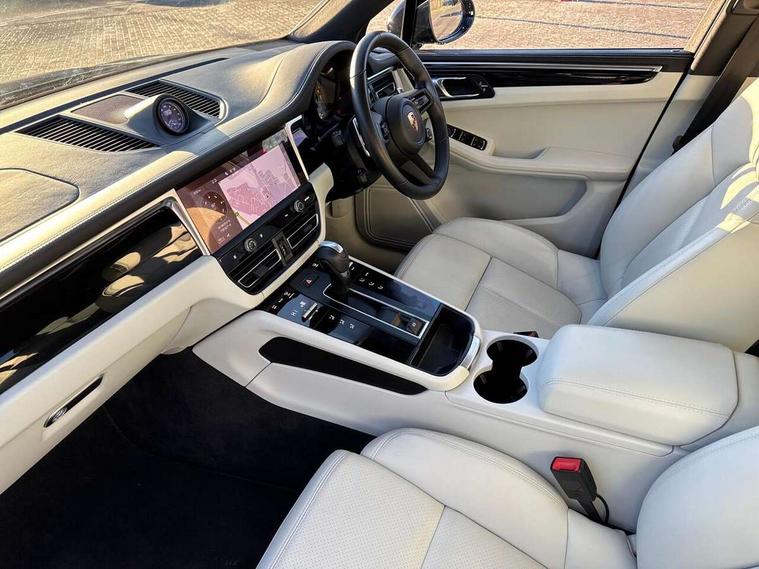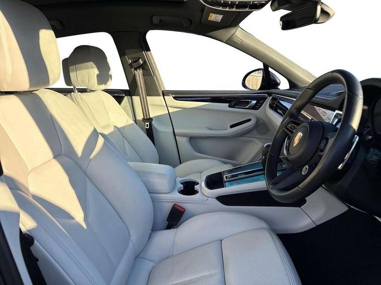 Analogue clock on dashboard, Automatic start/stop system, Automatic tailgate, Digital boost pressure gauge on colour display of instrument cluster, eCall emergency call system, Instrument cluster with high resolution 4.8-inch TFT display, gear indicator for PDK, service interval display, external temperature indicator, fuel gauge, Off-road button, On board computer, Porsche Communication Management (PCM) including online navigation module, mobile phone preparation, audio interfaces and voice control system, Sports button in centre console, 7-Speed Porsche Doppelkupplung (PDK) with automatic mode and manual controls (gearshift paddles) on steering wheel, Direct fuel injection (DFI), Gasoline particulate filter, Steel spring suspension, VarioCam Plus variable valve timing and switchable valve lift, 2 USB sockets in rear centre console, Apple CarPlay with Siri voice recognition, Connect Plus including online navigation, LTE communication module with SIM card reader, wireless internet access, Porsche Car Connect services, DAB Digital radio, Porsche Vehicle Traking System Plus (PVTS Plus), Smartphone compartment with wireless charging, Two USB C charging and connectivity ports in the front centre console storage compartment, Active radiator grille shutters, Automatic headlight activation including welcome home lighting, Bumper system with high strength cross members and two deformation elements + One threaded fixture point for towing eye contained in onboard tool kit, Dynamic cornering lights, speed-sensitive headlight and dynamic range control, adverse weather function, four-point LED daytime running lights, Electric front and rear windows with remote closing function + anti trap + one touch, Electrically folding and heated exterior mirrors, Front light modules with LED position lights and direction indicators, Front windscreen wipers with two speeds, intermittent wipe and rain sensor, Front with integrated cooling air intakes, Fully galvanised body, Heated rear window with automatic switch off, High level 3rd LED brake light integrated into roof spoiler, Loading edge protection in aluminium, Rear side wing doors, Rear window wiper with intermittent function and washer jet, Roof spoiler in high gloss black, Towbar preparation, 3 adjustable rear headrests, 3 rear seats, 4 way adjustable front head restraints, 40:20:40 split folding rear bench seat, Cloth hook b-pillar, Fold up centre console armrest with fore/aft adjustment, Front and rear bottle holders in door panels, Front passenger seat, Glove compartment, Isofix fastening system for child seats on outer rear seats, Luggage compartment cover, Particle/pollen filter with active carbon filter, Rear armrest with 2 cupholders, Storage bin in centre console, Storage compartment in side of luggage compartment and storage compartment in spare wheel recess, Storage pocket in front and rear doors, Two integrated cup holders in front with variable diameter, Two socket 12V power outlets in front console and luggage compartment, Uncovered storage compartment in centre console, Ambient comfort lighting pack - Macan, Lower exterior trim package in black - Macan, 3-point automatic seatbelts with front and outer rear seats pretensioners and force limiter + manually height adjustable seatbelt + reminder warning, 6-piston aluminium monobloc fixed caliper brakes at front, internally vented brake discs, Auto hold function, Brake discs with 360 mm diameter at front and 330 mm at rear, Child locks on rear doors, Curtain airbags along entire roof frame and side windows from A pillar to the C pillar, Electronic parking brake, Front passenger airbag deactivation facility for installation of child seats indicator in overhead console, Front side airbags integrated into seat, Full size driver and passenger airbags, Multi-Collision braking, Porsche hill control (PHC), PTM(Porsche Traction Management) and All-wheel drive with map-controlled multi-plate clutch, Roll over sensor for curtain airbag and seatbelt pretensioners, Side impact protection in doors, Tyre pressure monitoring system, Vehicle stability system, Porsche stability management (PSM) including ABS, ASR, ABD, MSR and trailer stability management, Vented discs brake with combination floating calipers at rear, Alarm system with ultrasonic interior surveillance, Dashcam prep, Engine immobiliser with key transponder, Remote control central locking, Accent trims with silver coloured finish, Tyre repair kit,