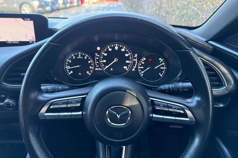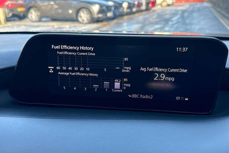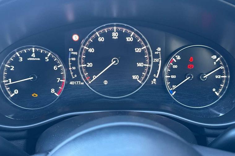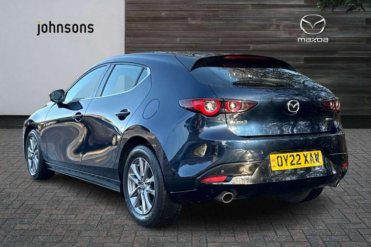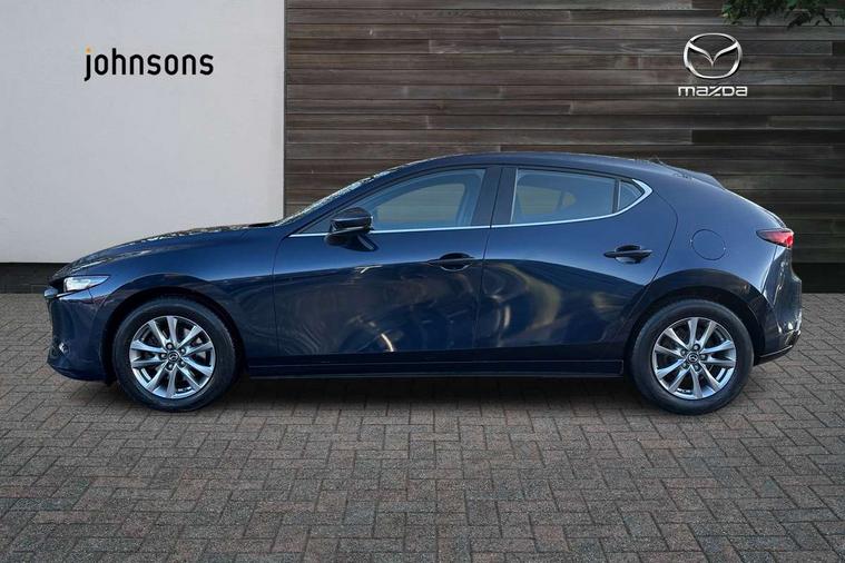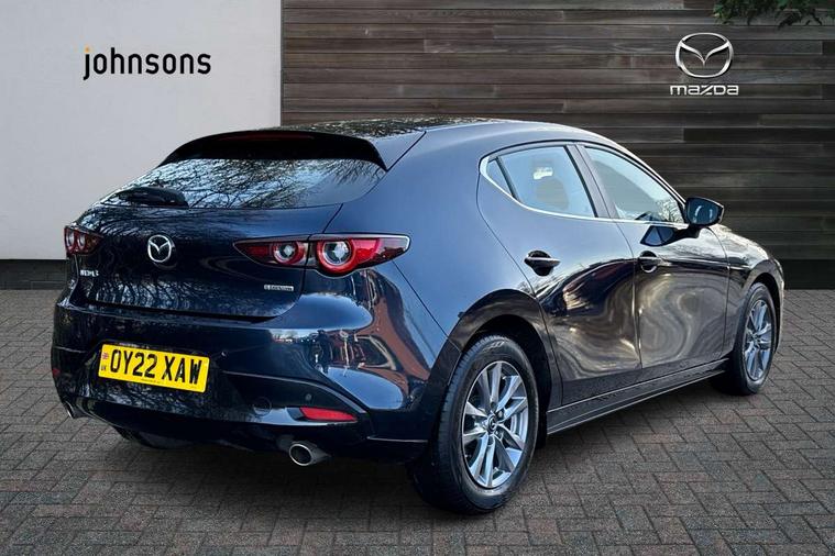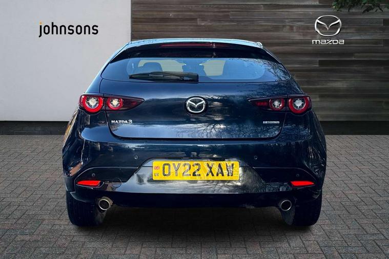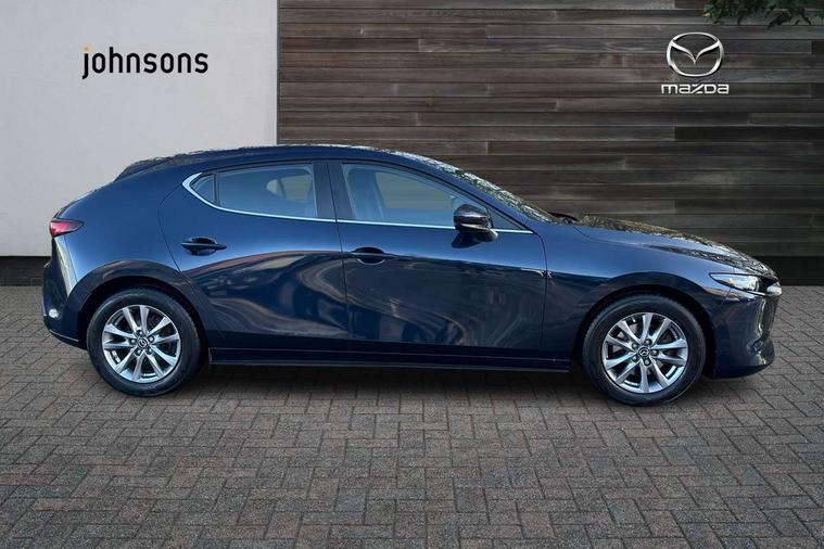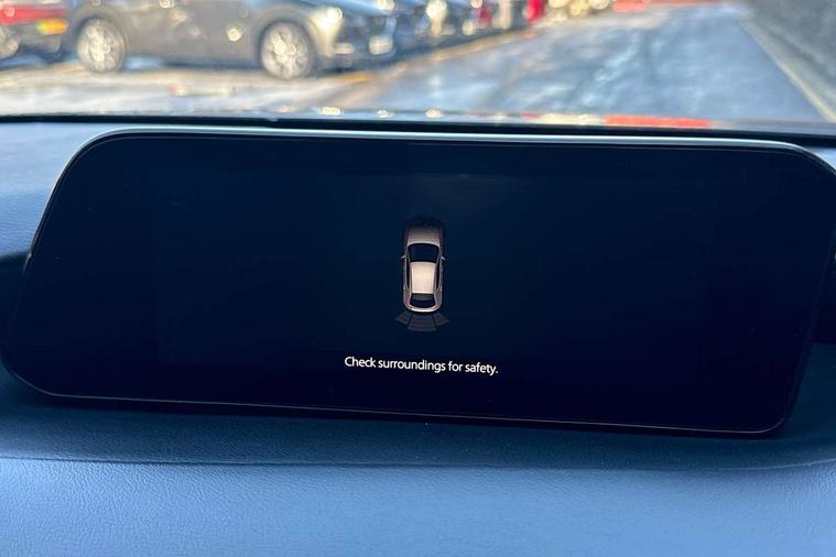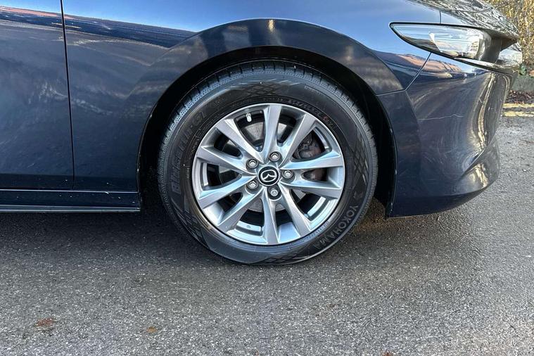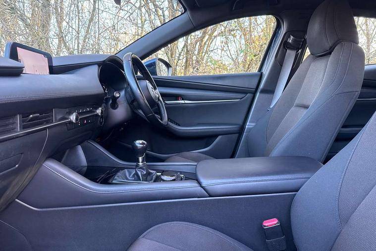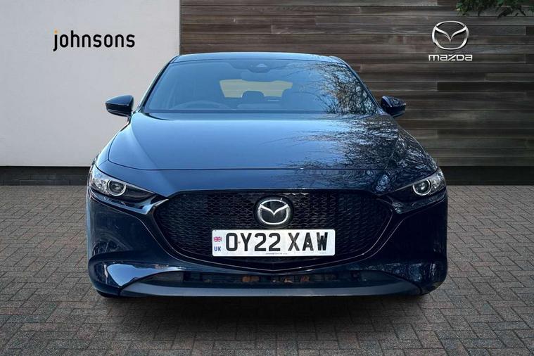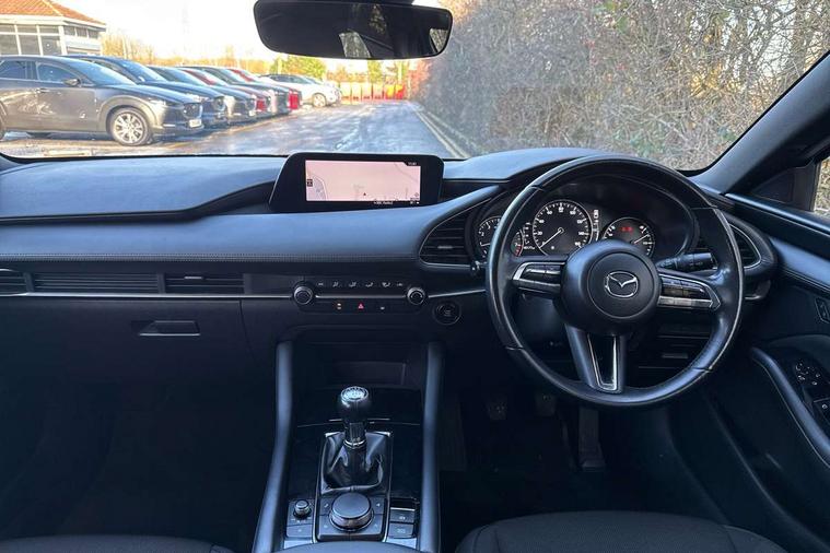 7" colour TFT display, 8.8" Colour centre touch screen display with Mazda Connect infotainment, Apple car play/Android Auto, Audio transfer from bluetooth devices, Blind spot monitoring with rear cross traffic alert, Colour active driving display inc Windscreen projected, Traffic Sign Recognition, turn-by- turn navigation and Mazda Radar Cruise Control information, Digital instrument cluster, Driver attention alert system, E-call with GPS, Emergency stop signalling system, Engine start/stop button, Head up Display, Integrated bluetooth with steering wheel mounted controls, Intelligent speed assist, Lane keep assist system (LAS) with Lane departure warning system (LDWS), Mazda connected services, Mazda Navigation System with european mapping, Mazda Radar Cruise Control, Mobile App interface, Multimedia Commander, PAS, Rear parking sensor with audible and visual warning, Service indicator, Traffic sign recognition (TSR), Trip computer, Cylinder Deactivation, i-stop, Mazda Multimedia System with AM / FM / DAB radio with 8 speakers, B-pillar garnish in satin black, Body coloured, electrically adjustable, heated auto power folding door mirrors with integrated indicators, Coming/leaving home lighting function, Dark metallic finish signature wing, Daytime running lights, Dual chrome tailpipes tip, Dusk sensing headlights, Electric front/rear windows with one touch/auto up/down, Front body coloured bumper with black lower bezel, Front kodo turn signal, Gloss black finish front grille, Gloss black rear roof spoiler, High beam control, LED front fog lights, LED headlamps with auto levelling, LED indicator lights, LED rear combination lights, LED third brake light, Rain sensing front wipers with adjustable sensitivity and speed, Rear colour coded bumper with gloss black lower moulding, Rear fog lights, Rear side wing doors, Speed adjustable rear wash wiper with intermittent wipe, 12v electrical power outlet, 3 seat bench in 2nd row, 60/40 split fold down rear seats, Black cloth door panel inserts, Cloth upholstery, Dark roof headlining, ceiling and pillars, Driver, front passenger and two rear door pockets, Driver, Front passenger and two rear grab handles with coathooks, Driver/passenger sunvisors + vanity mirrors (drivers side with ticket holder), Drivers seat manual slide recline and height adjustment, Folding rear centre armrest with two cup holders, Front and rear courtesy lamps, Front armrest, Front centre storage with two cupholders, Front head restraints, Front passenger seatback pocket, Front passengers seat manual slide, recline and height adjustment, Gear shift indicator, Illuminated glovebox, Interior colouration dashboard and doorcards in black with dark stitching, ISOFIX child seat anchorage points attached on outer rear seats, Leather wrapped gear shift knob, Leather wrapped steering wheel, LED interior light, Luggage compartment light, Manual air conditioning, Power outlet in luggage compartment, Roof mounted sunglasses holder, Single front passenger seat, Three height adjustable rear head restraints, Tilt/height adjustable steering wheel, USB input, 3 point ELR front seatbelts with pretensioners, 3 rear 3 point seatbelts with ELR, Anti-lock braking system (ABS), Drivers knee airbag, DSC - Dynamic Stability Control, Dual stage driver and single stage passenger airbags, EBD - Electronic brakeforce distribution, Electronic parking brake with auto disengage function and auto hold function, Front and rear curtain airbags, Front passenger airbag cut-off switch, Front side airbags, Front smart city brake support, G-Vectoring control plus, Hill launch assist, Intelligent Traction Control system, Manual child lock in rear doors, Mild Hybrid system with regenerative braking, Seatbelt reminder for driver/front passenger and rear seats, Tyre pressure monitoring system (TPMS), Auto door lock when driving, Remote central locking + deadlocks, Thatcham accredited alarm and immobiliser, 16" Silver alloy wheels, Emergency tyre repair kit,