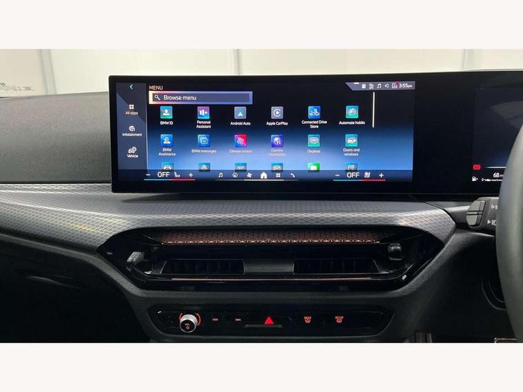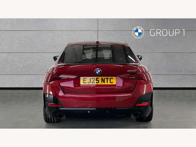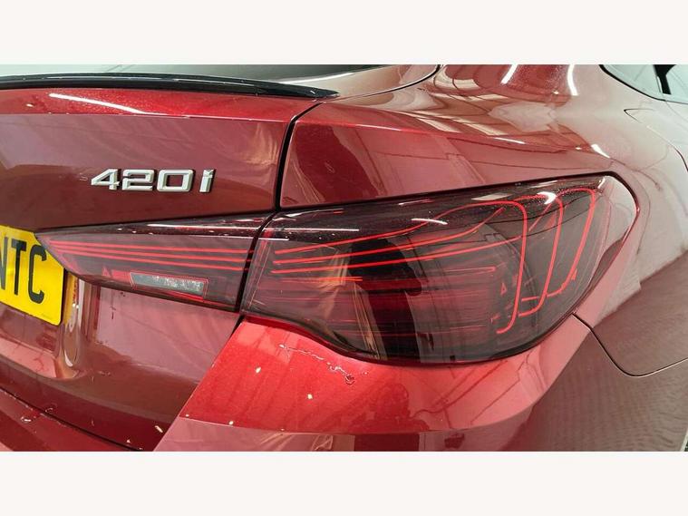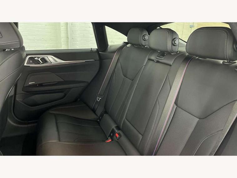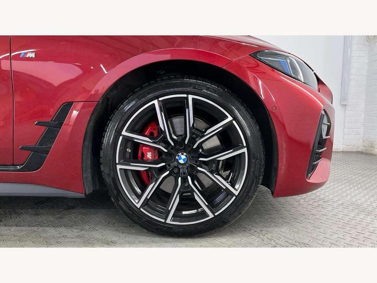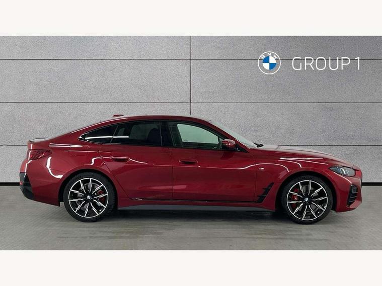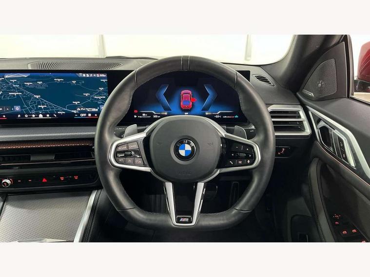Active guard plus, Attentiveness assist, Auto start-stop, Bluetooth hands free facility with USB audio interface with audio streaming, BMW ConnectedDrive online services, BMW iDrive controller on centre console, BMW Live Cockpit Plus Nav-12.3" instrument&14.9" control Widescreen curved display/Intelligent Voice Assist/iDrive touch/Access 3rd party app/4G LTE, BMW service history, BMW Teleservices, Brake pad wear indicator in front and rear, Check Control warning system for monitoring of lights and door/luggage compartment open warning, Condition based service, Electric bootlid, Electric power steering with Servotronic steering optimised at all speed ranges, Gearshift time display in manual mode, Instrument cluster with speedometer with mph readout, tachometer, fuel gauge and oil temperature gauge, Integrated owners handbook, Language version English, Oil sensor for level and grade, warning by check control system, On board computer - average speed, fuel consumption, outside temp display with acoustic warning, clock/date, service interval, odometer/trip meter, Optimum shift indicator, Run flat indicator, Shifting point display, Variable sport steering, 8 speed automatic steptronic transmission with gearshift paddles, Balanced 50/50 weight distribution, Double joint spring strut front axle, Double VANOS, Drive performance control - ECO PRO, comfort and sport modes, High precision injection, Low centre of gravity, Petrol Particulate Filter, Stroke dependent dampers, VALVETRONIC engine management, 1x USB type A with data transfer and 1.5 Amp charging function in the centre console, 1x USB type C with 3 Amp charging function in the front centre armrest, DAB tuner, Electronic service booklet, Personal eSim, Acoustic glazing, Automatic headlight beam throw control with load dependent regulating reaction, dynamic compensation of braking dive and acceleration squat, Automatic windscreen wipers and automatic headlight, Automatically dimming electrochromatic rear view mirror, BMW emblem on engine compartment lid and tailgate, BMW radiator grille with mesh grille, end face of the nuggets in aluminium matt and frame in chrome matt, Body colour fuel filler flap, Body colour roof fin, Bonnet and tailgate badge, Brushed aluminium inserts in the front door sill finishers with BMW designation, Door sill strips, Dynamic brake lights, Electric windows - front and rear, with open/close fingertip control, anti trap facility and comfort closing function all round, Exterior mirrors - electrically folding with anti-dazzle, Fading support, Follow me home headlights, Front and rear bumper system, Front apron plastic in body colour, Green tinted heat protection glazing, High gloss shadow line exterior trim, Illuminated bow type door handles in body colour drivers side with door lock, Interior rear view electrochromatic mirror with automatic anti dazzle function, LED 3rd brake light, LED daytime running lights, LED front fog lights, LED front indicators, Licence plate panel integrated into front bumper and tailgate, Lightweight engineering, Low and high beam headlights in Bi-LED, M designation on front side panels, left and right, M rear boot spoiler, One piece front bumper cover including towing eye cover in body colour, Preparation for high beam assistant, Rear side wing doors, Rear wiper, Reversing light, Side frame trim strip black matt, Two part LED tailights in L-shape with components in smoked glass, brake light, LED turn indicator and rear fog light, Visible exhaust tailpipe finisher, Visible VIN plate, Welcome lights in interior and door handle area, Widened track and increased camber values for max transverse dynamics, agility and steering precision, Window recess finisher strip in matt black, Windscreen wipers with integrated heated washing jets, 12V power socket in front centre console, 2 front cupholder in centre console with clamping elements and matt black inlay, 3 rear headrests, 3 seat bench in 2nd row, 3 spoke flat bottom M sport leather multifunction steering wheel, 3 zone automatic air conditioning, 4 pieces lashing eyelets in luggage compartment, 40:20:40 split folding rear seat and rear centre armrest with two cupholders, Anthracite headlining, Armrest integrated in front and rear door trim + front centre console armrest, Battery in luggage compartment, BMW ID, Four grab handles integrated in roof lining, Front and rear door pockets, Front and rear reading lights, Front footwell lights, Heated driver and front passenger seats, Height adjustable front headrests, Height adjustable mechanically and infinitely variable steering column, Illuminated armrest storage compartment, Illuminated glove compartment with separate small compartment, Luggage compartment light, Luggage compartment seprating net on side trim left/right, Bag hook, 12V socket, TTH button, USB C charging in rear, Folding compartment on driver side, Make-up mirror lights, Single front passenger seat, Storage compartment in rear centre console, Sunvisors with illuminated vanity mirrors and ticket pocket, Through load system, Toolkit located in luggage compartment, Velour front floor mats, Ambient lighting pack - 4 Series, Connected professional package - 4 Series, M sport exterior styling pack - 4 Series, Park assist pack - 4 Series, 3 point seatbelts on all seats, Battery safety cut-off, BMW emergency call, Brake energy regeneration, Braking pre-tensioning, Child locks, Child seat ISOFIX attachment for the two outer rear seats, Coasting in idle in ECO PRO mode, Cornering brake control (CBC), Crash sensor activating of airbags, Unlocking doors, hazard warning lights, fuel cut off, interior lighting+activation of safety battery terminal clamp, Driver and front passenger side airbags, integrated in the door side seat backrest bolsters for all seat variants, Driver/Front Passenger airbags, Dry braking, Dynamic brake control, Dynamic stability control + (DSC+) - Anti-lock Braking System (ABS) with brake assist and cornering brake control 