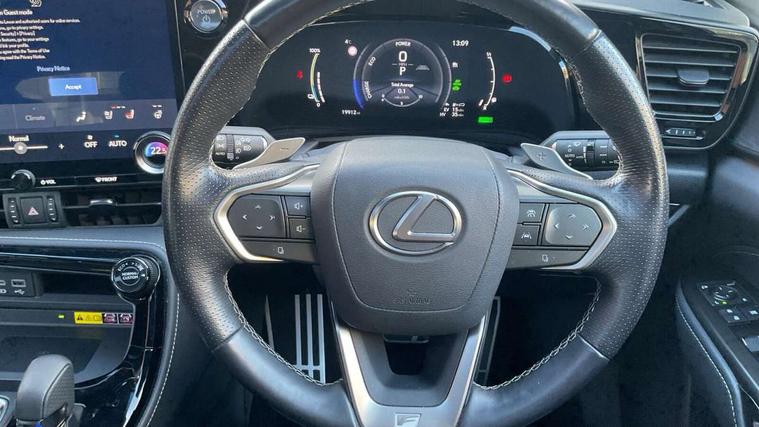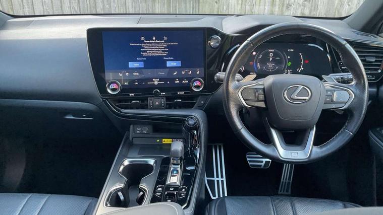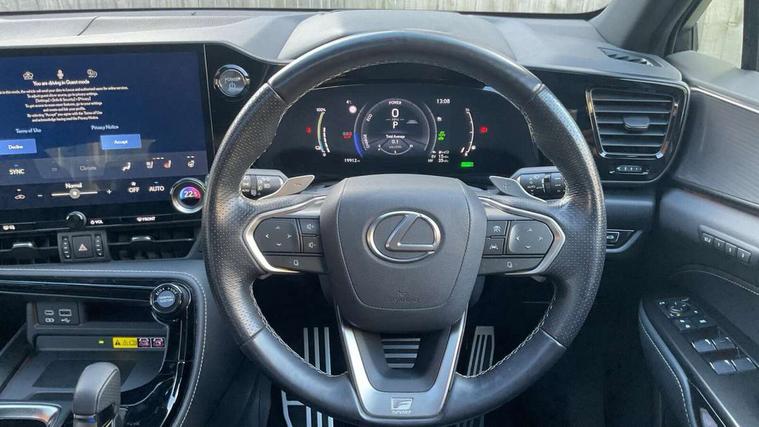 360 degree panoramic view monitor, 5 Driving modes EV/Normal/Eco/Sport/Sport S+, 7" display in instrument binnacle, Blind spot monitoring with rear cross traffic alert, Bluetooth telephone connectivity, eCall emergency system, Electric speed sensitive power steering, Head up Display, Intelligent parking sensors - 4 front and 4 rear, Lane change flasher function, Lexus link connect - Cloud based navigation, cloud based voice assistant, always online, 14" HD touchscreen, embedded nav and faster CPU, Push button starter, Reversing camera with back guidelines, Service interval indicator, Tazuna cockpit with 7" improved meters display, 10" HUD and capacitive touch steering wheel switches, Wireless Apple CarPlay and wired Android Auto, Wireless Smartphone charger, 6.6 kW onboard charger, All Wheel Drive (AWD), AVS - Adaptive variable suspension, Hybrid automatic transmission, Sports suspension with lateral performance dampers, Vehicle Dynamics Integrated Management (VDIM), Vehicle Stability Control (VSC), 10 speakers, 4 USB ports - 2 front, one USB C, 2 rear USB C, DAB Digital radio, 4 eye LED headlight with adaptive high beam, Auto dimming interior rear view mirror, Automatic headlights, Black roof rails, Double hidden exhaust pipes, F SPORT exterior styling - Black mesh front grille, enhanced side rockers, metallic front bumper, badging, black outside mirror covers, Front and rear one touch power windows, with anti-jam protection, Headlight cleaners, Heated, auto-folding, auto-dimming outside mirrors with reverse tilt function and turn indicators, Illuminated door handles with puddle light, LED brake lights and rear lights with emergency brake signal, LED cornering lights, LED daytime running lights, LED front fog lights, LED Indicators, Power back door with kick sensor, Privacy glass, rear doors and tailgate, Rain sensor windscreen wipers, Rear side wing doors, Rear wiper, 12V accessory port centre console and luggage compartment, 2 cupholders in front centre console, 2 way electrical lumbar adjustment for driver, 2 x fixed shopping bag hooks in boot, 2 x sun visors with vanity mirror and lamp, 3 seat bench in 2nd row, 4 x tie down hooks in the boot, 60/40 split folding rear seat, 8 way driver/passenger electrically adjustable front seats, Adjustable rear seat backrest, Card holder installed in driver and passengers sun visors, Centre armrest with storage box, Driver seat memory function, Dual zone climate control air conditioning system with humidity sensor, F Sport aluminium sports pedals, F SPORT leather gearlever, F SPORT seats - Leather upholstery, Front and rear head restraints, Front and rear textile carpet mats, Front passenger seat, Heated and ventilated front seats, Heated rear seats, Heated steering wheel, LED ambient lighting, LED interior illumination, Power adjustable F SPORT leather steering wheel with paddle shifts, Rear centre armrest with 2 cupholders, Whiplash Injury Lessening (WIL) feature (active headrest) for seats, 2 x Isofix child rear seat restraints, 3 point ELR front seatbelts with pretensioners, 3x3 point rear seat belts, ABS, Adjustable seat belt anchor points, Driver and front passenger 2 stage airbag, Driver/front passenger side airbags, Drivers knee airbag, E-Latch with safe exit assist, EBD + Brake Assist, ECB (Electronically Controlled Brake System), Electronic parking brake, Front and rear curtain shield airbags, Front center airbag, Front passenger seat cushion airbag, Hill assist control, Lexus safety system - dynamic radar cruise control, pre collision system day and night, lane tracing assist, road sign, OTA, Manual rear child locks, Passenger airbag cut-off device, Traction control, Tyre pressure warning, 2 x remote key fobs, Anti-theft system with alarm, intrusion sensor, glass breakage sensor, tilt sensor and engine immobiliser, Locking wheel nuts, Smart keyless entry, Speed sensitive auto door locking, Two motion door lock with double lock, VIN Window etching, Aluminium inlays,