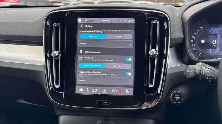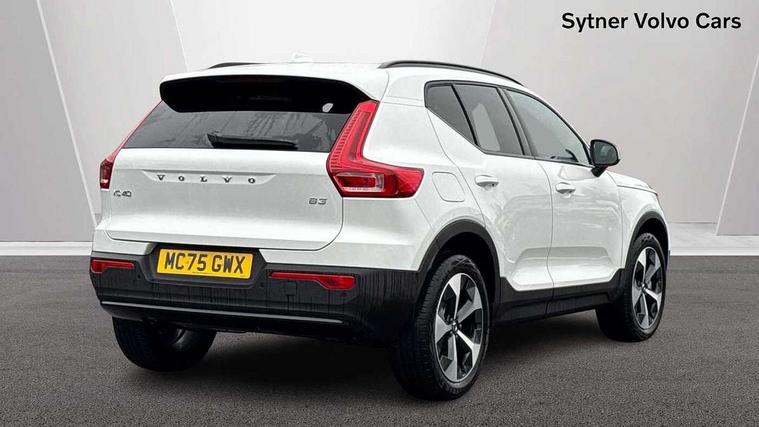 12.3" Progressive Driver Display, 9" centre console portrait touch screen, Adjustable steering wheel force, Android auto (Wired), Apple carplay (wired), Bluetooth handsfree system, Driver alert control, Driver assistance (pilot assist and adaptive cruise control), Driver awareness - Blind spot information system with steer assist, cross traffic alert with autobrake and rear collision warning and mitigation, E-call, Front and rear parking sensors, Front park assist, Google automotive services - Enabled entertainment apps, navigation with google maps, voice recognition with google assistant, Hands free power tailgate, Intelligent speed assistance, Lane keeping aid, Oncoming Lane Mitigation, Speed sensitive steering, Volvo cars services with app - Driving journal, emergency and breakdown call, engine remote start, remote door locking/unlocking and vehicle dashboard, Wireless/Inductive Mobile Phone Charging, Automatic transmission with start/stop and manual change functions, Dynamic chassis, DAB Digital radio, Steering wheel mounted remote controls, Adaptive brake lights with high level LED brake lights, Auto dimming feature for exterior door mirrors, Auto dimming interior mirror, Auto folding and heated power door mirrors, Automatic headlamp levelling, Automatic LED Headlights + Active high beam incorporating daytime running lights, Front aluminium tread plates, Front and rear electric windows, High gloss black front and rear skid plate, High gloss black front bumper deco, High gloss black mesh front grille with high gloss black surround, High gloss black window trim, Home safe and approach lighting, Integrated roof rails in high gloss black, LED front fog lights, Puddle lights, Rain sensor with automatic windscreen wiper activation, Rear side wing doors, Rear wiper, Roof antenna, Roof spoiler, Visible VIN plate, 12V socket in front tunnel console and luggage compartment, 2-Zone electronic climate control with CleanZone air quality system and pollen filter, 3 seat bench in 2nd row, 3 Spoke tailored steering wheel with chrome trim, 60/40 versatile split folding rear seat, Centre console cupholders and storage, Charcoal carpet and floor mats, Charcoal headlining, Connect suede textile/microtech upholstery, Flexible load floor and grocery bag holder, Front headrests, Front seat cushion extensions, Glovebox bag hook, Heated front seats, Height adjustable passenger seat, Height/reach adjustable steering column, High gloss centre tunnel deco, High level illumination - Front door pocket, front side step (under door), tailgate, instrument panel, front door inlay, rear courtesy&reading lights, Integrated waste bin, Isofix attachments on outer rear seats, Load cover, Load protection net, Mid level illumination - Front footwell, luggage & glovebox compartment, front cabin courtesy & reading lights, illuminated vanity mirrors+ticket holder, Multi directional lumbar support for driver and passenger seat, Power driver seat with memory + exterior mirrors memory, Rear armrest with cupholders, Rear headrests, Single front passenger seat, Underfloor luggage compartment storage, Climate pack without heated front seats - XC40, 3x3 point rear seatbelts, City safety with steering support with Pedestrian + cyclist + front collision warning with full auto brake and rear auto brake, Driver and passenger airbags, Drivers knee airbag, Electronic parking brake with auto hold, First aid kit, Front and outer rear seatbelt reminder and pretensioners, Front seats SIPS airbags, Hill descent control - Off-road drive mode, Hill start assist, IC (Inflatable Curtains) - Full Length, Passenger airbag cut-off device, Power child locks on rear doors, Road sign information display, Run off Road Protection, SIPS (Side Impact Protection System), Slippery road and hazard light alert, Stability and Traction Control with Spin control, Engine Drag Control and Corner Traction Control, Tyre pressure monitoring system, Vehicle deceleration control with Anti-lock Brake System, Electronic Brake Distribution and Emergency Brake Assist, Warning triangle, WHIPS whiplash protection system - front, 2 x Key integrated remote control central locking including with deadlocking system and auto open/close windows, Anti-theft alarm including immobiliser/volume sensor + level sensor, Keyless drive includes keyless entry and keyless start, Locking wheel nuts,