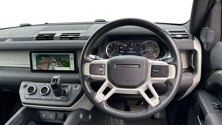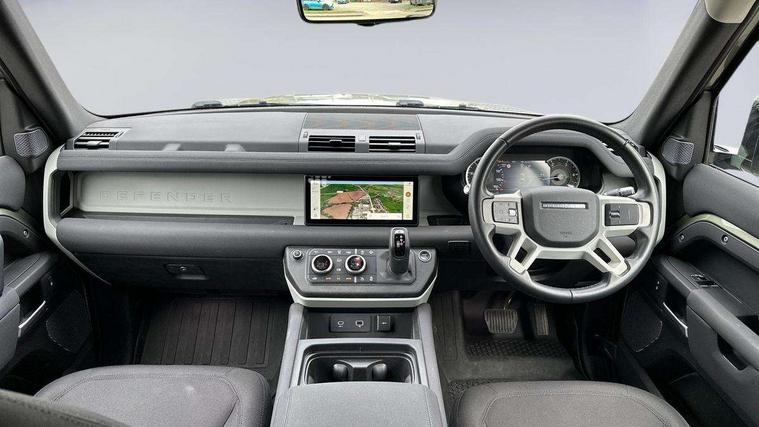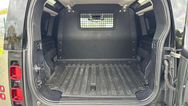 Customer Configurable Autolock, 11.4" touchscreen, 360 parking aid, 3D Surround Camera with 360 View, 180 Rear View, Front Traffic Detection, Forward Vehicle Guidance, Tow Hitch Assist and clear sight Ground View, Brake Hold, Driver condition monitor, Electric power assisted steering (EPAS), Lane keep assist, Less wireless charger, Low traction launch, Pivi pro connected, Traffic sign recognition adaptive speed limiter, Trip computer, Tyre pressure monitor, Wade Sensing, Android Auto, Apple CarPlay, DAB Radio (Digital Audio Broadcasting), Sound system with 140W and 4 speakers, Alpine lights, Assisted tailgate, Automatic headlights and rain sensitive front wipers, Centre high mounted stop light, Electric heated/power fold door mirrors with approach lights and auto dimming driver side, Electric windows with one touch open/close and anti-trap, Exterior signage panel, Follow me home lighting, Heated rear window with timer, Heated windscreen, LED tail light, Privacy glass, Puddle lights, Rear fog lights, Rear wash wiper, Side-hinged tailgate, Standard roof, Standard tread plates, 40:20:40 fixed rear seats, 8 way heated semi powered front seats with manual headrest, Additional lashing points, Cabin lighting, Carpet mats, Dual zone climate control, Durable rubber cabin flooring, Fabric upholstery, Footwell lights, Full height bulkhead behind row 1 seats, Glovebox storage, High sided rubber mats, Loadspace cover, Loadspace hooks, Loadspace rubber mat, Lockable and illuminated underfloor storage compartment (x1 under boot floor), Manual adjustable steering column, Overhead stowage for sunglasses, Rear centre headrest, Rear reading light, Sunvisors with illuminated vanity mirrors, Twin front cupholders, Upgraded loadspace LED lighting, Online pack - Defender with data plan, Brake pad wear indicator, Electronic traction control, Emergency braking, Front airbags, with passenger seat occupant detector, Power operated child locks, Remote for (e-Call, Optimised assistance call, InControl app, Climate, beep and flash and door), Seat belt reminder, Intrusion sensor, Locking wheel nuts, 8 speed automatic transmission, ABS and EBA, All wheel drive, CBC - (Cornering brake control), Coil suspension system, Dynamic stability control, Electronic brake force distribution, Electronic park brake, Gradient acceleration control, Hill Descent Control, Hill start assist, Particulate filter (DPF), Push button start, Roll stability control, Trailer stability assist, Twin speed transfer box (high/low range),