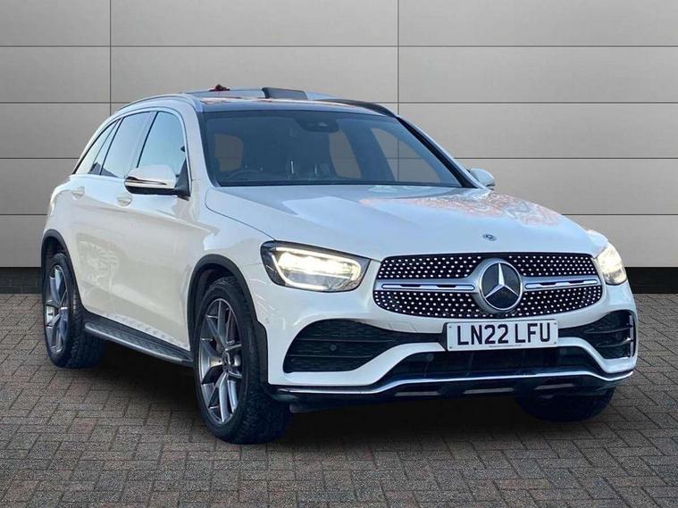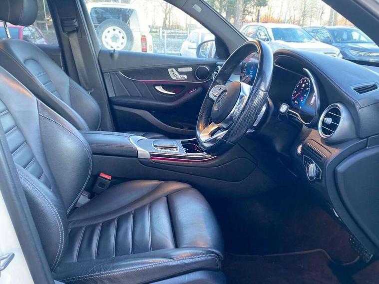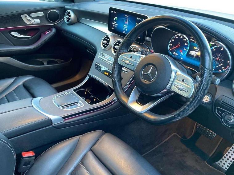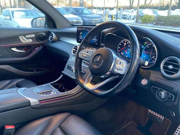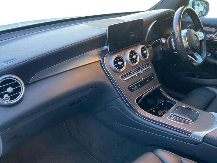 360 degree camera, Active parking assist with parktronic system, Attention assist, Bluetooth interface for hands free telephone, Collision prevention assist plus, DYNAMIC SELECT with a choice of driving modes (ECO, Comfort, Sport, Sport+ and Individual), Easy pack automatic powered tailgate, eCall emergency call system, ECO start/stop function, Hard disk navigation, Hey Mercedes Voice activation, Instrument cluster with12.3-inch digital instrument cluster display. High resolution instrument cluster screen with choice of three display styles, MBUX Interior assistant, Mercedes connect me with remote online services, Multi function trip computer, Outside temperature display, rear seatbelt status indicator, Remote boot release, Service indicator (ASSYST), Smartphone integration with Apple CarPlay and Android auto, Traffic sign assist, 4MATIC permanent four wheel drive, 66 litre fuel tank, 9G TRONIC plus automatic transmission with steering column gear selector, DIRECT SELECT steering wheel gearshift paddles, Diesel particulate filter, Sports suspension tuned for improved handling and driving dynamics, 5 speakers, Frontbass loudspeakers, MBUX multimedia system with DAB digital radio and touchpad, Media display 10.25-inch touchscreen display, Pre installation for Mercedes Benz Link, USB ports x 2 in centre console, Adaptive brake lights, Aluminium roof rails, AMG bodystyling - AMG front apron with sporty air intakes and chrome trim element, AMG diffuser-look rear apron with insert in black, Body colour door mirrors, Body coloured bumpers, Electric panoramic glass sunroof, Electric windows one touch open/close, Electrically adjustable and heated door mirrors, Front, side and rear exterior chrome trim, Headlamp assist automatic headlamp activation, High level LED brake light, LED high performance headlamps with integrated LED daytime running lights, LED tail lamp, Motor way mode function and locator lighting, Privacy glass with dark glass from B pillar backwards, Radiator diamond grille, Rain sensor windscreen wipers, Range adjustable headlights, Rear side wing doors, Rear wiper, Roof spoiler, Running boards, Tinted glass all round with single layer safety glass, Tinted rear windows, Two chrome plated tailpipe trim elements, Variable front intermittent wipers, 2 way rear head restraints, 3-spoke multifunction sport AMG steering wheel in black nappa leather with flattened bottom section, chrome insert and perforated leather in grip area, 40:20:40 split folding rear seats, Ambient lighting, AMG floor mats with edging and embroidered AMG lettering, AMG sports seats, Artico man-made leather upper dashboard with contrast topstitching, Automatic child seat recognition sensor, Black roof lining, Dividing net - rear, Double cup holder in centre console, Easy-pack removable load compartment cover, Front armrest with storage box, Front door sills with Mercedes Benz lettering, Front head restraints, Front passenger seat, Heated front seats, Illuminated and lockable glove compartment, Leather upholstery, Rear top tether child seat ISOFIX attachment, Sports pedals with stainless steel surfaces and rubber studs, Steering wheel with touch control buttons, THERMOTRONIC 3 zone automatic climate control, Interior lighting pack - GLC, Memory pack - GLC, Mirror pack - GLC, Storage pack - GLC, 3 rear 3 point seatbelts, Active bonnet, Adaptive brake system with HOLD function and brake drying in the wet, ASR, Black seat belts, Brake calipers with Mercedes-Benz lettering + perforated brake discs, Child proof door locks, Dual-stage airbags - driver and front passenger, driver knee bag and window bags for driver, front passenger and rear passengers, Electronic parking brake, Electronic stability programme (ESP) with curve dynamic assist and cross wind assist, Front and rear seatbelt reminder, Front passenger seat occupancy sensor, Hill hold function, Tyre pressure monitoring system, Warning triangle and first aid kit, Alarm system/interior protection/immobiliser, Automatic door locking, Keyless Go entry and starting function, Remote central locking, Anthracite open pore oak wood trim, 20" AMG 5 twin spoke alloy wheels painted in titanium grey with high sheen finish, Run flat tyres, Summer tyres,