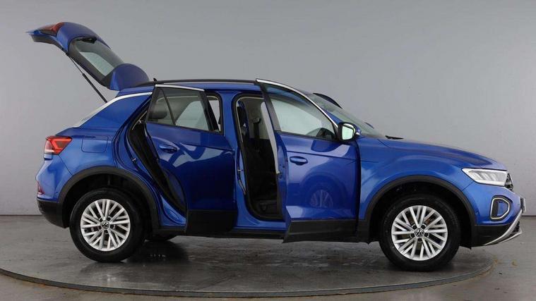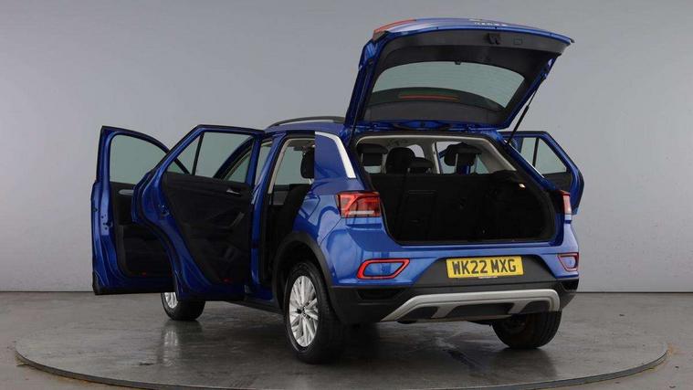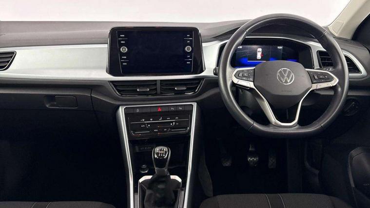Bluetooth mobile phone interface, Driver alert system with fatigue detection, Driver tips and journey analysis, Emergency call service, Lane keeping system Lane Assist, Modified key software - reduce switch off time for key status change to Long no motion, Online services, Park assist including front and rear parking sensors, Power assisted speed sensitive steering, Service interval indicator, Tailgate/trunk lid release from outside, Think blue trainer driver tips and journey analysis, Warning sound and light for front seatbelts unfastened, Wireless app connect, Battery regeneration during braking, Front shock absorption, Rear shock absorption chassis with increased ride height, Start/stop function with battery regeneration, DAB Digital radio, Diversity antenna for FM reception, Front and rear 6 speakers, Music playback - MP3, WMA and AAC files, Premium USB cable in choice of either Apple or Android smartphone compatibility, SD card slot, Simultaneous pairing of 2 compatible mobile devices, Title and cover art display, We Connect and We Connect Plus functionality, 3rd brake light, Auto dimming interior rear view mirror, Automatic hazard lights activation under emergency braking, Automatic headlight control with LED separate daytime running lights with coming/leaving home function, Black roof rails, Body coloured bumpers and radiator grille with chrome trim and front fog lamps with chrome bezel, Body coloured exterior mirror housings and door handles, Extended roof spoiler, Exterior mirrors aspherical on driver side, convex on front passenger side, External USB type C socket and charging sockets, Front windscreen wiper with intermittent wipe and 4 position delay, Heated rear window, LED Headlights, LED rear combination lamps, LED rear number plate lights, LED tail lamp rear comination lamps, Power windows with comfort operation and circuit breaker, Rain sensor, Rear exhaust tailpipe, Rear fog light on one side and reversing lights on both sides, Rear side wing doors, Rear wash/wipe with intermittent wipe setting, Remote electrically foldable door mirrors, puddle lights and reverse activated passenger's door mirror, 12V power socket in centre console, 3 rear head restraints, 3 seat bench in 2nd row, 4 load lashing points in luggage compartment, Air care climatronic air conditoning system with active combination filter and 2-zone temperature control, Ambient lighting with mirror logo projection, Cloth upholstery, Door and side trim panel in cloth, Drawer under drivers seat, Driver/front passenger seat height adjustment, Front centre armrest, Front comfort sports seats, Front cupholders x 2, Front reading light, Instrument lighting, white adjustable panel illumination, Interior light delay, Isofix child seat preparation, Leather gearshift handle, Load-through provision with cup holder when folded down ('Unsplit rear seat bench, split folding backrest, with centre armrest), Luggage compartment lighting, Lumbar support for driver's and front passengers seat, Non-folding front passenger seat backrest, Single front passenger seat, Storage compartment in left and right luggage area, Storage compartment in rear doors, Storage compartments in driver and front passenger doors, Sunvisors with illuminated vanity mirrors, Variable boot floor, height adjustable and removable, Driver assistance pack without proactive passenger protection - T-Roc, 3 point height adj front seatbelts + pretensioners, 3 point seatbelts in outer rear with ECE label, ABS, Child locks on rear doors, Driver and front passenger airbag with front passenger airbag deactivation, Driver and front passenger safety-optimised head restraints, Drivers seatbelt reminder, Electronic parking brake, Electronic Stability Control (ESC) inc EDL (Electronic Differential Lock) and ASR (Traction Control), Front and rear passengers curtain airbag system including front side airbags, Front assist with city emergency braking and pedestrian monitoring, Front disc brakes, Front seat side impact airbags, Hill start assist, Predictive pedestrian protection, Rear disc brakes, Single tone horn, Tyre pressure loss indicator, Volkswagen roadside assistance, Alarm with interior protection, Anti-theft alarm system with interior monitoring, backup horn, and towing protection, Remote central locking with SAFELOCK, radio remote control with 2 remote control folding keys, Pewter matt decorative inserts for intrument panel, centre console and door panels at the front, Trims for alloy wheels,