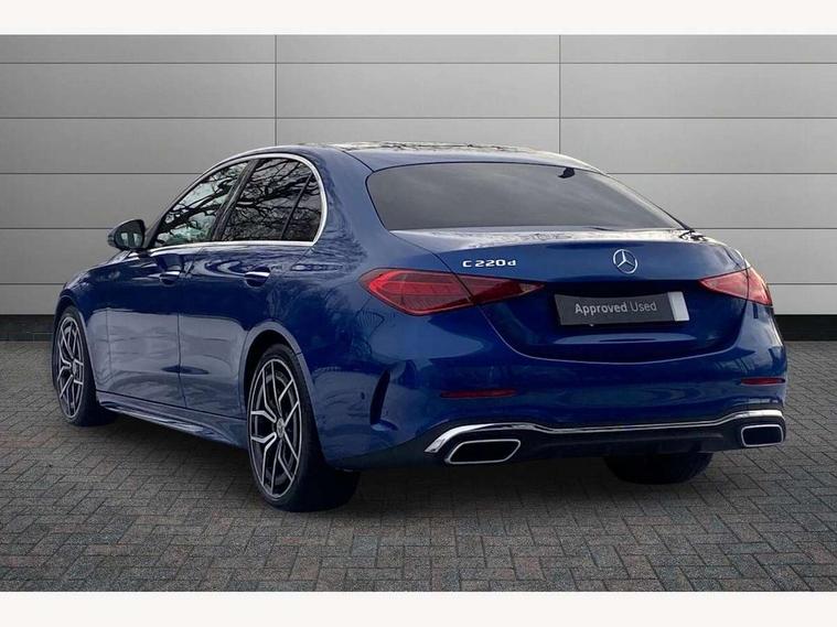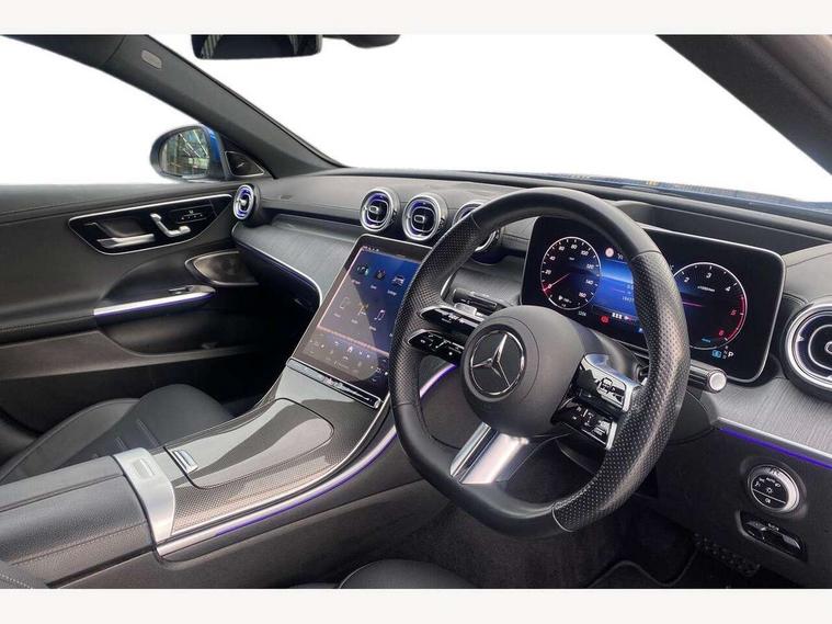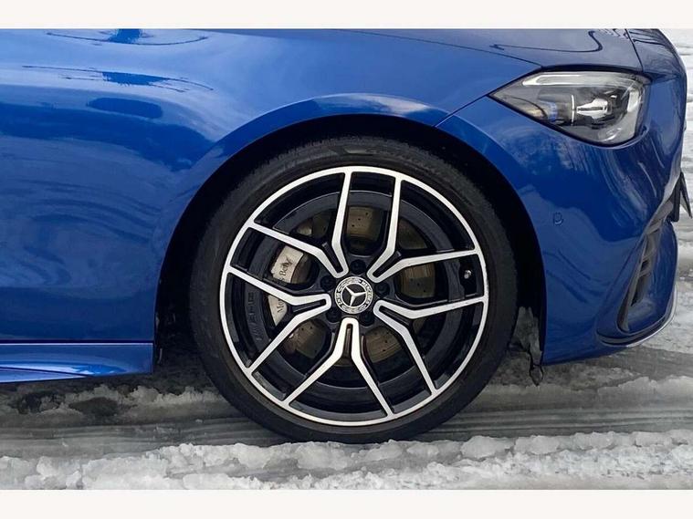 11.9" high resolution multimedia colour display, 12.3" digital instrument cluster display, Active blind spot assist, Active brake assist plus, Active lane keeping assist, AMG DYNAMIC SELECT with a choice of driving modes (Slippery, Comfort, Sport, Sport+, Individual), Attention assist, Cruise control with speedtronic variable speed limiter, E-call, Extended MBUX functions, Finger print sensor, Fluorescent jacket for driver, Head up Display, MBUX augmented reality for navigation, MBUX navigation premium, MBUX voice control activated by keywords "Hey Mercedes", Mercedes connect me, Mercedes me remote services, Outside temperature gauge, Pre-installation for digital key transfer, Remote boot release, Service indicator (ASSYST), Smartphone integration, Sports direct steer speed sensitive steering, Status display for rear seat belts in instrument cluster, 66l fuel tank with increased capacity, 9G TRONIC 9 speed automatic transmission, Agility control sports suspension and lowered by 15 mm, Diesel particulate filter, Burmester surround sound system, DAB Digital radio, MBUX multimedia system, Adaptive brake lights, Adaptive high beam assist plus, AMG body styling front apron, rear apron and side skirts, AMG front bumper with sporty air intakes and chrome elements, AMG rear bumper with high gloss chrome elements, AMG side skirts in vehicle colour, B-pillar trim in glossy black, Body coloured bumpers, Body coloured door mirrors, Chrome beltline trim, Daytime running lights, Digital light LED headlamps, Electric panoramic sliding sunroof, Electric windows with one touch opening/closing and obstruction sensors, Electrically adjustable and heated door mirrors, Green tinted glass, LED Indicators, LED tail lights, LED third brake light, Powerdomes on bonnet, Privacy glass, Radiator diamond grille with integrated Mercedes Benz star and louvre silver with chrome pins, Radio aerial integrated into rear window, Rain sensor with automatic windscreen wiper activation, Rear boot, Rear side wing doors, Two visible exhaust pipes integrated into rear bumper, 3 seat bench in 2nd row, 3 spoke flattened bottom AMG multifunction steering wheel in black nappa leather with chrome inserts and perforated leather in grip area, 40:20:40 split folding rear bench seat, AMG sports seats, Artico man-made leather upholstery, Audio and onboard settings control on multifunction steering wheel, Auto Mercedes-Benz child seat recognition sensor, Black air vents with silver chrome elements, Black floor mats with AMG lettering, Black roof liner, Door trim elements high gloss black with silver chrome surroundings and switches, Double cupholder in centre console, Electrically height/reach adjustable steering column, Folding rear seat backrest, Front and rear head restraints, Front centre armrest with storage compartment, Gearshift paddles on steering wheel, Heated front seats, Illuminated door sills with Mercedes Benz lettering, Illuminated glove compartment stowage, Interior lighting - 64 colour Ambient lighting, Overhead control unit in high gloss black, Rear top tether child seat ISOFIX attachment, Single front passenger seat, Sports pedals with stainless steel surfaces and rubber studs, Sunvisors with illuminated vanity mirrors, Thermotronic automatic 4 zone climate control, Interior lighting package - C Class, Memory package - C Class, Mirror pack - C Class, Parking package with 360 degree camera - C Class, Seat comfort pack - C Class, Stowage space pack - C Class, USB package - C Class, 3 rear 3 point seatbelts, Active bonnet pedestrian safety measure which detects an impact and raises bonnet, Adaptive brake system with HOLD function and brake drying in the wet, Anti-lock braking system (ABS), Black seat belts, Brake calipers with Mercedes-Benz lettering + perforated front brake discs, Child proof door locks, Drivers knee airbag, Drivers pelvis airbag, Dual stage driver/passenger airbags, Electric parking brake, Electronic Stability Programme (ESP), Front centre airbag between driver and front passenger seats, Front side airbags, Larger brake discs on front axle, Rear seatbelt warning indicator, Sports braking system with perforated front disc brakes, Tyre pressure monitoring system, Warning triangle and first aid kit, Window airbags for driver, front passenger and rear passenger, Central locking with interior switch, automatic locking and crash sensor with emergency opening function, Chrome surround in electric key, Keyless Go, URBAN GUARD vehicle protection (Thatcham Category 1) consisting of break-in, anti-theft alarm system (ATA), interior monitoring and tow-away protection, Artico man-made leather dashboard with contrast stitching, Centre console trim in anthracite line structure lime wood, 19" AMG 5 twin spoke light alloy wheels aerodynamically optimised painted in black with high sheen finish, Summer tyres, TIREFIT with tyre inflation compressor,