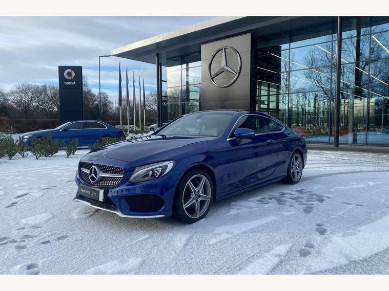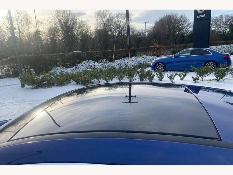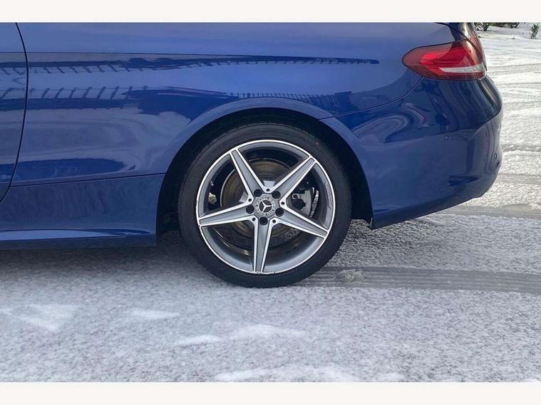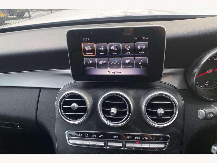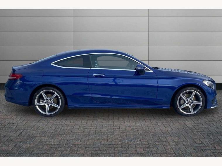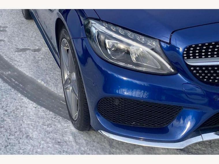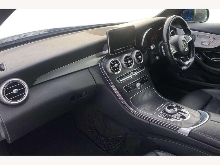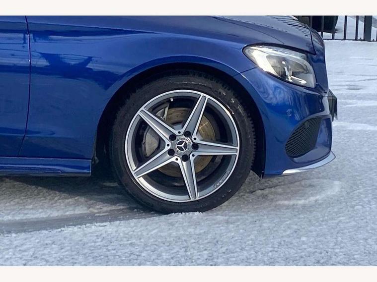 Active park assist with parktronic system, Attention assist, Bluetooth interface for hands free telephone, Collision prevention assist plus, DYNAMIC SELECT with a choice of driving modes (ECO, Comfort, Sport, Sport+ and Individual), Garmin Map Pilot navigation system with SD card, touchpad and voice control, Instrument cluster with 5.5-inch TFT multi-function display, Multi function trip computer, Outside temperature gauge, Remote boot release, Service indicator (ASSYST), Speed sensitive steering, Sport exhaust system, 2 USB ports, Audio 20 radio/CD with 7" colour display with multi touch keypad, DAB digital radio module, Frontbass loudspeakers, Media interface, Steering column mounted multifunction controls, Adaptive brake lights, AMG front, rear apron and side skirts, Auto dimming driver's door mirror, Auto dimming rear view mirror, Body coloured bumpers, Chrome grille surround, Door sill plates with "Mercedes-Benz" lettering, Electric adjustable/heated/folding door mirrors, Electric front sliding and fixed rear panoramic glass sunroof, Electric windows one touch open/close, Green tinted glass, Heated windscreen washers, LED daytime running lights, LED tail lights, Radiator grille with integral star, Rain sensor windscreen wipers, Side windows surround in polished aluminium, Twin chrome exhaust tailpipes, 2 cupholders in front centre console, 2 rear head restraints, 3 spoke flat bottom multi-function leather AMG steering wheel, 4-way lumbar support for drivers seat, 4-way lumbar support for front passenger seat, 40:20:40 split folding rear seats, Advanced multicolour ambient light and LED interior light, AMG floormats, Auto dual-zone climate control system, Auto Mercedes-Benz child seat recognition sensor, Door courtesy lamps, Electric front seats, Electric height adjustable front seats, Front centre armrest with storage compartment, Front footwell illumination, Heated front seats, Height/reach adjustable steering column, Illuminated front/rear door handle recesses, Illuminated glovebox, Isofix rear child seat fastenings, LED reading lights, Sports pedals with stainless steel surfaces and rubber studs, Sports seats with integrated headrests, Steering wheel gearshift paddles, Sunvisors with illuminated vanity mirrors, Memory pack - C Class, Seat comfort pack - C Class, Stowage space pack - C Class, 2 rear seatbelts, ABS + BAS, Active bonnet, Adaptive brake system, Brake calipers with Mercedes-Benz lettering + perforated brake discs, Drivers knee airbag, Drivers pelvis airbag, Dual stage driver/passenger airbags, Electronic parking brake, ESP with ASR, Front side airbags, Hill hold control, Hill start assist, Tyre pressure monitoring system, Warning triangle and first aid kit, Window airbags, Alarm system/interior protection/immobiliser, Chrome surround electric key, Keyless entry and keyless start, Remote central locking,