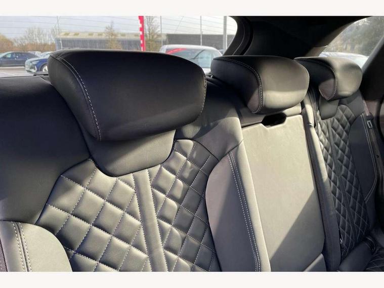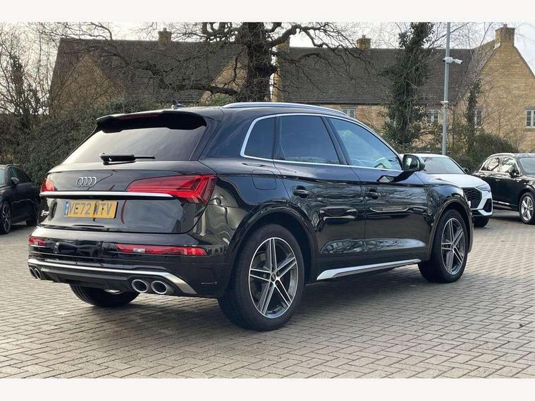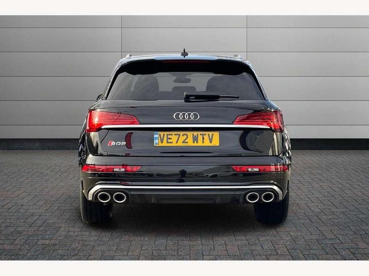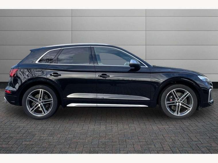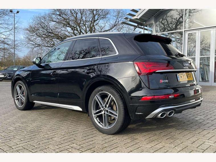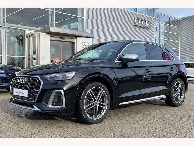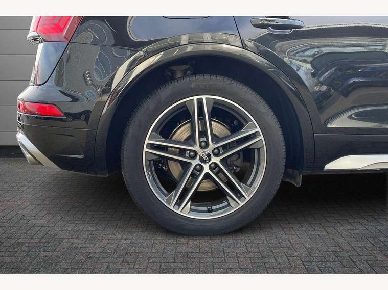 Audi connect safety and service (e-call), Audi connect with Amazon Alexa Integration, Audi drive select, Audi virtual cockpit plus with 12.3" screen and three different layout designs, Audi wireless smartphone interface, Automatic start-stop system with coasting functionality and efficiency programme, Bluetooth interface, Electro - mechanical power assisted steering, MMI navigation plus with 10.1" touch screen, Power tailgate, Reversing camera, Service interval indicator, Voice control system with Audi hotword activation "Hey Audi", 70 litre fuel tank and 24 litre AdBlue tank, Diesel particulate filter, Quattro on demand, S sports suspension, 2 x USB charging port with aux input socket, Audi sound system, DAB Digital radio, Acoustic windscreen, Aluminium roof rails, Audi beam, Audi beam with Audi rings logo, Auto dimming door mirrors, Auto dimming rear view mirror, Automatic headlight adjustment, Automatic headlights and windscreen wipers, Body colour bumpers, Body colour rear diffuser with matt aluminium silver surrounds, Body colour underbody protection, Chrome plated exhaust trims, Daytime running lights, Door sills in Selenite silver, Electric adjustable/heated/folding door mirrors, Front air inlet surrounds in titanium black, Front and rear electric windows, Front radiator grille in honeycomb design, Headlight washers, High gloss black B pillar trims and triangular rear door trim, High level LED brake light, Lower bumpers painted in contrast Manhattan grey, Rear chrome trim strip below lights, Rear privacy glass and rear side windows, Rear side wing doors, Rear wiper, Roof bars, S front and rear bumpers, S Line rear spoiler, S Line side skirts, S specific rear diffuser, 3 rear headrests, 4 way electric lumbar support for driver and front passenger, 40:20:40 split folding 3 rear bench seat in 2nd row with rear centre armrest, Black cloth headlining, Comfort front centre armrest, Contrast stitching on seats, steering wheel and gear lever gaiter, Deluxe 3 zone electronic climate control, Fine Nappa leather upholstery with diamond pattern contrast stitching + front sport seats with S embossed logo, Front/rear floor mats, Fully electrically adjustable seats, Gear lever in black leather, Heated front seats, Height adjustable front head restraints, Height/reach adjustable steering column, Illuminated door sill trims with S logo, ISOFIX child seat mounting and top tether, Luggage compartment cover, Massage function for front seats, Rear seat bench plus, Removable luggage compartment floor, Single front passenger seat, Stainless steel pedals, Sunvisors with vanity mirrors, Extended interior upholstery pack - Q5, High gloss pack - Q5, LED interior light pack - Q5, 3 point seatbelts on all seats, 6 airbags - Driver, front passenger, curtain and side airbags, Electrically operated child locks on rear doors, Electromechanical parking brake, Electronic stabilisation control including ABS, ASR and EDL, Front passenger airbag deactivation, Hill descent control, Hill hold assist, Multi collision brake assist, Pop-up bonnet for pedestrian protection, Pre sense city, Seat belt force limiter, Seatbelt monitoring, Tyre pressure warning, Warning triangle and first aid kit, Anti theft alarm, Anti-theft wheel bolts, Keyless Go access/ignition system, Remote central locking,