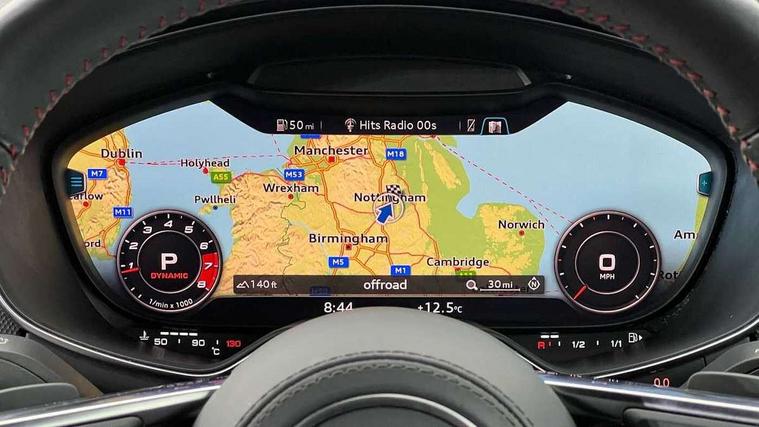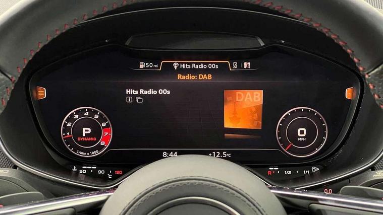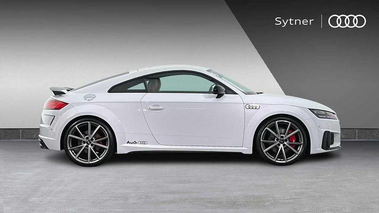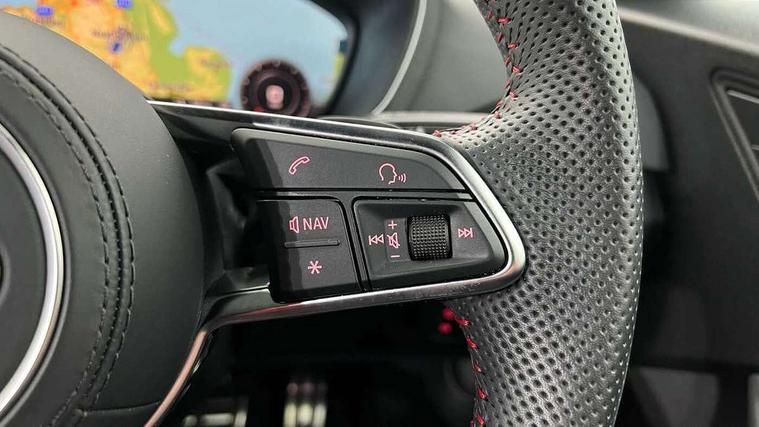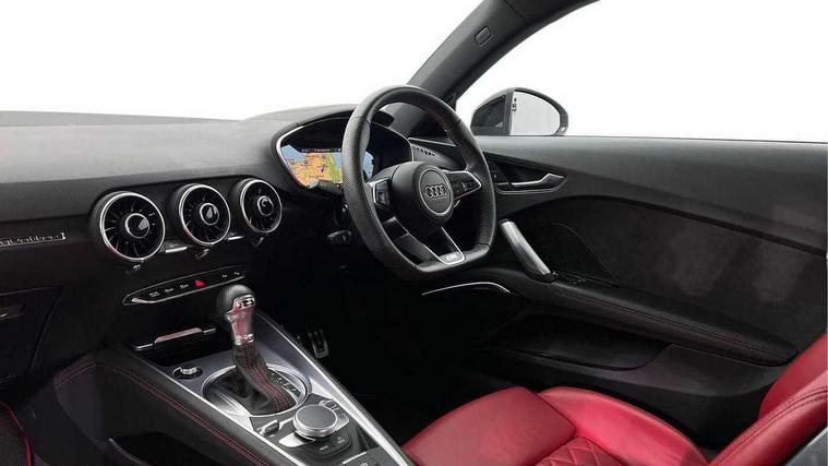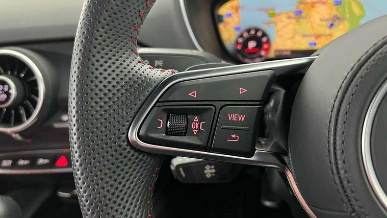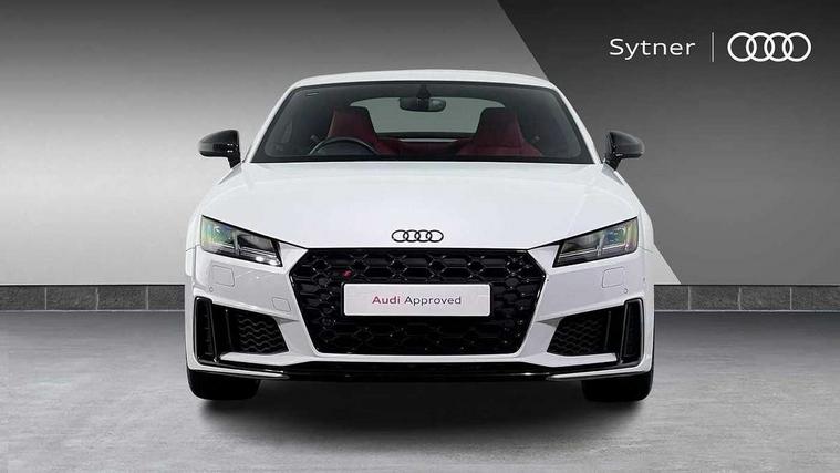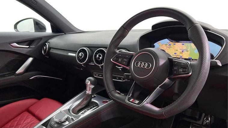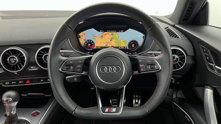 Audi drive select with 4 Pre configured modes, Audi Phone Box with wireless charging - Qi enabled compatible phone and additional bluetooth interface, Audi smartphone interface, Audi Virtual Cockpit with sport gauge, Cruise control + speed limiter, Emergency call service, Mobile phone preparation with bluetooth interface, Progressive power assisted steering, Service interval indicator, Start/Stop system with energy recuperation, TP memo, Audi magnetic ride, TTS suspension, AM/FM radio, Audi Sound System with 9 speakers, Bluetooth audio streaming, DAB Digital radio, MMI Radio with CD player and SD/XC card slot, Audi Beam uses LEDs to project the Audi Sport logo, Auto dimming rear view mirror, Auto headlight range control, Black door mirrors, Dark privacy glass from B-pillar backwards, Electric folding door mirrors, Electric front windows, Electrically adjustable and heated door mirrors with integrated LED side indicators, Green tinted heat insulating glass, LED 3rd brake light, LED daytime running lights, LED headlights with LED rear lights + dynamic rear indicators, Light and rain sensors, Rear boot, Sunband for windscreen, 12V socket, 2 rear seats, 3 spoke flat bottomed contour leather multi-function TTS sport steering wheel and TTS badging, 4 way electric lumbar support for driver and front passenger, Black headlining, Deluxe auto air conditioning with integrated digital display, Door sill trims with aluminium inlay and TTS logo, Front centre armrest, Front passenger seat, Front super sports seats, Heated front seats, Height/reach adjust steering wheel, Integrated head restraints, ISOFIX child seat mounting for front passenger seat with airbag deactivation, Manual adjustment of seat height, fore/aft position, seat angle, seat depth and backrest angle, Perforated leather gearknob in black, Rear head restraints, Rear top tether child seat ISOFIX attachment, Split folding rear seat, Stainless steel pedals, Tool kit, Black styling pack - TT, Leather pack - TTS, LED interior light pack - TTS, Non smoking pack - TT/TT RS, Technology pack without Audi phone box - TT, 3 point front seat belts, ABS, ASR traction control, Curtain airbags, Driver and front passenger airbag with front passenger airbag deactivation, EDL traction control, Electromechanical parking brake, ESP, First aid kit, Front side airbags, Head airbags, Hill hold assist, Seatbelt warning, Tyre pressure loss indicator, Warning triangle, Anti theft alarm, Anti theft wheel bolts, Immobiliser, Keyless Go, Remote central locking, Matt brushed aluminium inlays, Tyre repair kit,