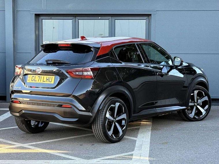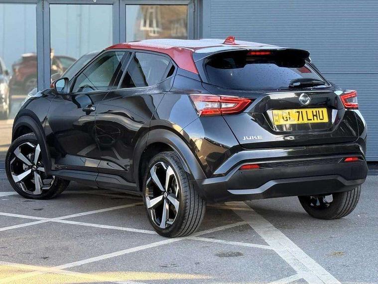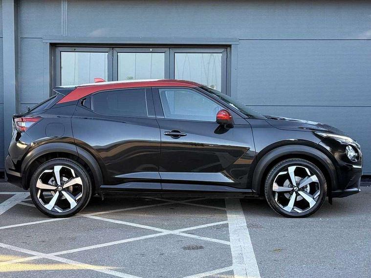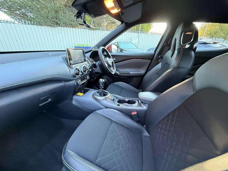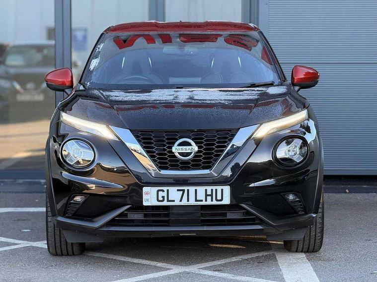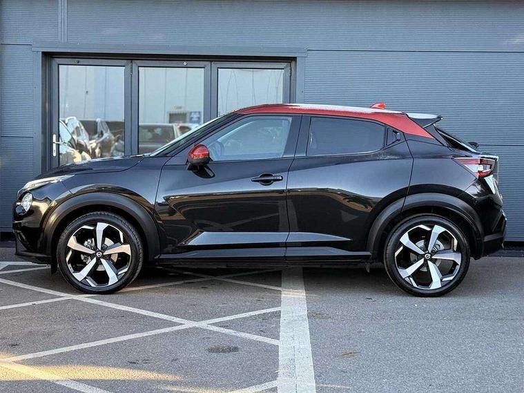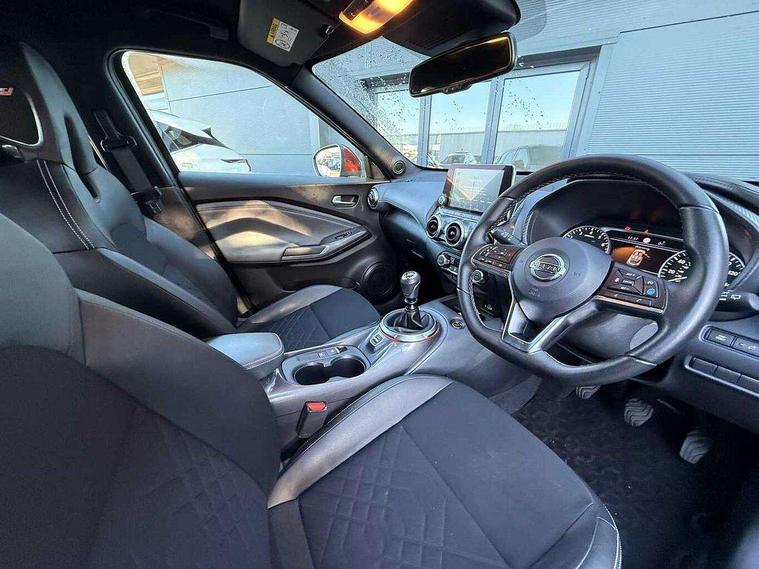 7" full colour TFT screen combimeter, Apple CarPlay and Google Android auto, Drive modes select (Eco, normal and sport), eCall emergency call system, Emergency and breakdown call, Front parking sensor, Idle start/stop system, Intelligent lane intervention, Lane departure warning system, Nissan connect 8" touch screen entertainment system, Nissan connect nav with TomTom traffic, Nissan connect services and Wifi connection, Outside temperature sensor, Power Steering, Rear parking sensor, Traffic sign recognition, Trip computer, Voice recognition, Gasoline particulate filter, Bluetooth system, USB, Aux-in and 12V socket, Bose personal plus audio system with 8 speakers(4 speakers and 2 headrest speaker for driver and passenger seats), Bose personal sound stage control, DAB Digital radio, Rear console USB port, Auto dimming interior rear view mirror, Auto headlights, Automatic hazard signal with emergency stop signal, Body colour bumpers, Body colour door handles, Electrically adjustable door mirrors with integrated indicators, Follow me home headlights, Front and rear electric window with one touch driver window, Heated and auto folding door mirrors, High beam assist, LED daytime running lights, LED front fog lights, LED headlamps, LED rear fog lamp, LED rear lamps, Rain sensor windscreen wipers, Rear privacy glass, Rear side wing doors, Rear wiper, Thermaclear heated windscreen, Three blink turn signal, 3 height adjustable rear headrests, 3 seat bench in 2nd row, 60/40 split folding rear seat, Automatic climate control, Card holder on driver sunvisor, Cloth/Synthetic leather upholstery, Door ambient lighting, Driver and passenger sliding and reclining seats, Driver seat back pocket, Driver side rear coat hanger, Driver/passenger sunvisors and vanity mirrors, Front and rear cabin lights, Front armrest, Front door pockets with bottle holders, Front head restraints, Front passenger isofix child seat anchorage point, Front/rear passenger grab handles, Gear console ambient circle lighting, Grey synthetic leather kneepad, Heated front seats, Height adjustable driver's seat, Height adjustable passenger seat, Internal chrome door handles, Leather gearshift knob, Leather steering wheel, Luggage board, Luggage space lighting, Monoform sporty seats, Multifunction steering wheel, Passenger seat back pocket, Rear door bottle holders, Single front passenger seat, Telescopic steering wheel adjustment, Two cupholders in front centre console, Two rear isofix child seat anchorage points with top tether, Welcome light and console tray ambient lighting, Advanced safety shield pack - Juke, ABS with EBD and brake assist, Active ride control, Active Trace Control, Driver and passenger airbags, Driver and passenger side airbags, Electric handbrake with auto hold function, Electronic Stability Programme (ESP), Front and rear curtain airbags, Height adjustable seatbelts, Hill start assist, Intelligent emergency braking with pedestrian and cyclist recognition, Rear door child safety locks, Seatbelt reminder for driver/front passenger and rear seats, Single tone horn, Three 3 point rear seatbelts, Traction control, Tyre pressure monitoring system, VDC Dynamic Vehicle Control, Ventilated rear brake discs, Alarm, Immobiliser, Intelligent Key with push button starter, Remote central locking,