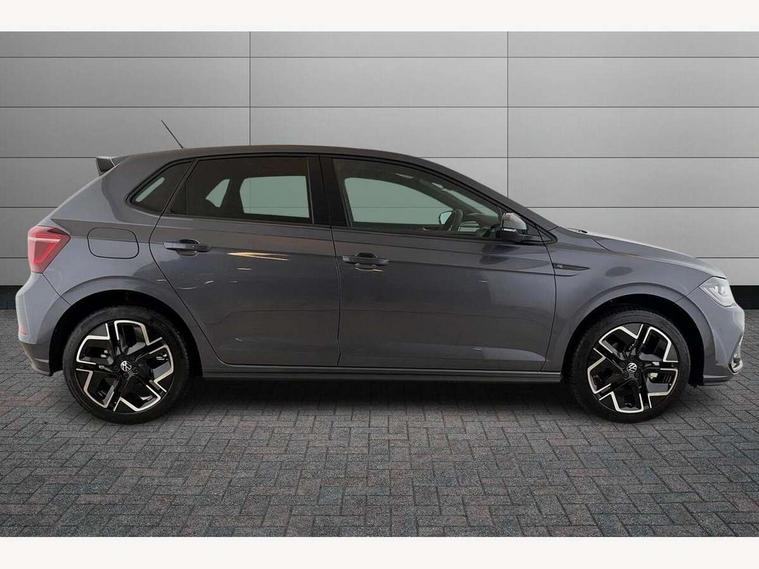Adaptive cruise control with follow-to-stop and speed limiter, Advanced driver attention and drowsiness monitor, Bluetooth mobile phone interface, Digital Cockpit Pro with 10.25" Display, Dynamic road sign display, Emergency call service, Mobile phone preparation with inductive charging function, Multifunction camera, Power assisted speed sensitive steering, Preparation for We connect and We connect plus, Speedo and rev counter, electronic odometer, trip, service interval display and fuel gauge, Standard rear axle, Travel Assist - Lane keeping system and traffic jam assist, Travel assist including emergency assist, Trip computer, Warning signal and warning light for front and rear seatbelts not fastened, Washer fluid level indicator, Wireless app connect, Front wheel drive, Rear shock absorpion, Start-stop system with battery regeneration (recuperation - energy recovery during braking), DAB Digital radio, Diversity antenna for FM reception, Body colour bumpers, Body colour door handles, Electric front windows, Front scuff plates with Black edition logo, Heat insulating glass windscreen, Power folding adjustable/heated exterior mirrors and front passenger exterior mirror lowering function, Rear electric windows, Rear fog light, Rear side wing doors, Rear windscreen washer and wiper with interval delay, Third brake light, 12V power socket in centre console, 2 USB-C ports in the front, 2 USB-C charging sockets on the center console in the rear, 3 rear head restraints, 60/40 split folding rear seat and rear seat bench not split, Air care climatronic air conditoning system with active combination filter and 2-zone temperature control, Black roof lining, Carpet mats, front and rear, Chrome plated radiator grille inserts, air vent surrounds and light switch surrounds, Door and side trim panel, Driver and front passenger seat height adjustment, Driver/passenger sunvisors with illuminated vanity mirrors, Front centre armrest, Front footwell illumination, Front seat backrest storage pockets, Front sports comfort seats, Handbrake lever handle in leather, Headliner in recycled material, Heated front seats, Isofix child seat preparation easy-fit (for two outer rear seats, and front passenger seat) compatible with I-size, Karoso artvelours cloth upholstery, Leather trimmed gear knob, LED interior light with switch off delay and dimmer, 2 reading lights front and rear, Luggage compartment cover, Luggage compartment floor, Luggage compartment lighting, Lumbar adjustment for front seats, Single front passenger seat, Stainless steel pedals, Standard pedal cluster, Three spoke leather wrapped multifunction steering wheel with shifting paddles, Black roof pack - Polo, IQ LED matrix headlights pack - Polo, Light and sight pack - Polo R-Line/Black Edition, 3 point height adj front seatbelts + pretensioners, 3x3 point rear seatbelts, ABS, Driver and front passenger airbag with front passenger airbag deactivation, Drivers and front passengers safety optimised head restraints, ESC (Electronic stability control) + EDL (Electronic Differntial lock) and ASR (Traction control), Extended and predictive pedestrian/ cyclist protection, Front curtain and side airbags with center airbag, Front/rear disc brakes, Hill hold control, Manual child lock in rear doors, Single tone horn, Tyre pressure loss indicator, Alarm with interior protection, Anti-theft alarm system with interior monitoring, backup horn, and towing protection, Anti-theft wheel bolts, Electronic engine immobiliser, Black dashboard, Chrome applications on rotary light, mirror adjustment, window regulator switches, outlet with frame in black, Dark grey anodised matt decorative inserts in dash and front door panels, 17" York alloy wheels, Low rolling resistance tyres,