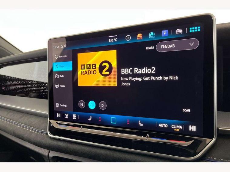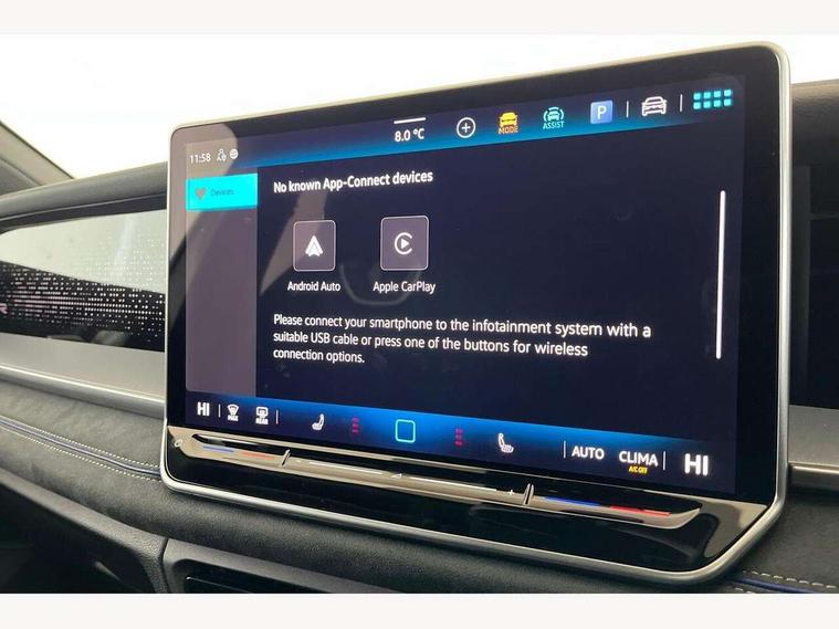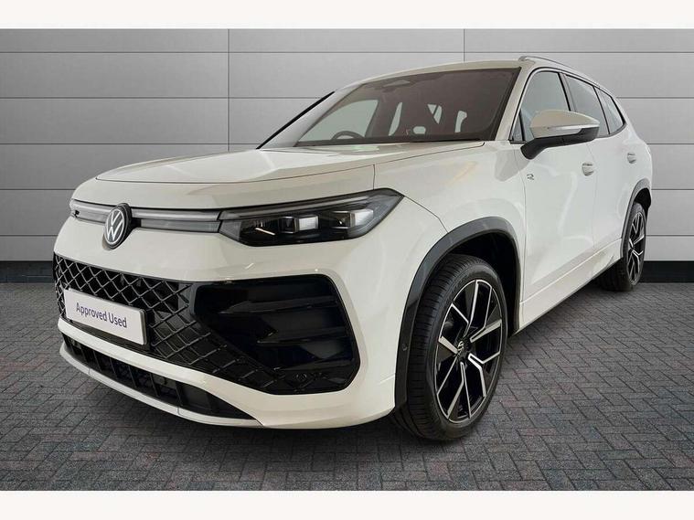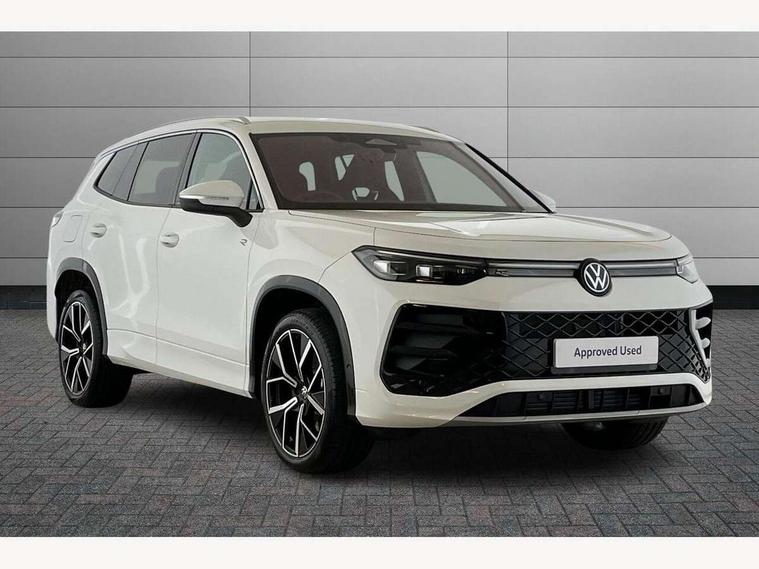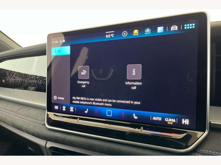 Adaptive cruise control (ACC), Digital Cockpit Pro - 10.25" high resolution dash display screen with customisable menus and information, Driver alert system, Driver attention monitoring system, Dynamic road sign display, E-Sim card for online connectivity, eCall emergency call system, Lane change system, Side assist, Rear traffic alert and Exit warning system, Multifunction front facing camera, Oncoming vehicle braking when turning including swerve support, Start/stop system with regenerative braking, Voice activation spoken voice commands for telephone and navigation system, Warning signal and warning light for front and rear seatbelts not fastened, Wireless App-Connect, Front wheel drive, Digital radio reception (DAB), Diversity antenna for FM reception, Air intake with Chrome trim, Auto dimming interior rear view mirror, Automatic headlight control system, Body colour door handles, Chrome moldings on the side windows, Coming/leaving home lighting function, Dynamic headlight range control with dynamic cornering light, Exterior mirrors convex on the left and aspherical on the right, Heat insulating glass in side and rear windows, Illuminated Volkswagen logo rear with animation, Laminated safety glass windshield, heat insulating, LED 3rd brake light, LED separate signature day time running light, Puddle lights, Rain sensor windscreen wipers, Rear fog light on one side, reversing light on both sides, Rear side wing doors, Rear wiper, Reverse activated passenger's door mirror, Surround lighting with welcome light, Volkswagen logo in front, illuminated lighting animation with wake up/goodbye scenario and illuminated door handles, 10 colour interior ambient lighting, 12V outlet in center console rear and in luggage compartment, 3 rear headrests, 3 rear seat bench in 2nd row, backrest split folding with centre armrest and 2 seats in 3rd row of seats, Black roof lining, Brushed stainless steel pedals, Carpet mats, front and rear, Centre console with illuminated storage compartment with sliding cover and two drinks holders, Chrome elements on the mirror switch and power window switches and door pulls, Door and side trim panel insert in Art velour, Flat luggage compartment floor, Front centre armrest, Front scuff plates in aluminium, ISOFIX anchors for child seats on outer rear seats and front passenger seat compatible with i-Size, Mechanical rear seat release, Power adjustable lumbar support in front, Single front passenger seat, Sports comfort seats in front, Sun visors with illuminated vanity mirrors, 3 Point seat belts in front with pretensioners, 3 point seatbelts in outer rear with ECE label, Autonomous emergency braking front assist with pedestrian and cyclist monitoring, Driver and front passenger airbag with front passenger airbag deactivation, Electronic parking brake with auto hold, First aid kit with warning triangle and safety vest, Front and rear curtain airbags, Front and rear side airbags, Front centre airbag, Front disc brakes, Hill start assist, Rear disc brakes, Two tone horn, Decorative material set R-Line, Interior door handle in matte chrome,