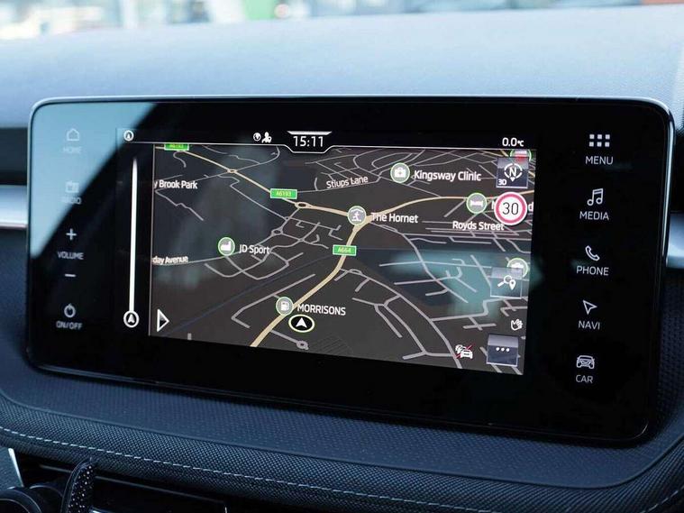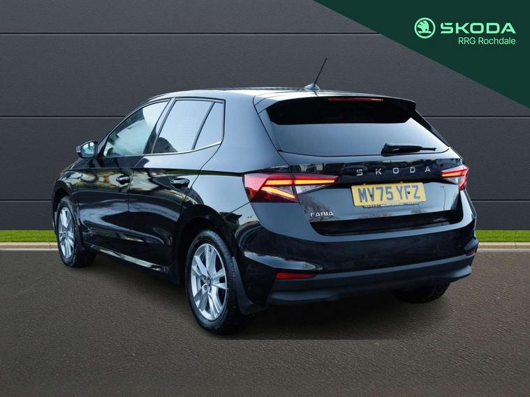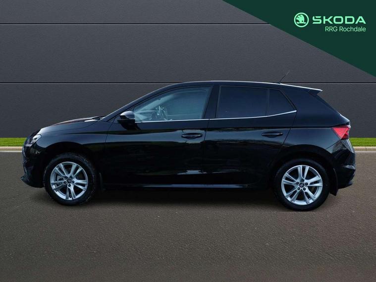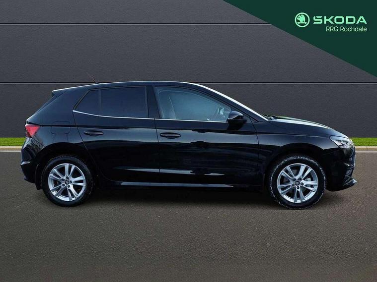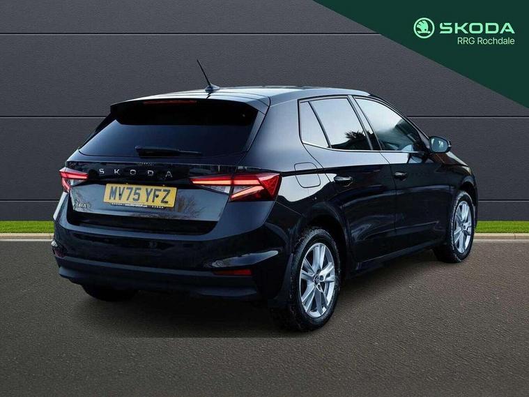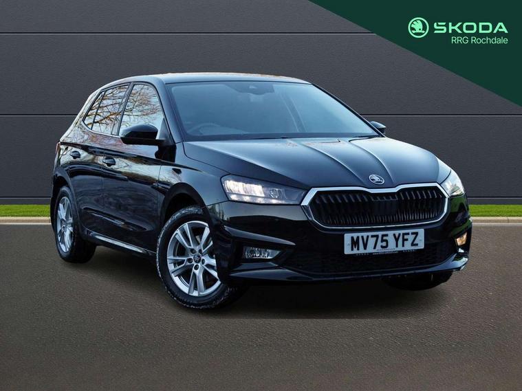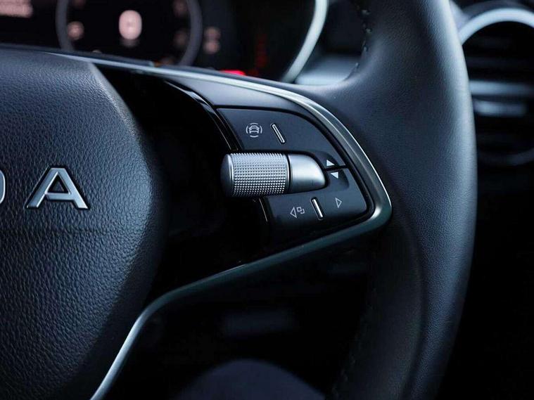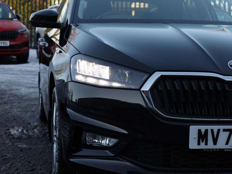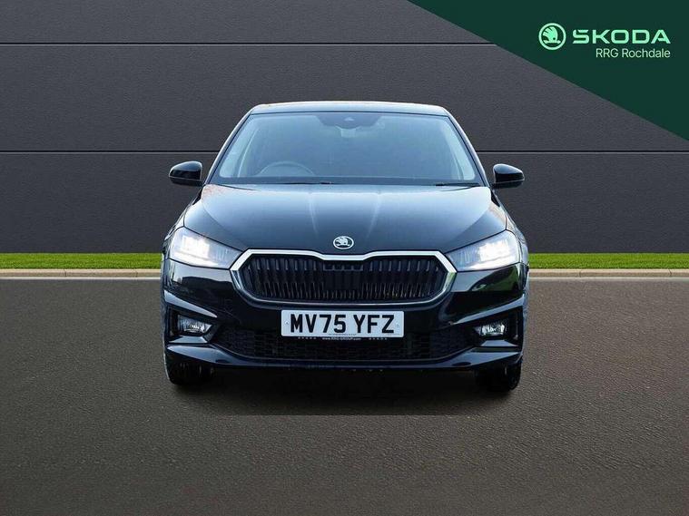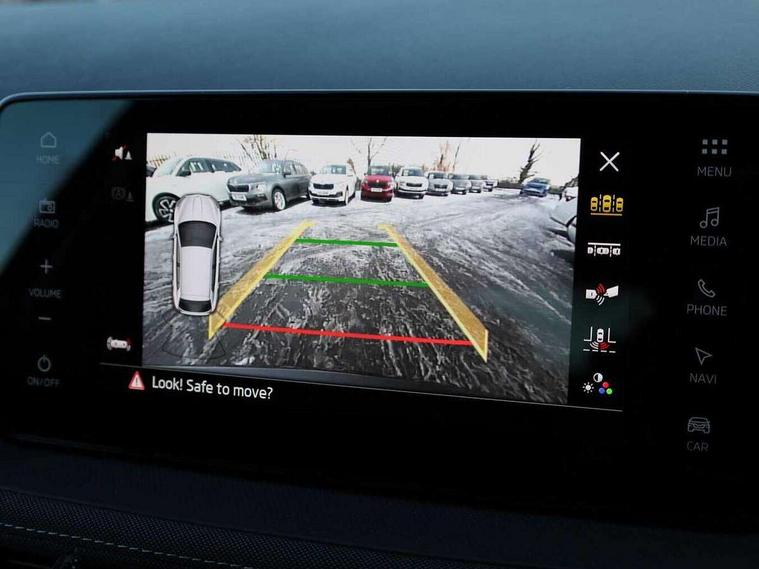 Advanced driver attention and drowsiness monitor, Bluetooth connection, Driver alert system, Electromechanical power steering, Exterior temperature gauge, Service interval indicator, Traffic sign recognition, Virtual cockpit with 10.25" colour display, Wireless SmartLink for Apple CarPlay and Android Auto, 6 Speakers (4 in front and 2 in rear), 9.2" colour display skoda navigation system with voice control and web radio, Auxiliary socket for external MP3 player, DAB digital radio reception, Auto dimming rear view mirror, Body colour door mirrors, Body coloured bumpers, Chrome window surround, Door mirror integrated indicators, Front and rear electric windows, Front window wiper intermittent control, Headlight range control - Automatic, Ice scraper in fuel cap, LED 3rd brake light, LED daytime running lights with coming and leaving home feature, LED rear lights, Privacy glass, Rear LED fog light, Rear side wing doors, Rear window wiper with washing nozzles, Roof mounted spoiler, SKODA tailgate lettering in chrome, Unique dark chrome design logo on alloy wheels, 2 LED reading lights in front and rear, 3 rear headrests, Backrest split and folding, Central console with fixed cup holder and storage box, Chrome handbrake release button, Comfort seats, Door sills with fabia badging, Dual zone air conditioning with climatronic electronic control, Fabric upholstery, Front centre armrest, Gearshift knob/handle in leather, Grain satin black interior door handles, Hand brake lever handle in leather, Height adjustable front headrests, Height adjustable front seats, Height adjustable steering wheel, ISOFIX and TopTether anchorage points to the outer rear seats, ISOFIX and TopTether on the front passenger seat, Luggage compartment lighting, Manually adjustable lumbar support in front seats, Pollen filter, Rear seat bench unsplit, Single front passenger seat, Skoda lettering on steering wheel, Storm grey headlining, Sun visors with mirror and airbag label on passenger side, Textile floor mats, Ticket holder, Umbrella in drivers door, Ambient lighting pack - Fabia Hatchback, 3-point height adjustable front seats belts with pretensioner and force limiter, Automatic warning lights in case of crash, Driver and passengers airbag with switch off function, e-Call+, ESC including ABS, MSR, ASR, EDS, HBA and XDS, Front and rear seat belt warning, FRONT ASSIST (AEB City and AEB Inter Urban), Front side airbags, Head airbags, One tone horn, Pedestrian protection, Three rear 3-points safety seat belts with pretensioner and force limiter including stop function for outer rear seat belts, Tyre pressure monitoring system, Anti-theft alarm system including immobiliser, interior monitoring, backup horn, and towing protection, Central locking with radio remote control, interior controls, SAFE function and 2 foldable keys, Chrome edged air vents, Grain satin black central console cover, Metallic grey upper decorative trim, Satin black door and side trim panel in front, Textile microsuede grey lower decorative trim with art grey stitching, Anti-theft wheel bolts protection, Super-low rolling resistance tyres,