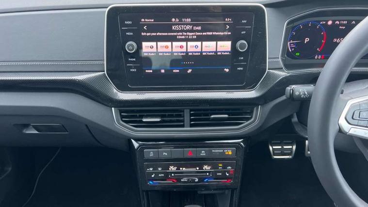 'Lights On' Reminder warning buzzer, 10.25" Digital cockpit pro, Advanced driver attention and drowsiness monitor, Car information display, Driver profile selection including ECO function, Dynamic road sign display, E-Sim card for online connectivity, eCall emergency call system, Front and rear parking sensors, Front assist, forward collision warning, autonomous emergency braking and speed limiter, Low washer fluid warning light, Mobile phone interface with inductive charging, Multifunction computer with visual gear change recommendation for fuel consumption, Multifunction front facing camera for distance control, Operating permit alteration, Power assisted steering, Predictive adaptive cruise control, Preparation for navigation system with media and internet package, Preparation for We connect and We connect plus, Semi-automated driving assistance, travel assist including lane keeping system Lane Assist and emergency assisst, Side assist, Speedo, rev counter, electronic odometer, trip, service interval display, exterior temperature and fuel gauge, Warning sound and light for doors and tailgate open, Warning sound and light for front seatbelts unfastened, Wireless Car net app connect with Apple CarPlay, combined functionality of Apple CarPlay/Android Auto and MirrorLink, Wireless charging, Misfuel prevention device, Start-stop system with battery regeneration (recuperation - energy recovery during braking), 2 USB C ports in front, 2 USB charging sockets on the centre console in the rear charging capacity upto 45W, Diversity antenna for FM reception, Music playback - MP3, WMA and AAC files, Radio, Advanced high beam control dynamic light assist, Automatic dimming interior rear view mirror, Automatic hazard lights activation under emergency braking, Automatic headlight control and coming home and leaving home feature, Black roof rails, Body colour door handles, Body coloured bumpers, Cornering light and poor weather light, Dynamic headlight range control, Electric folding door mirror, adjustable, heated with front passenger exterior mirror lowering function, Exterior mirror housings in black, Exterior mirrors convex on the left and aspherical on the right, Front and rear electric windows, Front door sill protectors with R-Line logo, Galvanised body, Heat insulating and laminated safety glass windshield, Heat insulating darkened glass in side and rear windows, Illuminated molding between headlamps, IQ.Light LED matrix headlamps with LED separate daytime running light, LED rear tail lights with dynamic turn signal, LED third brake light, Lower door sills and door pillars in black, Privacy glass for rear side windows and rear window, Rain sensor, Rear fog light on one side, reversing light on both sides, Rear side wing doors, Rear window aerial, Rear window wiper with intermittent control, Reflectors in all doors, Scuff plates, Tailgate with integrated roof spoiler, 12V Accessory socket in centre console, 2 Front and rear reading lights incorporating LED technology, 3 rear head restraints, 3 seat bench in 2nd row, 60/40 split folding rear seat backrest, Air care climatronic 2 zone air conditioning system, Ambient lighting and logo projection, Brushed stainless steel pedals, Chrome plated radiator grille inserts, air vent surrounds and light switch surrounds, Cloth upholstery, Comfort front sport seats, Door and side trim panel, Driver and front passenger sunvisor with vanity mirror, Dust and pollen filter, Front + rear carpet mats, Front centre armrest, Front centre armrest with storage compartment, Front footwell illumination, Front seat back storage pockets, Glove compartment door with light, Heated front seats, Heating and fresh air system with 4 stage blower, Height/reach adjust steering wheel, Instrument lighting white adjustable panel illumination, Interior light with switch off delay and dimmer, Isofix anchors for child seats on outer rear seats and front passenger seats, Leather gearshift handle, Leather wrapped multifunction steering wheel with paddle shift, Luggage compartment floor, Luggage compartment lighting, Manual front seats with height adjustment, Padded dashboard, Removable luggage compartment cover, Single front passenger seat, Storage compartment in drivers and front passengers door, Titanium black roof lining, Unsplit sliding rear seat bench, Without drawers under front seats, 3 point outer rear seat belts with ECE label, 3 Point seatbelt for centre rear seat, Anti-lock Braking System (ABS) with Hydraulic Brake Assist (HBA), Automatic post collision braking system, Disc brakes in front, Disc brakes in rear, Driver and front passenger safety-optimised head restraints, Drivers and Front Passengers airbags with front passengers airbag deactivation switch, ESC with EDL and ASR (traction control), Extended and predictive pedestrian/cyclist protection, Front and rear passenger curtain airbag system including front side airbags, Height adjustable front 3 point seatbelts + pretensioners, Hill start assist, Pre crash preventive occupant protection, Proactive passenger protection system in combination with front assist, Rear door child safety locks, Rigid safety cell with front and rear crumple zones, Single tone horn, Tyre pressure loss indicator, Volkswagen roadside assistance, Alarm with interior protection, Anti theft alarm system, Anti theft wheel bolts, Electronic engine immobiliser, Remote tailgate unlocking using key fob, Black decorative trims, Titanium Black Decorative inserts - R Line, 18" York alloy wheels in black, Low rolling resistance tyres,
