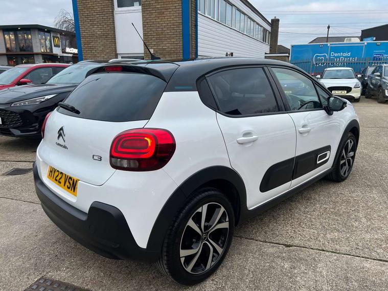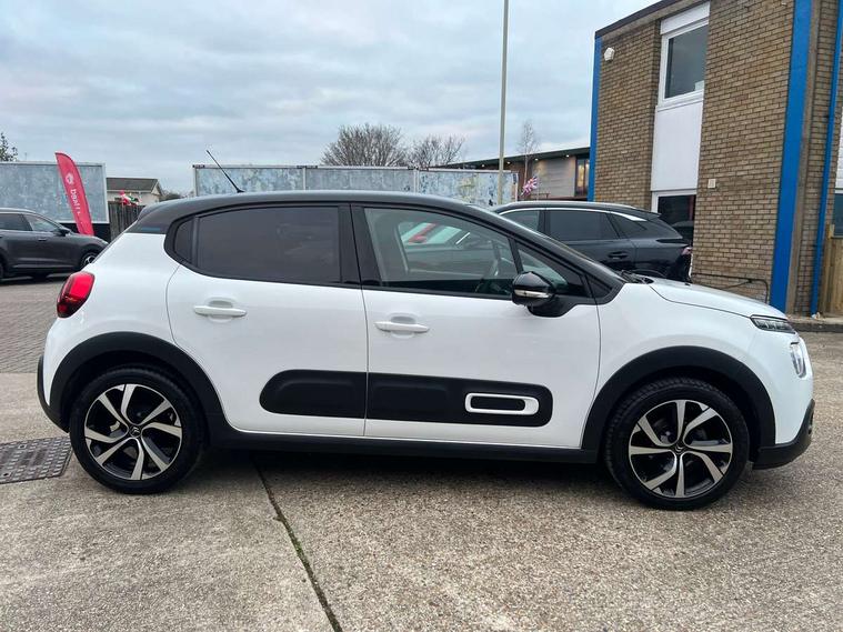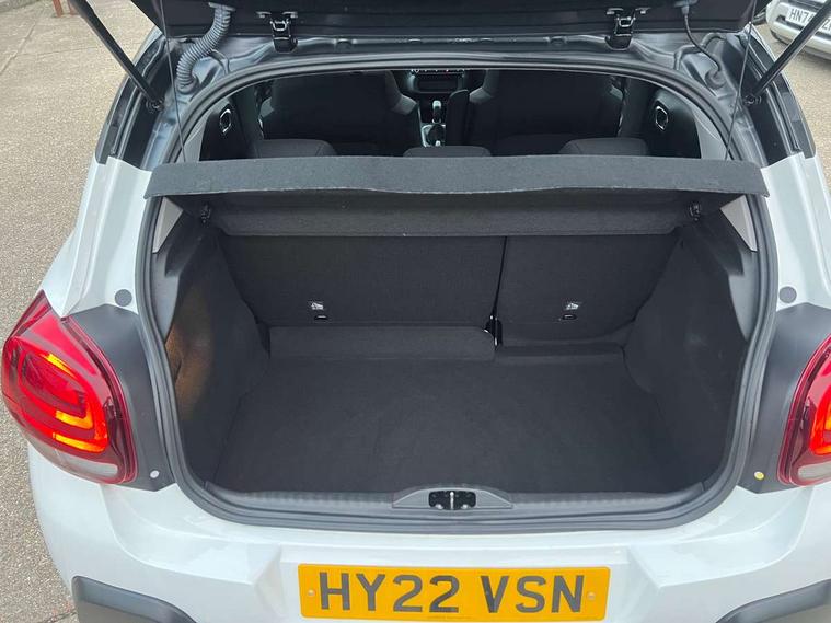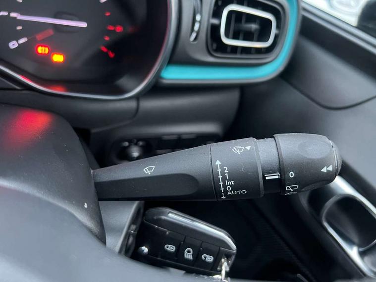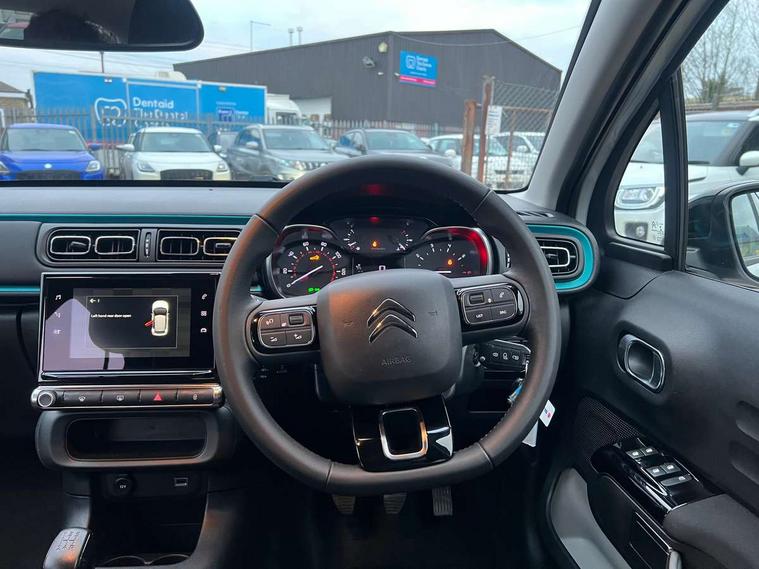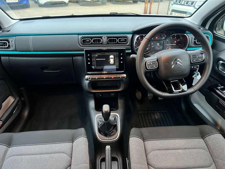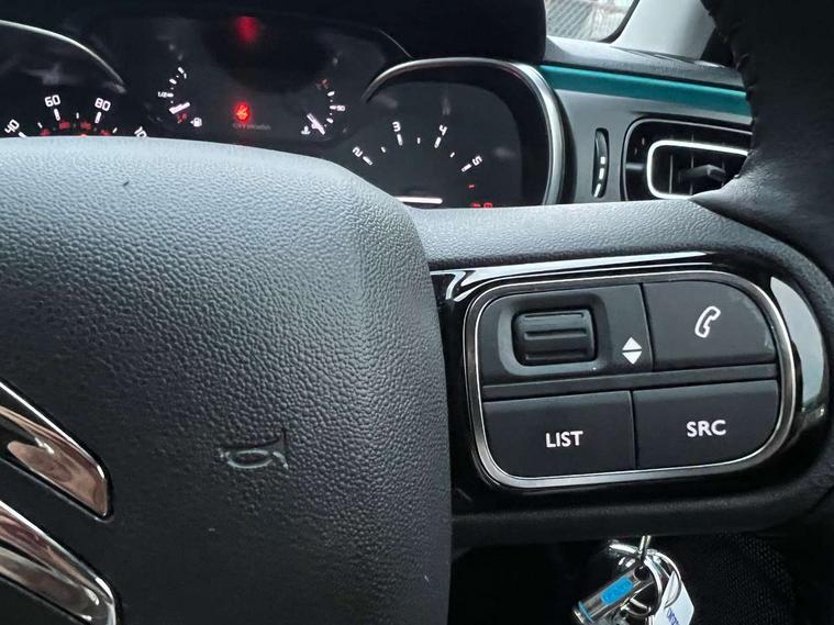 Citroen connect box emergency and assistance system, Citroen connected nav with DAB, 6 speakers, 7" captive touch screen, mirror screen includes apple carplay/android auto and bluetooth, Coffee Break Alert, Cruise control + speed limiter, eCall emergency call system, Exterior temperature display, Multi function trip computer, Reversing camera, Satin chrome surround instrument cluster with white LCD and analogue gauges, Variable assistance power steering, USB connection, 3D rear light signature, Airbump on side door panel, Auto dimming electrochrome rear view mirror, Auto headlights, Automatic activation of hazard warning lights, Body colour bumpers, Body colour door handles, Chrome decoration on front face, under chevrons and around daytime running lights, Citroen illuminated signature in LED headlights and LED daytime running lights, Dark tinted tailgate and rear side windows, Electric folding and heated door mirrors, Fog lights integrated into front bumper, Front sequential electric windows with one-touch open/close and anti-pinch system, Gloss black finish B pillar, LED Headlights, LED third brake light, Rear sequential electric windows with one-touch open/close and anti-pinch system, Rear side wing doors, Rear windscreen wiper with intermittent mode linked to vehicle speed and automatic activation when reverse gear selected, Roof colour rear view mirror caps, Variable front intermittent wipers, 1/3 to 2/3 split folding rear seat, 12V socket, 3 seat bench in 2nd row, Automatic air conditioning, Boot light, Cloth/leather effect upholstery, Driver and passenger's sun visor with courtesy mirror, Driver's central armrest, Driver's seat height adjustment, Front lighting panel with map reading lights, Front seats adjustable with forward back slide and adjustable backrest, Height adjustable front head restraints, Height/reach adjust steering wheel, ISOFIX mounting on outer rear seats with top tether and labels indicating fixing points, Leather steering wheel with gloss black + satin chrome elements and audio/telephone controls, Leather trimmed gear lever with leather effect gaiter and overstitching, Map pockets in back of driver and front passenger seats, Parcel shelf, Seatbelt unfastened on the move audible and visual alert for front and rear seats, Single front passenger seat, Storage space under touchscreen with rubber mat, Three rear headrests, Upholstered armrest in front and rear doors, Safety pack 1 - C3, Safety pack 2 - C3, Visibility pack with automatic lights - C3, ABS with Electronic brakeforce distribution and Emergency braking assistance, Driver and front passenger seatbelts with pyrotechnic pretensioners and force limiters, Driver's airbag, Electric child locks, ESP with anti skid system, Front passenger airbag, Front passenger airbag deactivation, Front side airbags + front/rear curtain airbags, Hill start assist, Manual parking brake with leather handle and chrome finish button, Mono-tone horn, Outer rear seats with pretensioners and force limiters, Three rear 3-point seatbelts, Tyre pressure monitoring system, Anti theft alarm, Automatic door and boot locking when moving off with automatic unlocking in case of impact, Central locking with locked indicator and interior one touch lock button, Immobiliser, Remote control central locking with two plip keys, 17" Vector diamond cut alloy wheels, Tyre puncture repair kit,