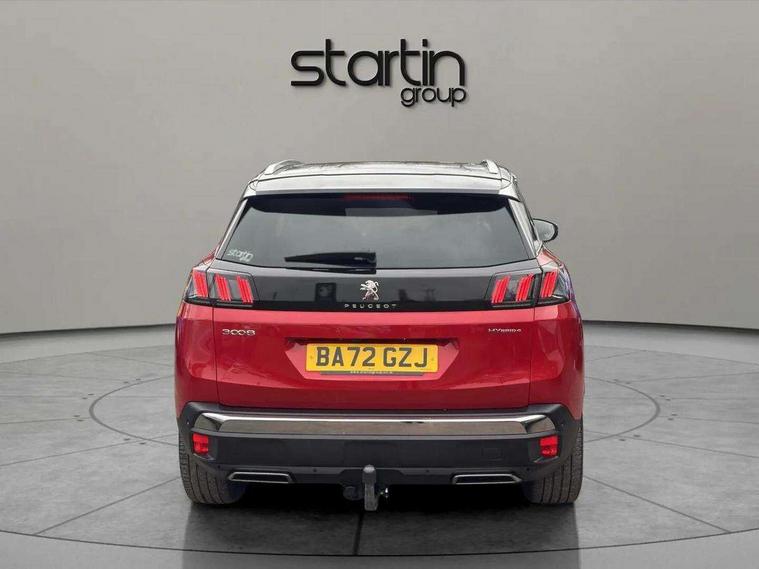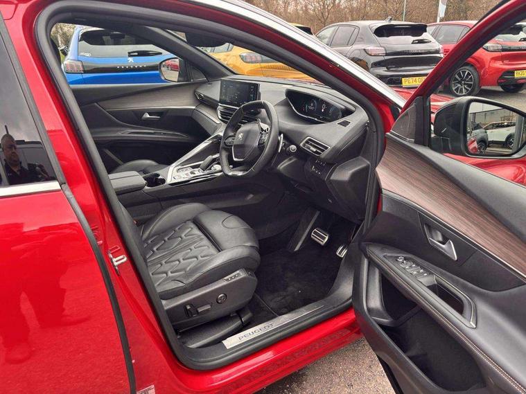 3D connected navigation with 10" HD touchscreen + voice recognition system, Apple car play and Android auto, Bluetooth telephone facility, Drive mode selector (Electric, Hybrid, Sport, 4WD) & Hill Assist Descent Control, Driving Time Warning (DAA1), Emergency services call system, Extended traffic sign recognition, Exterior temperature indicator with ice warning, Front and rear parking sensors, Lane departure warning system, Mirror screen with mirror link, apple carplay and android auto, Multi function trip computer, Peugeot i-cockpit with compact multi-function sports steering wheel, PEUGEOT i-Cockpit with configurable 12.3" Head-up digital instrument panel, PEUGEOT SOS and assistance, Rear passenger USB charging sockets (x2) (type A), Speed limit recognition and recommendation, Deferred charging option, configurable in car or via My PEUGEOT App, Dynamic stability control and electronic anti-skid system, Mode 3 type 2 cable for wallbox charging, DAB Digital radio, USB socket, Auto self levelling headlights, Automatic hazard light activation upon heavy brake application, Automatic triggered rear windscreen wiper in reverse gear, Black with chrome detailed front wing trim, Body colour door handles, Body colour rear roof spoiler with stainless steel edging trim, Body protectors (bottom of front and rear bumpers + wheel arches + protection at bottom of doors) in black, Dark tinted rear side windows + tailgate window, Diamond Black door mirror shells, Door mirror mounted LED courtesy floor lighting, Electric folding door mirrors with exterior courtesy LED lighting, Electric operated/heated door mirrors, Fog Mode, Front windscreen wiper with magic wash cleaning system, Full LED headlights with LED fog lights with static cornering function, Gloss black B and C pillar and aerodynamic deflector trim, Gloss black front bumper air scoops, Gloss black rear cluster connecting strip, Gloss black windscreen trim, Headlights left on audible warning, Heated rear windscreen with integrated antenna, HYBRID4 emblem on front wings and tailgate, LED daytime running lights, LED front indicator, LED rear number plate lighting, LED side indicator lights integrated into door mirrors, LED third brake light, One touch electric front/rear windows with pinch protection, Rear LED Peugeot signature 'Claw Effect' lights, Rear side wing doors, Stainless steel roof arches, Twin exhaust tailpipe, 1/3 to 2/3 split folding rear seats, 12V Sockets in dashboard, rear cabin and load area, 2 cupholders in front centre console, 2 cupholders in rear armrest, 2 x Rear reading spotlights, 2x Rear coat hooks, 3x Isofix child seat fittings in the front passenger and outer rear seats, 4 Grab handles retractable and damped, Aikinite stitching in armrest, gear lever and dashboard facia, Aluminium pedals, Blue ambient lighting for connecting zone, Blue ambient lighting to front door panels, central storage and cupholders, Blue ambient lighting to headup instrument panel, Cabin pre-conditioning, Centre front armrest with butterfly wing opening and illuminated storage compartment, Driver seat manual adjustment (longitudinal and back rest angle), Dual zone automatic climate control, Electric power steering with reach and rake adjustable steering column, Fixed boot floor with access to the charging cable storage box, Flocked front door pocket interior with blue ambient lighting, Flocked glovebox interior, Foldable front passenger seat with picnic table, Footwell illumination, Front interior light with 2 reading spotlights and rear interior light with timer, Front passenger seat manual adjustment (longitudinal and back rest angle), Front seat back map pockets, Gear shift indicator, Illuminated glovebox, Individual left and right controls in boot for seat folding, LED interior lighting in storage spaces and load area, LED roof interior lighting, Mistral floor mats with Aikinite contrast stitching, Mistral full grain perforated leather steering wheel with aikinite stitch detail and satin chrome 'GT' emblem, Rear bench seat with central armrest and ski hatch, Rear centre console ventilation system, Roof lining - Mistral black, Satin chrome dashboard trim, Satin chrome digital instrument panel and touchscreen trim, Satin chrome front door panel recess trim, Satin chrome interior door handles, Satin chrome scorpion's tail and toggle switch trim, Seatbelt not fastened audible and visual alert for front seats, Seatbelt unfastened on the move audible and visual alert for front and rear seats, Sunvisors with illuminated vanity mirrors, Drive assist plus pack - 3008, Visibility pack - 3008 PHEV, 3x Rear three-point retractable seatbelts with force limiters in the outer rear seats, ABS (Anti-lock Braking System) with EBD (Electronic Brakeforce Distribution) and EBA (Emergency Braking Assistance), Acoustic vehicle alerting system, Adaptive driver and front passenger airbags with passenger airbag deactivation function, Driver and front passenger side airbags, Electric child locking functionality on rear windows and doors, Electric parking brake, Front and rear curtain airbags, Front optimised safety headrests and 3 x rear retractable headrests with height adjustable, Front three point retractable seatbelts with pre tensioners and force limiters, Front ventilated disc brakes and rear disc brakes, Hill start assist, Two tone horn, Automatic door locking when moving off, Electronic immobiliser, key operated exterior door lock from the left hand door, Perimetric and volumetric alarm with lift and tilt sensor, Peugeot Open and Go System, Remote control central locking with two plip keys, Puncture repair kit including compressor, sealant cartridge and towing eye,