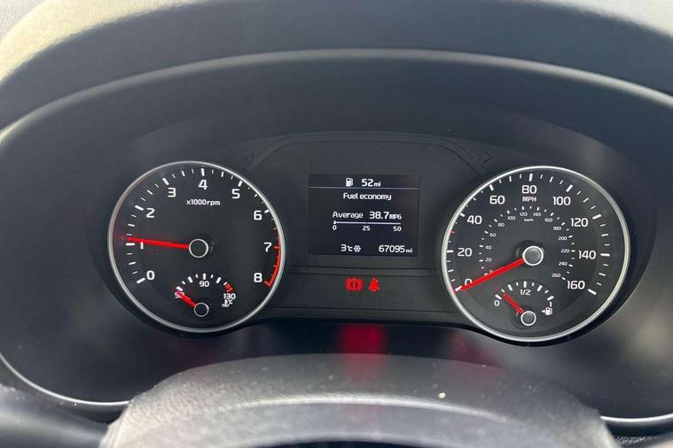 3.5" supervision cluster display, 7" colour touchscreen audio display, Android auto with voice control, Apple car play with voice control, Bluetooth connectivity with voice control, Cruise control, Digital clock, Emergency stop signalling system, Reversing camera, Speed sensitive power steering, Trip computer, Windscreen washer level indicator, Intelligent Stop and Go, 6 speaker audio system, Bluetooth audio streaming, DAB Radio with MP3, Steering wheel mounted audio controls, USB/iPod/auxiliary input connections, All round electric windows with drivers auto down function, Automatic headlights, Bi-Function halogen headlights, Black diamond mesh radiator grille, Black side sill and wheel arch body mouldings, Body colour door handles, Body colour door mirrors, Chrome grille surround, Chrome window surround, Cornering light, Electrically adjustable door mirrors, Front fog lights, Headlamp levelling, High gloss black front bumper strip, LED daytime running lights, Rear spoiler, Rear wiper, Shark fin antenna, Speed sensitive front wipers, Tinted glass, Trailer stability assist, 12V power in front and rear centre console, 3 x passenger assist grips, 60/40 split folding rear seat, Air conditioning, Air filter, All-round height adjustable headrests, Centre cabin light, Centre console storage box, Cloth upholstery, Driver and front passenger side sunvisors with illuminated vanity mirrors, Driver's seat manual height adjust, Front and rear door storage, Front cabin LED map light with sunglasses case, Front door courtesy reflectors, Front seat and rear pockets, Front/rear centre armrests, Gear shift indicator, Glovebox illumination, Ignition key lock illumination, Illuminated glovebox, Interior door lock/unlock function, ISOFIX Child seat top tethers and anchor fixings, Leather steering wheel, Leather trimmed gearshift, Light grey headlining, Luggage area light, Luggage area load cover, Luggage net with hooks, Metallic finish inner door handles, Rear centre armrest with cupholder, Rear coat hooks, Rear headrests, Tilt/telescopic adjustable steering wheel, Ventilation ducts to rear compartment, 3x3 point rear seatbelts, Active front headrests, All round 3-point seatbelts, Anti-lock braking system with electronic brakeforce distribution, Dual front side airbags, Electronic stability control with downhill brake control, ESP + traction control, Front passenger airbag cut-off switch, Front seatbelt pretensioners + load limiters, Height adjustable front seatbelts, Hill start assist control (HAC), Impact sensing auto door unlocking, Rear door child safety locks, Twin curtain airbags with roll over sensor, Twin front airbags, Tyre pressure monitoring system, Advanced anti-theft system including immobiliser and alarm, Door deadlocks, Locking wheel nuts, Remote central door locking with fold away key, Speed sensitive auto door locking, Visible vehicle identification number, Metallic finish centre fascia, 16" alloy wheels, Tyre mobility system,