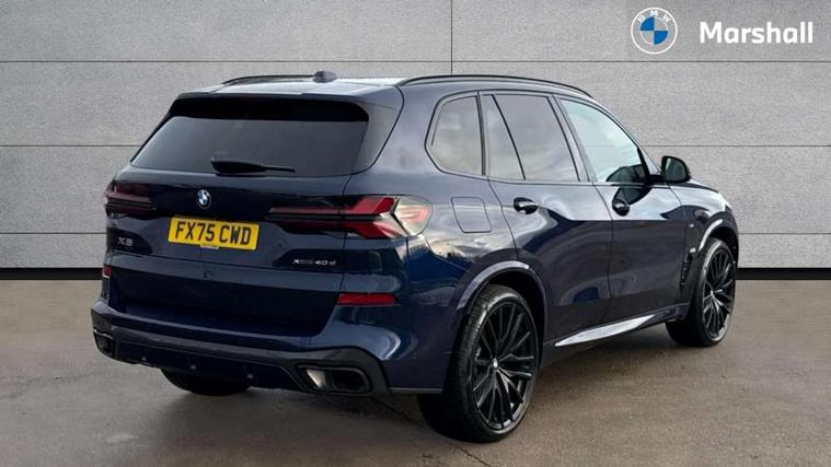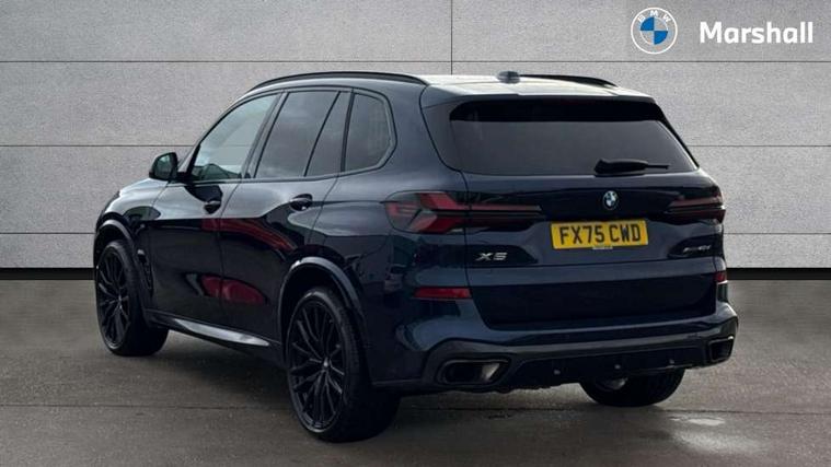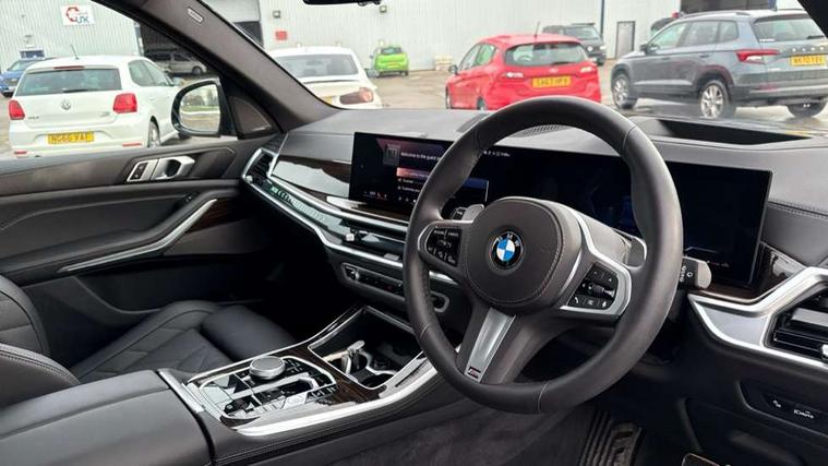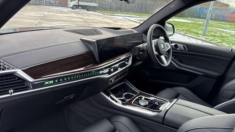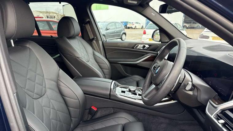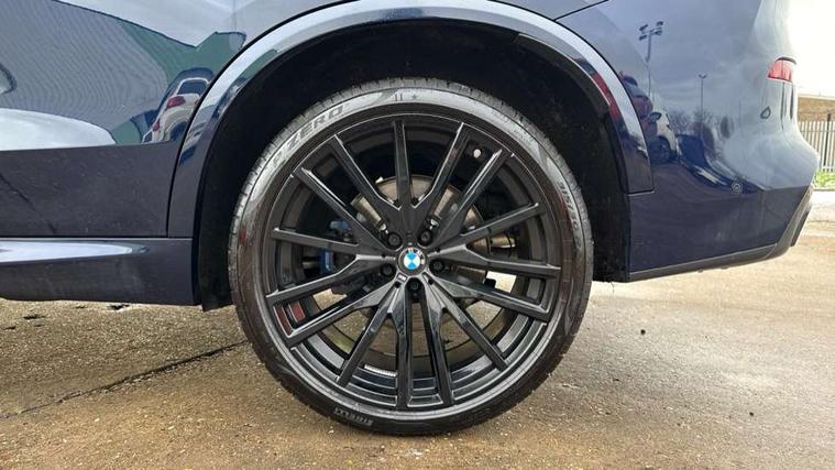 Attentiveness assist, Automatic tailgate operation, BMW ConnectedDrive online services, BMW live cockpit + with curved 12.3 instrument cluster/14.9 central display, nav/Tuner with diversity reception, RDS/4GLTE/remote software upgrade, BMW Recovery system, BMW Teleservices, Condition based service, Cruise control with brake assist, eCall emergency call system, Enhanced bluetooth with wireless charging, Integrated owner's handbook, PAS, Speed limiter, Wi-Fi hotspot, Drive performance control with ECO PRO comfort + sport mode, Eight speed steptronic sport automatic transmission and gearshift paddles on the steering wheel, Adaptive LED Headlights, Front and rear electric windows, High beam assistant, High gloss black shadow line roof rails, LED daytime running lights, Rain sensor, Rear side wing doors, Third brake light in rear spoiler, Variable intermittent rear wash/wipe, 12V - Power sockets with 2x centre console and 1x luggage compartment, 3 seat bench in 2nd row, Entry sills illuminated BMW inscription front and rear, Foldable rear centre armrest with 2 cupholders and storage compartment, Front and rear side armrest integrated into door trim, Grab handles in 1st and 2nd row of seats with Integrated in headliner, at rear with coat hooks, plastic, Headrests for all seats, Luggage compartment separating net, Lumbar support with height and depth adjustment in backrest, Single front passenger seat, Sunvisors with illuminated vanity mirrors and ticket pocket, Three spoke sport M leather steering wheel, Velour floormats, Ambient light interior pack - X5, Driving assistant pack with radar based driver assistance system - X5, Expanded exterior mirror pack - X5/X5 M, M aerodynamics pack - X5, Parking assistant pack - X5, 3 rear seatbelts, Active protection, Airbags - driver/front passenger, rear and side, first and second row seats head airbags, front passenger seat airbag deactivation + knee airbag, Anti-lock braking system (ABS), Automatic Stability Control (ASC), Brake energy regeneration, Cornering brake control (CBC), Crash sensor activating central locking release, hazard warning lights, fuel cut off, interior lighting + activation of safety battery terminal clamp, DSC - Dynamic Stability Control, Dynamic Traction Control - DTC, Electromechanical parking brake with automatic drive away release and auto hold function, Electronic brake force distribution, Hill start assistant, M Sport blue painted brake calipers with 'M' designation, Mechanical child proof lock on rear doors, Tyre pressure monitoring system, Tyre pressure sensors, Ventilated front and rear disc brakes, Warning triangle and first aid kit, Alarm system, Closing system with central locking, Comfort access system, Locking wheel bolts,