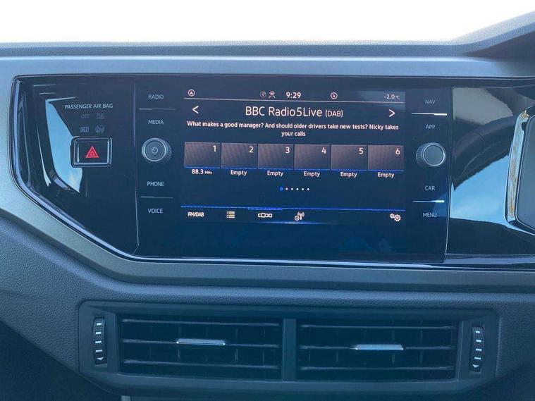 Cruise control + speed limiter, Digital clock, Driver alert system, Emergency call service, Multifunction computer plus, Power assisted speed sensitive steering, Speedo and rev counter, electronic odometer, trip, service interval display and fuel gauge, Start/stop system, Volkswagen connect, Warning buzzer and light for front seatbelts unfastened, Wireless app connect, Battery regeneration during braking, Galvanished body, Diversity antenna for FM reception, Front and rear 6 speakers, Black grille with chrome surround, Black radiator grille with chrome louvres, Body colour bumpers, Body colour door handles, Body colour rear spoiler, Body coloured side sills, Electric front windows, Electrically adjustable and heated door mirrors with reverse activated kerb view adjustment on passenger's side, Front windscreen washers and wipers with 4 speed intermittent delay, Heated rear window with auto timer, High level 3rd brake light, LED daytime running lights, LED rear number plate lights, Rear electric windows, Rear windscreen washer and wiper with interval delay, reverse activated, 2 bag hooks in luggage compartment, 2 front and 2 rear reading lights, 2 front cupholders and 12 V socket with cover, 3 rear head restraints, 4 grab handles, 60/40 split folding rear seat, Centre console storage with open storage compartment, Chrome interior door handles, Driver and front passenger seat height adjustment, Driver and front passenger sunvisors with illuminated vanity mirrors, Dust/pollen filter, Folding rear seat backrest, Front head restraints, Front seat backrest storage pockets, Gear lever gaiter in black trim surround, Glovebox, Handbrake grip button in chrome effect, Height/reach adjustable steering column, Instrument lighting, adjustable panel illumination, Interior light with delay, Isofix Preparation 2 Rear child seats, Leather gear knob and handbrake grip, Leather multifunction steering wheel, Luggage compartment cover, removable, Luggage compartment lighting, Luggage compartment with variable load floor, Storage compartment in front doors, Storage compartment in rear doors, Storage compartment under front seats, Sunglasses holder, 3 point height adj front seatbelts + pretensioners, 3x3 point rear seatbelts, ABS, Automatic post collision braking, Driver/front passenger airbag, Drivers and front passengers safety optimised head restraints, ESP with EDL + ASR, Front and rear passenger curtain airbags, Front disc brakes and rear drum brakes, Front passenger airbag deactivation, Front seat side impact airbags, Hill hold control, Hydraulic Brake Assist (HBA), Single tone horn, Tyre pressure monitoring system, Alarm with interior protection and deactivation via infotainment system, Electronic engine immobiliser, Remote central locking with 2 remote folding keys, Air vents in High gloss black, Limestone grey decorative inserts,