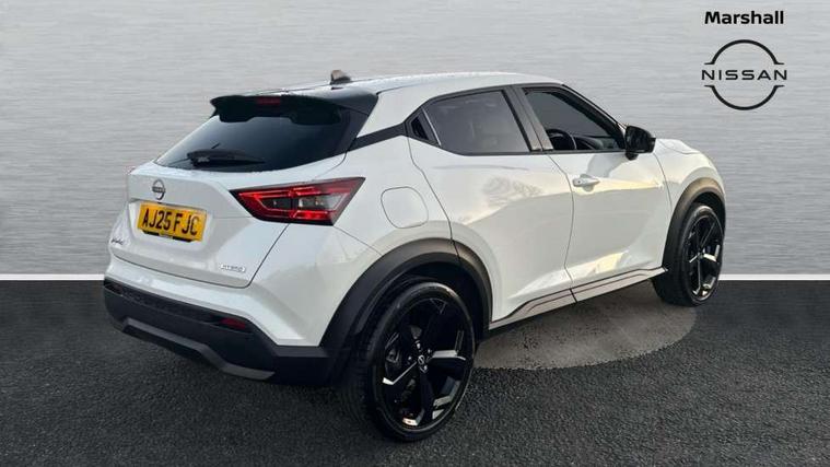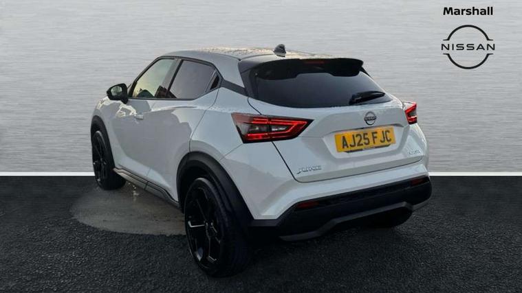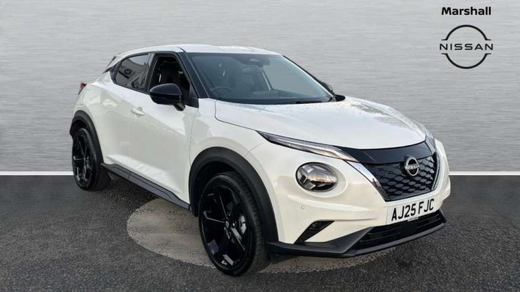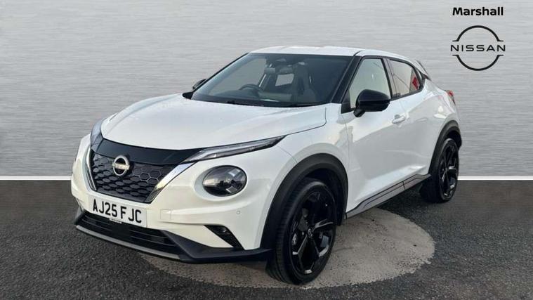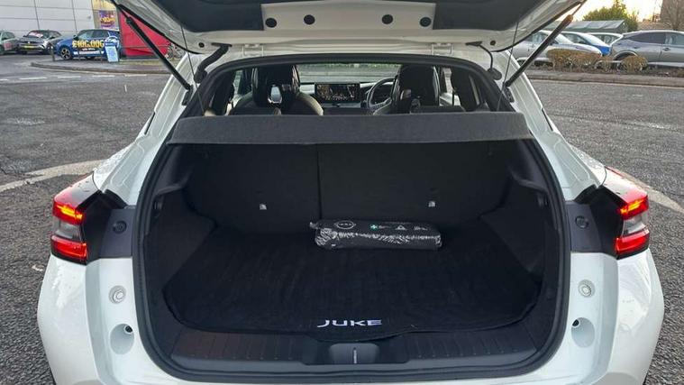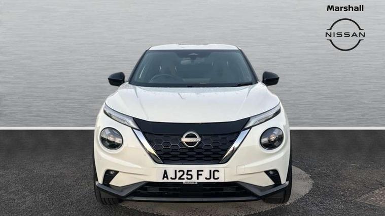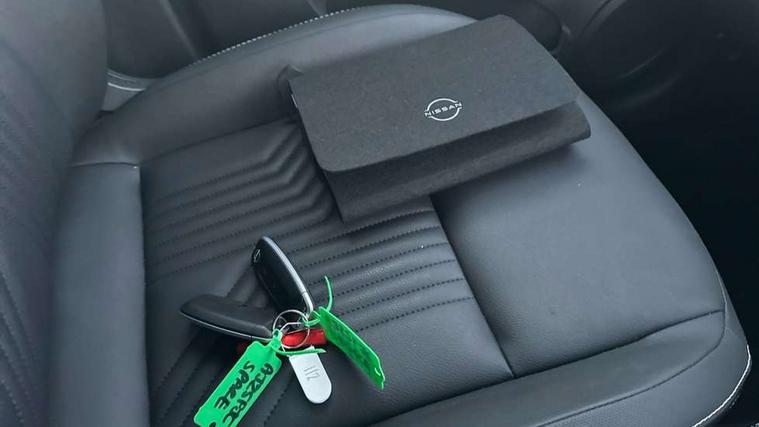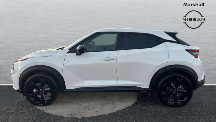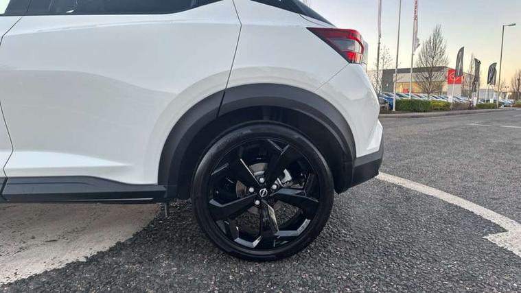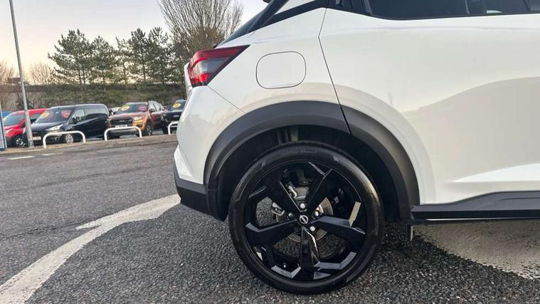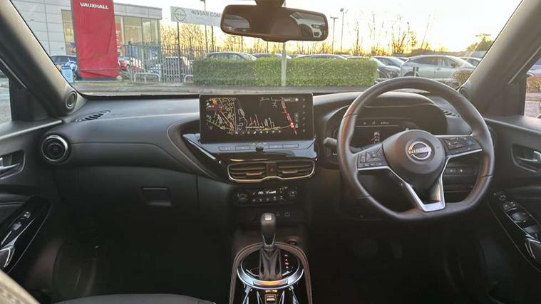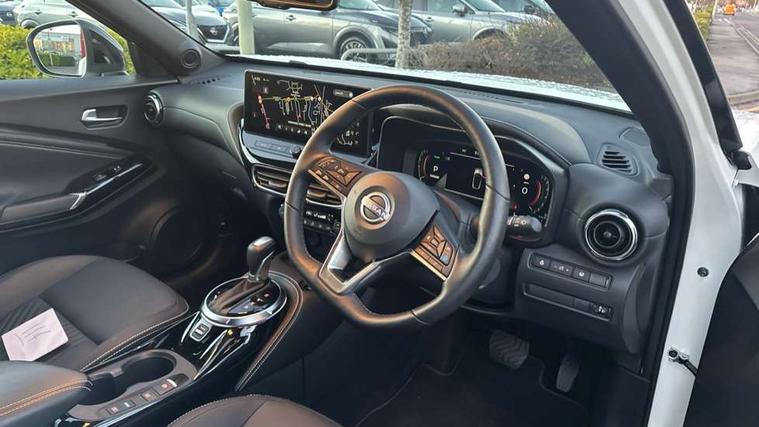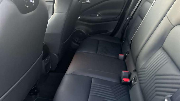 12.3" full colour TFT screen combimeter, Drive modes select (Eco, normal and sport), e-Pedal step, Emergency and breakdown call, EV mode switch, Front parking sensor, Intelligent driver alert system, Intelligent lane intervention, Lane departure warning system, Nissan connect 12.3" touch screen entertainment system, Nissan connect nav with TomTom traffic, Nissan connect services, Outside temperature sensor, Power Steering, Rear parking sensor, Stop/start button, Traffic sign recognition, Trip computer, Voice recognition, WiFi connectivity, Wireless Apple CarPlay and Google Android auto, Wireless Smartphone charger, 10 Bose speakers 8 speakers and 2 headrest speakers for driver/passenger seats, 2 X Rear console USB port, Bluetooth system, USB, Aux-in and 12V socket, Bose personal plus audio system, DAB Digital radio, Auto dimming frameless rear view mirror, Automatic hazard signal with emergency stop signal, Body colour door handles, Electrically adjustable door mirrors with integrated indicators, Follow me home headlights, Front and rear electric window with one touch driver window, High beam assist, LED 3rd brake light, LED daytime running lights, LED front fog lights, LED headlamps, LED rear fog lamp, LED rear lamps, One touch passenger window, Rear privacy glass, Rear side wing doors, Rear wiper, Roof spoiler, Shark fin roof antenna in solid Black, Solid black door mirrors, Three blink turn signal, 3 height adjustable rear headrests, 3 seat bench in 2nd row, 60/40 split folding rear seat, Card holder on driver sunvisor, Door ambient lighting, Driver seat back pocket, Driver side rear coat hanger, Driver/passenger sunvisors and vanity mirrors, Front and rear cabin lights, Front armrest, Front door pockets with bottle holders, Front head restraints, Front/rear passenger grab handles, Gear console ambient circle lighting, Height adjustable driver's seat, Internal chrome door handles, Luggage board, Luggage space lighting, Monoform sporty seats, Multifunction steering wheel, Passenger seat back pocket, Rear door bottle holders, Single front passenger seat, Smooth synthetic leather steering wheel, Synthetic leather kneepad, Synthetic leather shift knob, Synthetic leather upholstery, Telescopic steering wheel adjustment, Two cupholders in front centre console, Two rear isofix child seat anchorage points with top tether, Welcome light and console tray ambient lighting, Comfort pack - Juke, Heat pack with height adjustable passenger seats - Juke, ProPilot pack - Juke Auto, ABS with EBD and brake assist, Active ride control, Active Trace Control, Driver and passenger airbags, Driver and passenger side airbags, Electric handbrake with auto hold function, Electronic Stability Programme (ESP), Front and rear curtain airbags, Height adjustable seatbelts, Hill start assist, Intelligent emergency braking with pedestrian and cyclist recognition, Rear door child safety locks, Seatbelt reminder for driver/front passenger and rear seats, Three 3 point rear seatbelts, Traction control, Tyre pressure monitoring system, VDC Dynamic Vehicle Control, Alarm, Immobiliser, Intelligent key and start push button with walk away lock and approach unlock functions, Remote central locking, 19" Alloy wheels, Tyre puncture repair kit,