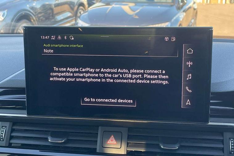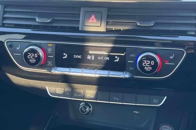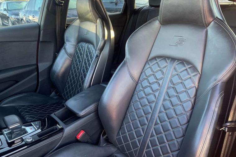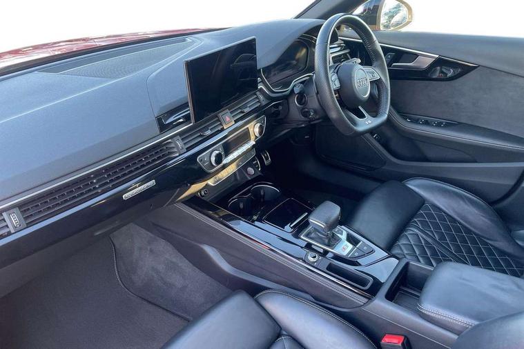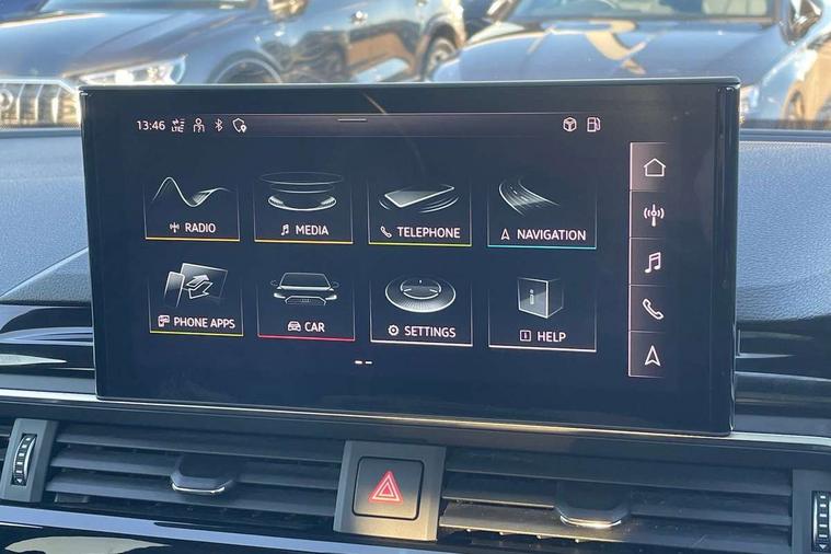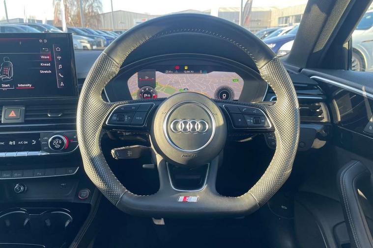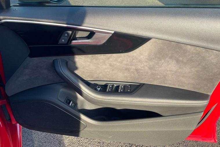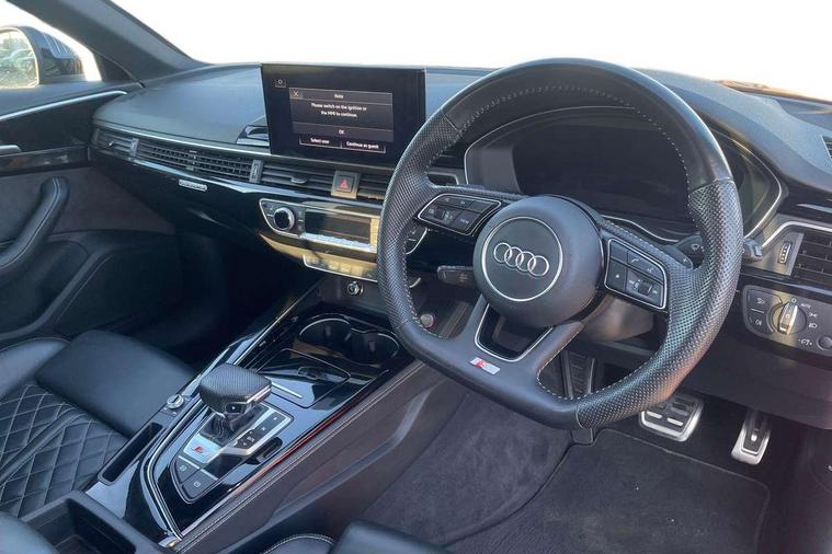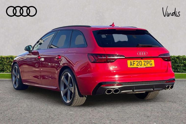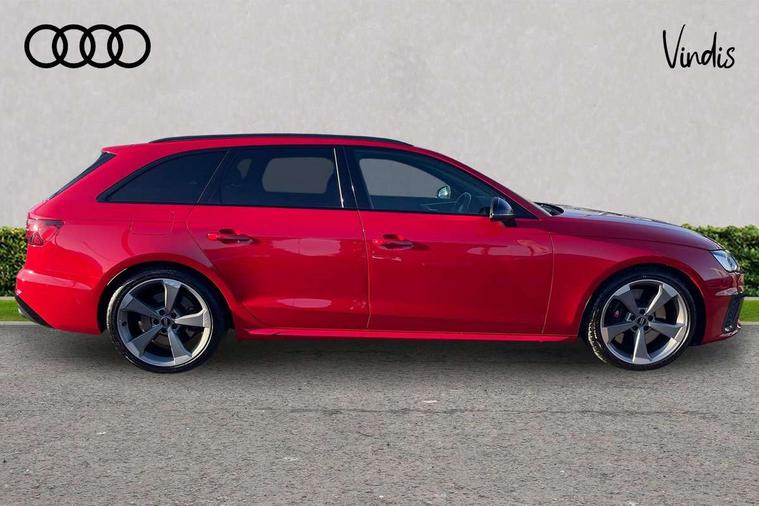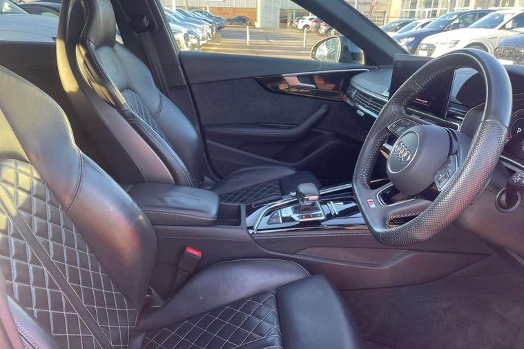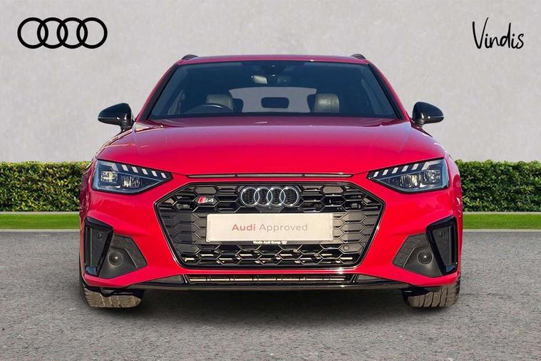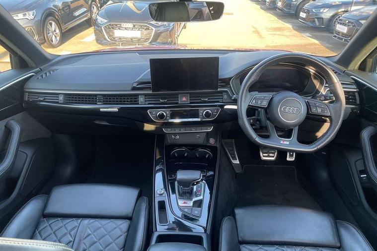 Audi connect safety and service (e-call), Audi drive select, Audi parking system plus with front and rear sensors, Audi phone box with wireless charging, Audi smartphone interface, Audi virtual cockpit, Automatic start-stop system with coasting functionality and efficiency programme, Bluetooth interface, Electromechanical power steering, MMI Navigation plus with MMI touch includes 10.1" high resolution colour MMI display, 3D map, Power operated tailgate, Rear view camera, S instrument dials, Voice control system, 58 Litre fuel tank, S sports suspension, 2 USB charging ports, Audi sound system with 10 loudspeakers, DAB digital radio reception, Aluminium roof rails, Audi Beam uses LEDs to project the Audi Sport logo, Auto dimming rear view mirror, Body colour door handles, Body colour front spoiler lip, Body colour side sill trim, Electrically folding auto dimming/adjustable/heated door mirrors with LED side indicators and kerb view function for passenger side, High beam assistant, LED headlights with LED rear lights + dynamic rear indicators + headlight adjustment and high beam, turning light + LED daytime running lights, New design rear diffuser, Privacy glass, Rain and light sensors, S line front and rear bumpers with side skirts, S Line roof edge spoiler, S specific dual branch chrome tailpipes with twin oval pipes on left and right, S specific side air inlets in titan black with chrome inlays in unique S design, S Style rear spoiler, Windscreen with acoustic glazing, 3 spoke flat bottomed high multi-function leather steering wheel with chrome clip, 40/20/40 split folding 3 rear seat bench in 3 parts with rear centre armrest, Black cloth headlining, Black leather gear lever knob, Contrast stitching on seats, steering wheel and gear lever gaiter, Deluxe 3 zone electronic climate control, Door sill trims with aluminium inlay, Electric load area cover, Fine nappa leather upholstery with S embossed logo + super sports seats, Front and rear head restraints, Front centre armrest, Gear lever with diamond S badge, Heated front seats, Illuminated door sill trims with S logo, ISOFIX child seat mounting and top tether, Key with S4 logo, Pneumatically adjustable lumbar support with massage function, Stainless steel pedals and foot rest, Tool kit, Extended Interior Upholstery Pack - A4/S4, Extended leather pack - A4/S4, LED Interior light pack - A4/S4, Titanium black styling pack - A4 Avant, 3 rear seatbelts, 6 airbags - Driver, front passenger, curtain and side windows, Electronic Stabilisation Control (ESC) including ABS, ASR and EDL, Front brake calipers painted in black with S4 logo, Hill hold assist, Multi collision brake assist, Pop-up bonnet for pedestrian protection, Pre sense city, S model enhanced braking system, Seatbelt monitoring, Warning triangle and first aid kit, Anti theft alarm, Anti theft wheel bolts, Keyless Go, 19" 5 arm rotor design alloy wheels titanium matt look, Tyre repair kit,
