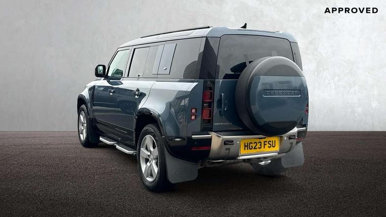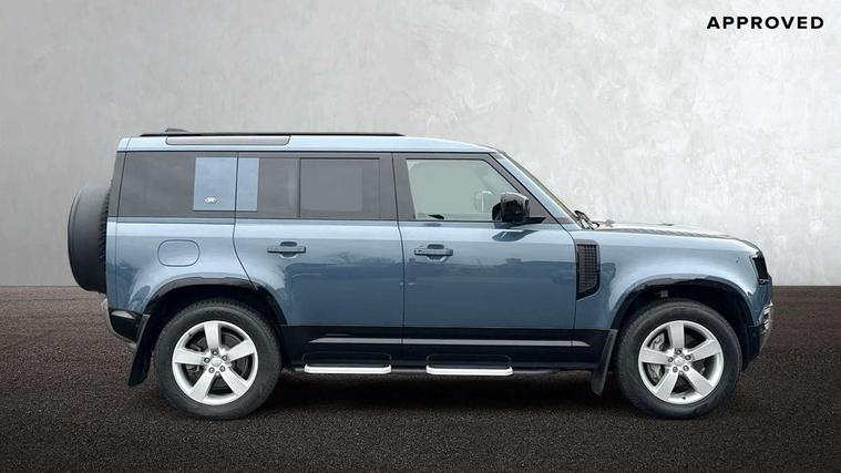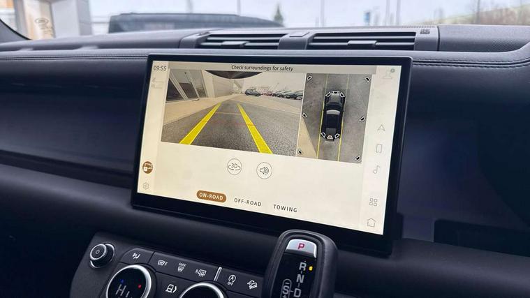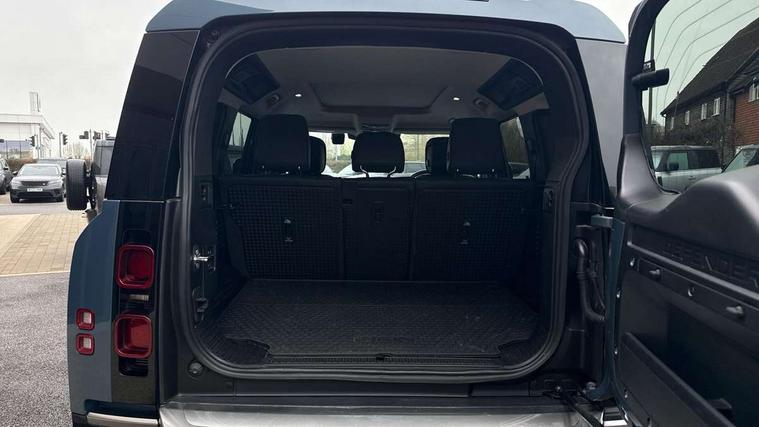 11.4" touchscreen, 360 degree parking aid, 3D Surround Camera with 360 View, 180 Rear View, Front Traffic Detection, Forward Vehicle Guidance, Tow Hitch Assist and clear sight Ground View, Adaptive cruise control, Android Auto, Apple CarPlay, Assisted tailgate with soft close, Blind spot assist, Bluetooth system, Brake pad wear indicator, Clear exit monitor, Connected navigation pro, Driver condition monitor, Electric power assisted steering (EPAS), Lane keep assist, Push button start, Rear collision monitor, Rear traffic monitor, Traffic sign recognition with adaptive speed limiter, Trip computer, Wade Sensing, 8 speed automatic transmission, Adaptive dynamics, All wheel drive system, Electronic air suspension, Twin speed transfer box, DAB Radio (Digital Audio Broadcasting), Pivi pro connected, Automatic headlight levelling, Automatic headlights, Black roof rails, Centre high mounted stop light, Electric heated/power fold door mirrors with approach lights and auto dimming driver side, Electric windows with one touch open/close and anti-trap, Follow me home lighting, Front fog lights, Heated rear window with timer, Heated windscreen, LED tail lights, Puddle lights, Rain sensing windscreen wipers, Rear fog lights, Rear side wing doors, Rear wiper, Side hinged tailgate, Sliding panoramic roof, Standard treadplates, Trailer stability assist, 12V power socket in loadspace, 14 way heated and cooled electric adjustable memory front seats with 4 way manual headrests, 3 seat bench in 2nd row, Air quality sensor, Alpine lights, Cabin Air Purification plus, Durable rubber cabin flooring, Durable rubber loadspace flooring, Electric cabin pre conditioning, Electric reach + rake adjustable steering column, Extended leather upgrade, Footwell lights, Front passenger isofix child seat attachment, Heated steering wheel, Loadspace cover, Loadspace Hook, Multifunction steering wheel, Overhead stowage for sunglasses, Premium cabin lighting, Rear headrests, Rear ISOFIX, Rear reading lights, Single front passenger seat, Standard seat configuration, Storage glovebox, Sunvisors with illuminated vanity mirrors, Twin front cupholders with cover, Non-smoker package, Online pack with data plan - Defender, 5 x 3 point seatbelts, ABS, Brake hold function, Cornering brake control (CBC), Customer configurable autolock, DSC - Dynamic Stability Control, EBD - Electronic brakeforce distribution, Electric parking brake (EPB), Emergency brake assist, Emergency braking, ESP + traction control, Front airbags with passenger seat occupant detector, HDC - Hill descent control, Hill launch assist, Low traction launch, Power operated child locks, Remote for (e-Call, Optimised assistance call, InControl app, Climate, beep and flash and door), RSC - Roll stability control, Seat belt reminder, TPMS (Tyre pressure monitoring system), Alarm, Immobiliser, Intrusion sensor, Keyless entry, Locking wheel nuts, All season tyres, Body coloured spare wheel cover,