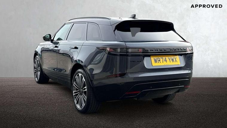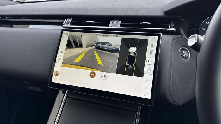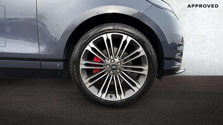 3D surround camera includes forward traffic detection and vehicle guidance, Android Auto, Apple CarPlay, Blind spot assist, Bluetooth connectivity, Brake pad wear indicator warning light, Driver condition monitor, eCall emergency call system, Front and rear parking aid, InControl remote, Land Rover InControl apps, Lane keep assist, Pivi pro with connected navigation, Rear traffic monitor, Service indicator, Speed proportional electronic power assisted steering (EPAS), Traffic sign recognition with adaptive speed limiter, Trip computer, Voice control system, Wade Sensing, Wireless device charging, 8 speed automatic transmission, All terrain progress control, Coil suspension system, Open differential with torque vectoring by braking, Single speed transfer box, DAB radio, Steering wheel mounted controls, 3rd brake light, Acoustic laminated windscreen, Auto dimming interior rear view mirror, Auto high beam assist, Automatic headlamp levelling, Automatic headlights, Body coloured bumpers, Boot protection plate, Electric windows with one touch open/close and anti trap, Flush deployable exterior door handles, Follow me home headlights, Heated rear window with timer, Heated washer jets, Heated windscreen, LED headlights with signature DRL, Metal front tread plates, Metal load space scuff plates, Power fold, auto-dimming, heated door mirrors with memory and approach lights, Rain sensor windscreen wipers, Rear animated directional indicators, Rear fog lights, Rear side wing doors, Rear wash/wipe, Tailgate/boot lid spoiler, Trailer stability assist, Velar badge, 14 way electrically adjustable front seats with driver's memory function, 3 seat bench in 2nd row, Ambient lighting, Bright metal pedals, Carpet mats, Driver/passenger sunvisors with illuminated vanity mirrors, Ebony morzine headlining, Electrically adjustable steering column, Heated steering wheel, Isofix system on outer rear seats, Loadspace cover, Overhead lighting console, Overhead stowage for sunglasses, Passive front headrests, Rear air vents, Rear centre headrest, Single front passenger seat, Twin front cupholders, Twin sliding front centre armrest, Online pack with data plan - Velar, Power socket pack 2 - Velar, 355mm Front and 325mm Rear brakes, 3x3 point rear seatbelts, Anti-lock braking system (ABS), Cornering brake control, Curtain airbags, Customer configurable autolock, Door side intrusion beams, Driver airbag, DSC - Dynamic Stability Control, Electronic brake force distribution, Electronic parking brake, Electronic traction control, Emergency braking, Front and rear seatbelt reminder, Hill descent control, Hill launch assist, Low traction launch, Passenger airbag, Power operated child locks, Rear airbags, Roll stability control, Side airbags, Tyre pressure monitoring system (TPMS), Global lock and unlock switch on driver door, Immobiliser, Intrusion sensor, Keyless entry, Lock only switch on front passenger door, Locking wheel nuts, Perimetric alarm, Remote central locking, All season tyres,
