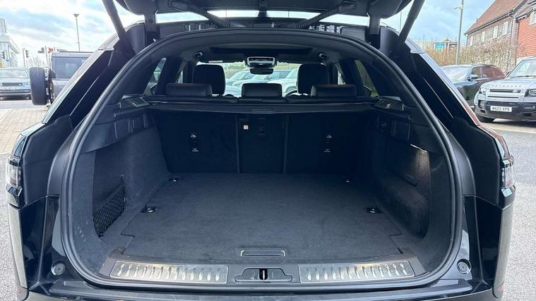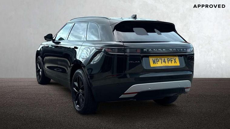3D surround camera includes forward traffic detection and vehicle guidance, Android Auto, Apple CarPlay, Bluetooth connectivity, Brake pad wear indicator warning light, Driver condition monitor, eCall emergency call system, Front and rear parking aid, InControl remote, Land Rover InControl apps, Lane keep assist, Pivi pro with connected navigation, Service indicator, Speed proportional electronic power assisted steering (EPAS), Traffic sign recognition with adaptive speed limiter, Trip computer, Voice control system, Wade Sensing, Wireless device charging, 7kw on board charger, 8 speed automatic transmission, AC/DC charging, Adaptive dynamics, All terrain progress control, Coil suspension system, Home charging cable, Open differential with torque vectoring by braking, Public charging cable, Single speed transfer box, DAB radio, Steering wheel mounted controls, 3rd brake light, Acoustic laminated windscreen, Auto dimming interior rear view mirror, Auto high beam assist, Automatic headlamp levelling, Automatic headlights, Body coloured bumpers, Boot protection plate, Electric windows with one touch open/close and anti trap, Flush deployable exterior door handles, Follow me home headlights, Heated rear window with timer, Heated washer jets, Heated windscreen, LED headlights with signature DRL, Metal front tread plates, Metal load space scuff plates, Power fold, auto-dimming, heated door mirrors with memory and approach lights, Rain sensor windscreen wipers, Rear animated directional indicators, Rear fog lights, Rear side wing doors, Rear wash/wipe, Tailgate/boot lid spoiler, Trailer stability assist, Velar badge, 14 way electrically adjustable front seats with driver's memory function, 3 seat bench in 2nd row, Ambient lighting, Carpet mats, Driver/passenger sunvisors with illuminated vanity mirrors, Ebony morzine headlining, Electrically adjustable steering column, Heated steering wheel, Isofix system on outer rear seats, Loadspace cover, Overhead lighting console, Overhead stowage for sunglasses, Passive front headrests, Rear air vents, Rear centre headrest, Single front passenger seat, Twin front cupholders, Twin sliding front centre armrest, Online pack with data plan - Velar, Power socket pack 2 - Velar, 380mm front brakes and 325mm rear brakes, 3x3 point rear seatbelts, Anti-lock braking system (ABS), Cornering brake control, Curtain airbags, Customer configurable autolock, Door side intrusion beams, Driver airbag, DSC - Dynamic Stability Control, Electronic brake force distribution, Electronic parking brake, Electronic traction control, Emergency braking, Front and rear seatbelt reminder, Hill descent control, Hill launch assist, Low traction launch, Passenger airbag, Power operated child locks, Rear airbags, Roll stability control, Side airbags, Tyre pressure monitoring system (TPMS), Global lock and unlock switch on driver door, Immobiliser, Intrusion sensor, Keyless entry, Lock only switch on front passenger door, Locking wheel nuts, Perimetric alarm, Remote central locking, All season tyres,