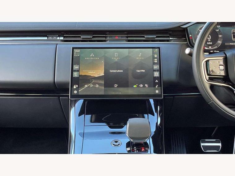 13.1" Touchscreen, 3D 360 degree surround camera with wade sensing, Adaptive cruise control with steering assist, Android Auto, Apple car play, Blind spot assist, Bluetooth connectivity streaming, Driver condition response, Eco mode, Electric power assisted steering (EPAS), Interactive Driver display instrument cluster, Lane departure warning system, Lane keep assist, Push button start, Rear collision monitor, Rear traffic monitor, Remote, Traffic sign recognition with adaptive speed limiter, Trip computer, Wireless device charging, 8 speed automatic transmission, Adaptive dynamics, All wheel drive system, Automatic access height, Dynamic air suspension, Terrain Response 2, DAB Radio (Digital Audio Broadcasting), Incontrol protect - SOS emergency call with automatic collision detection, optimised assistance call and Incontrol remote app essential, Pivi pro connected, USB/aux input socket, Adaptive brake lights, Automatic headlight levelling, Automatic headlights, Centre high mounted stop light, Electric heated/power fold memory door mirrors with approach lights and auto dimming driver side, Electric windows with one touch open/close and anti trap, Flush deployable exterior door handles, Follow me home lighting, Front and rear recovery eyes, Headlight power wash, Heated rear window, Heated washer jets, Heated windscreen, LED tail lights, Metal load space scuff plates, No badges, Rain sensing windscreen wipers, Rear animated directional indicators, Rear fog lights, Rear side wing doors, Rear wash/wipe, Remote window closing, Side repeater indicators in mirror, Trailer stability assist, Winter wiper park position, 3 seat bench in 2nd row, 60:40 seats with power recline and loadthrough, Air quality sensor, Auto air recirculation, Bright metal foot pedals, Centre console with armrest, Customer configurable single point entry, Driver's footrest, Easy boot loading, Ebony console door armrests and seatbelts, Electric adjustable steering column, Extended leather upgrade, Front and rear cupholders, Front door storage space, Front head restraints, Front map lights, Front seat back map pockets, Front stowage pocket, Front/rear passenger grab handles, Gearshift paddles, Heated steering wheel, Isofix child seat preparation, Loadspace cover, Loadspace Hook, Loadspace light, Loadspace mounting provisions, Lockable glovebox, Luggage tie-downs in loadspace, Multifunction steering wheel, Pollen filter, Power socket, Rear centre armrest, Rear head restraints, Rear ISOFIX, Single front passenger seat, Three 12V accessory power outlets, Upper secondary glovebox, Online pack with data plan - Range Rover Sport, 3 point seatbelts on all seats, Anti-lock braking system (ABS), Brake pre-fill technology, Configurable autolock, Cornering brake control (CBC), DSC - Dynamic Stability Control, EBD - Electronic brakeforce distribution, Electric parking brake, Electronic traction control, Emergency braking, Front seatbelt pretensioners, Front side airbags, Height adjustable front seatbelts, Hill descent control, Hill launch assist, Low traction launch, Occupant protection assist, Passenger seat occupant detector with front airbags, Power operated child locks, Roll stability control, Seatbelt warning, TPMS (Tyre pressure monitoring system), Immobiliser, Intrusion sensor, Keyless entry, Locking wheel nuts, Perimetric and volumetric anti theft alarm, Remote locking, Moonlight noble chrome interior finishers,