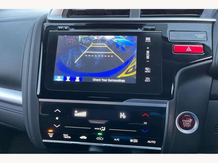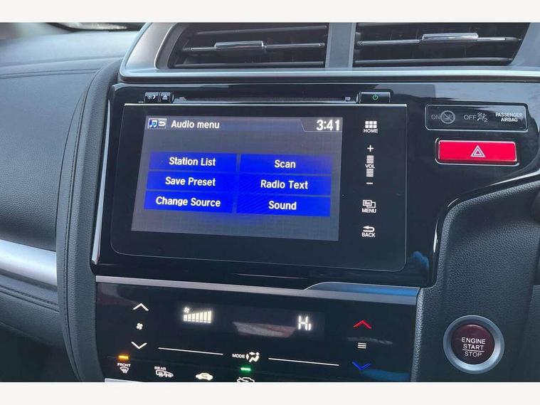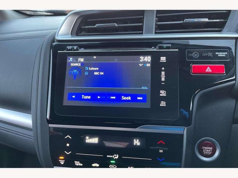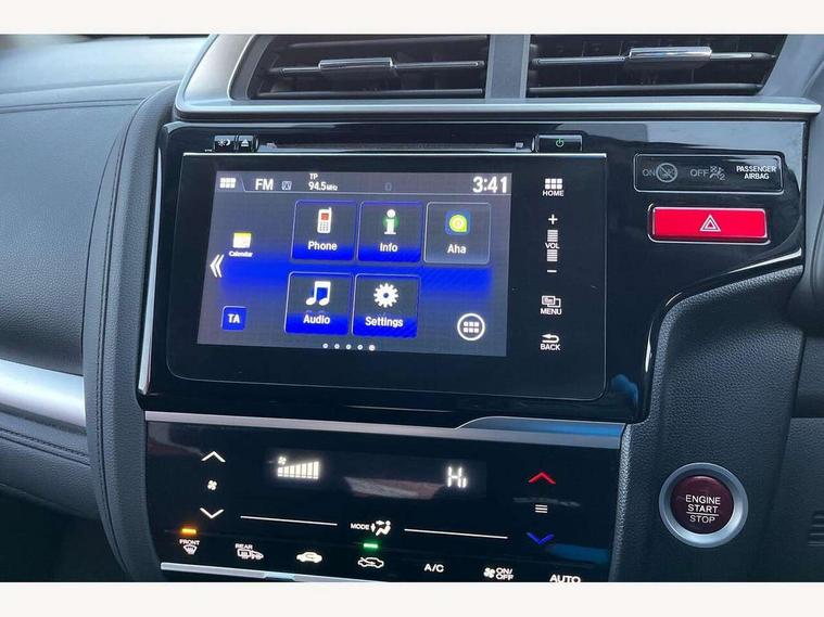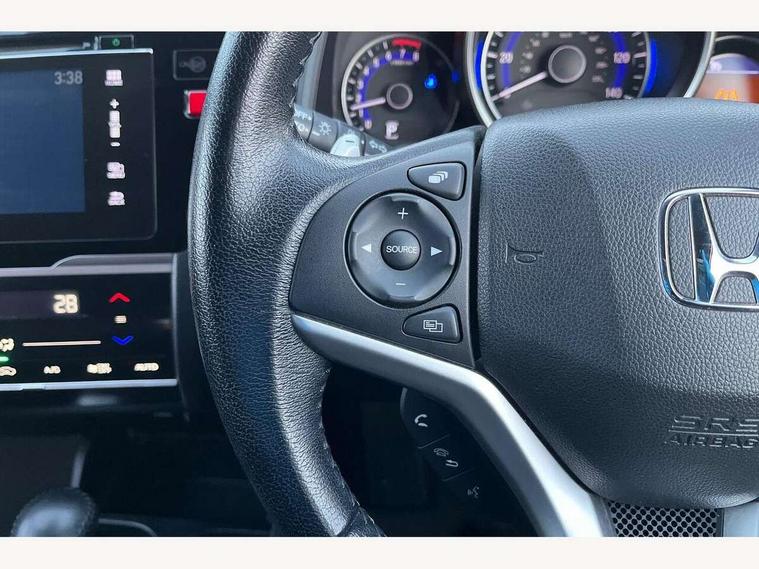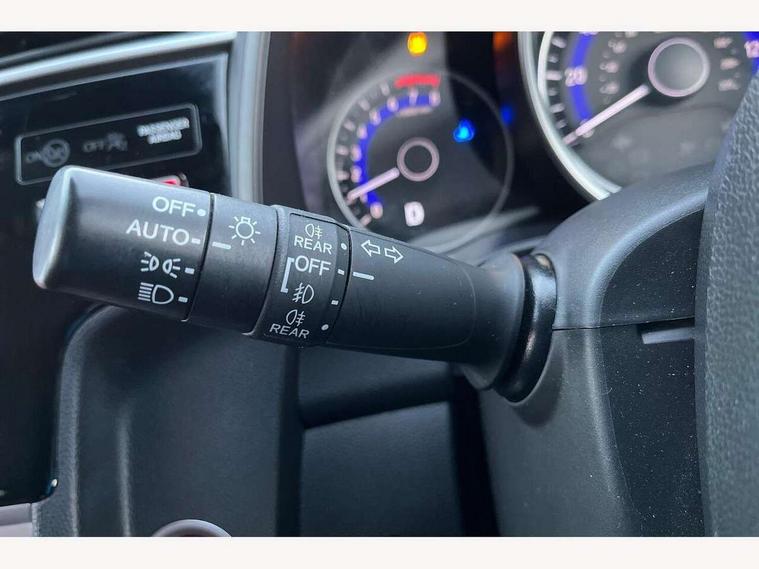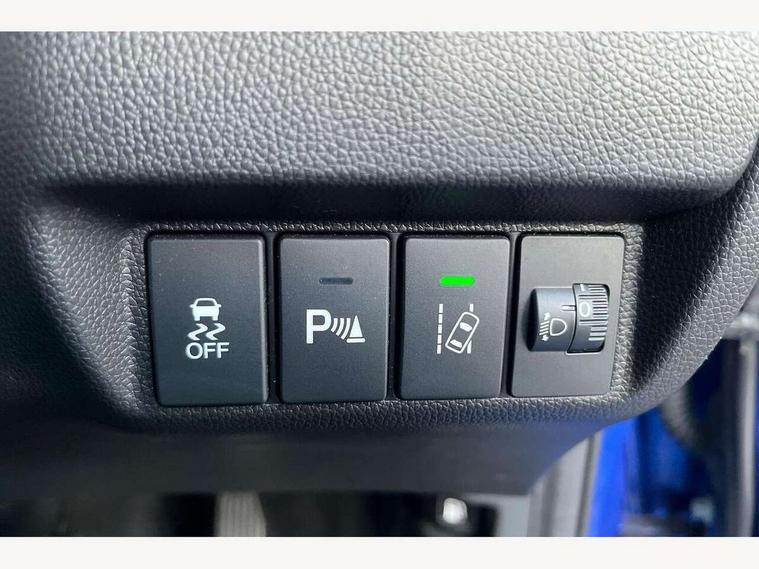 Adaptive motion for electric power steering, Bluetooth hands free telephone connection, Connect with 7" touchscreen, Digital Radio CD/Mp3, Aha app integration, internet browsing, Cruise control with speed limiter, Emergency stop signalling system, Forward collision warning, Front and rear parking sensors, Idle stop, Intelligent speed assist, Lane departure warning system, Multi-information display, Rear view camera, Traffic sign recognition, Vehicle stability assist, 'Shark fin' mobile antenna, 2x USB and HDMI, 6 speakers, Steering wheel mounted audio controls, Automatic coming/leaving home lighting function, Automatic headlights with dusk sensor, Automatic rain sensing wipers, Body colour door handles, Body colour door mirrors, Body coloured bumpers, Drivers one touch power window up/down, Electric heated + adjustable door mirrors, Electrically retractable door mirrors, Front and rear power windows, Front fog lights, High beam assist, LED daytime running lights, LED Headlights, LED high level brake lights, One touch passenger power window up/down, Rear privacy glass, Rear wiper with intermittent and reverse linked, Automatic climate controlled air conditioning, Centre console accessory socket, Cloth upholstery, Driver seat back pocket, Driver's seat height adjustment, Driver/passenger sunvisors and vanity mirrors, Front accessory power socket, Front map lights, Front/rear courtesy lights, Gear shift indicator, Height adjustable passenger seat, Isofix child seat restraint mechanism, Leather gear knob, Leather steering wheel, Luggage area under floor storage box, Magic seat flexibility system, Paddle shift controls, Passenger seat back pocket, Rear head restraints, Rear parcel shelf, Reclining rear seats, Tilt/telescopic adjustable steering wheel, Trunk light, 3x3 point rear seatbelts, ABS/EBD, Active city braking, Anti-whiplash front headrests, Brake assist function, Deflation detection system, Driver's side SRS airbag, Dual front SRS airbags, Front and rear curtain airbags, Front and rear seat belt with emergency locking retractor, Front side airbags, Hill start assist, Passenger SRS airbag cut-off device, Honda super locks, Immobiliser, Security alarm, Smart entry + Smart start, 16" alloy wheels, Tyre repair kit,
