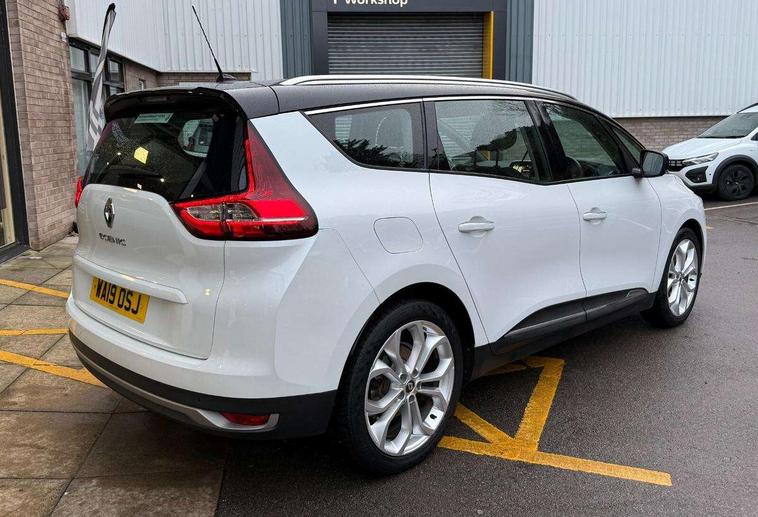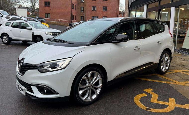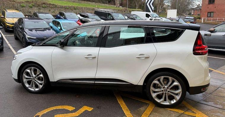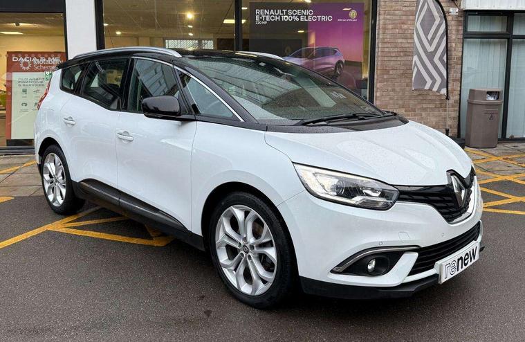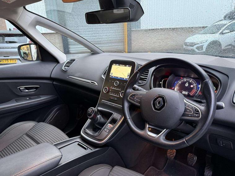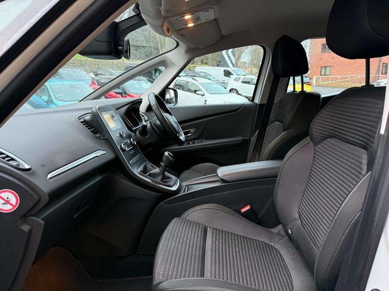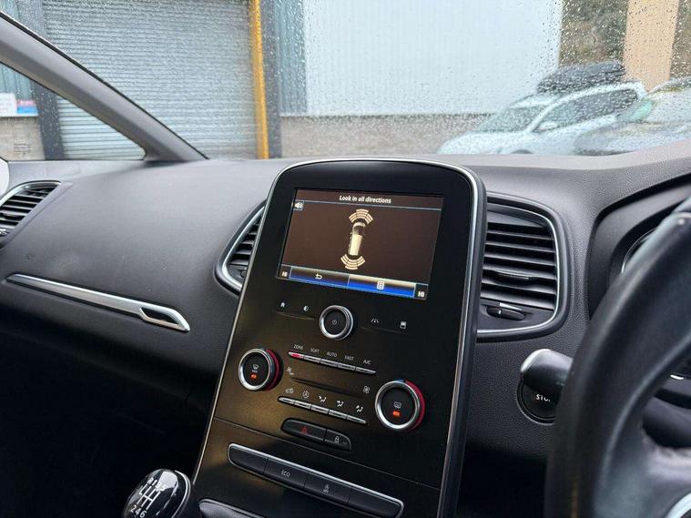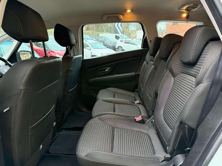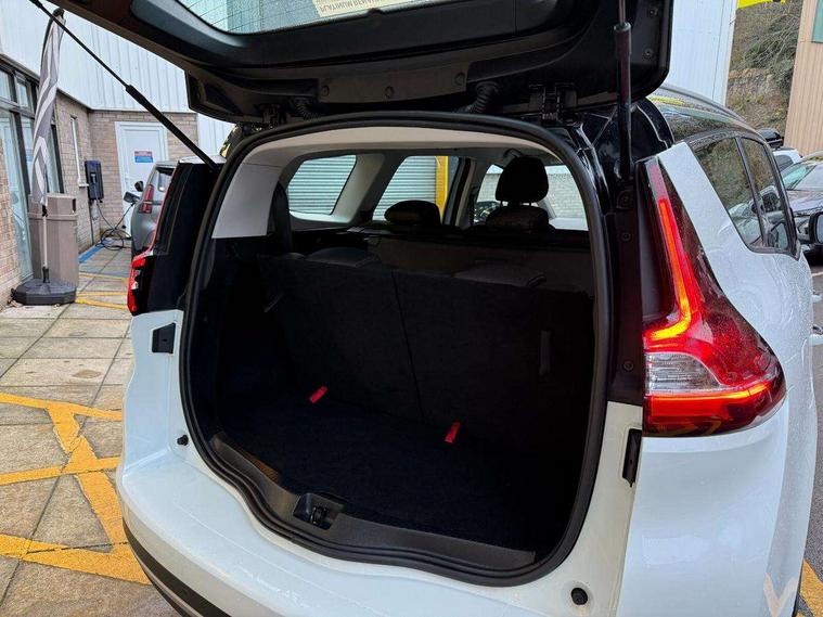 Apple car play/Android Auto, Bluetooth hands free telephone connection, Cruise control + speed limiter, Digital fuel gauge with low fuel warning light, Digital speedometer, Door/boot open warning light, Eco mode, Engine start/stop button, Fatigue detection system, Front and rear parking sensors, Outside temperature gauge, R-Link v2 multimedia system with 7" touch screen, TomTom Live Navigation, touchscreen and European mapping, Rev counter, Trip computer, Variable power steering, Visio system, Voice control system, 2 USB ports, 2 USB sockets in rear, Arkamys auditorium sound system with 6 speakers, Auxiliary input socket, Auxiliary input socket in rear, Bluetooth audio streaming, DAB Digital radio, Fingertip remote control, Automatic headlights + automatic windscreen wipers, Body colour door handles with chrome inserts, Body colour door mirrors, Chrome inserts to side mouldings, Chrome side window trim, Coming home function, Electric adjustable heated door mirrors, Electric folding mirrors, Electric rear windows, Front and rear towing rings, Halogen headlights, Heated rear windscreen, Heated windscreen washer jets, Integral front foglights, Integrated fuel filler cap, LED daytime running lights, LED indicators in door mirrors, LED tail lights, One touch electric front windows, Rear wash/wipe, Roof rails, Side indicator repeaters, Tinted windows, 12V power point front, 12V power point in luggage area, 12V power socket in rear, 2 individual folding 3rd row seats, 2nd row 60/40 split/fold, 3 rear seat adjustable head restraints, 3rd row storage with cup holders, Air ducts to rear seats, Air recirculation system, Cloth upholstery, Driver's lumbar support, Driver/passenger sunvisors with illuminated vanity mirrors, Dual zone automatic climate control + air filtration, Front and rear courtesy lights with delay, Front door pockets with bottle holders, Front reading lights, Gear shift indicator, Height adjustable driver's seat, Height adjustable front head restraints, Height adjustable passenger seat, Height/reach adjust steering wheel, Illuminated dashboard, Illuminated glovebox, Illuminated luggage compartment, ISOFIX on front passenger and rear outer seats, Leather gear knob with satin chrome insert, Leather steering wheel, Pollen filter, Rear reading lights, Seats - all fold flat, Sliding centre console box, Storage pockets in backrests of front seats, Variable boot floor, ABS + EBD + EBA, Automatic parking brake, Child locks on rear doors, Driver and passenger airbags, ESP + ASR traction control + CSV understeer control, Front and rear curtain airbags, Front lateral airbags, Front passenger airbag deactivation, Height adjustable front seatbelts + pretensioners, Hill start assist, Inertia reel 3 point seatbelts on all seats, Protective rear brake disc, Seatbelt warning, Tyre pressure monitor, Hands free Renault card, Immobiliser, Insurance approved Cat 1 alarm system, RAID (Renault Anti-Intruder Device) with automatic door locking, Superlocking, 20" Silverstone alloy wheels,