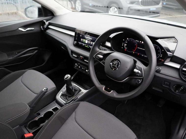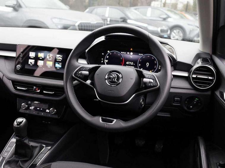 Advanced driver attention and drowsiness monitor, Bluetooth connection, Electromechanical power steering, Exterior temperature gauge, Service interval indicator, Traffic sign recognition, Virtual cockpit with 10.25" colour display, Wireless SmartLink for Apple CarPlay and Android Auto, 6 Speakers (4 in front and 2 in rear), Auxiliary socket for external MP3 player, DAB digital radio reception, Auto dimming rear view mirror, Body coloured bumpers, Door mirror integrated indicators, Front and rear electric windows, Front window wiper intermittent control, Headlight range control - Automatic, Ice scraper in fuel cap, LED 3rd brake light, LED daytime running lights with coming and leaving home feature, LED rear lights, Privacy glass, Rear LED fog light, Rear side wing doors, Rear window wiper with washing nozzles, Roof mounted spoiler, SKODA tailgate lettering in chrome, Unique dark chrome design logo on alloy wheels, 2 reading lights in front and 2 reading lights in rear, 3 rear headrests, Backrest split and folding, Central console with removable cup holder and storage box, Chrome handbrake release button, Dual zone air conditioning with climatronic electronic control, Fabric upholstery, Front centre armrest, Gearshift knob/handle in leather, Grain satin black interior door handles, Hand brake lever handle in leather, Height adjustable front headrests, Height adjustable front seats, Height adjustable steering wheel, ISOFIX and TopTether anchorage points to the outer rear seats, ISOFIX and TopTether on the front passenger seat, Luggage compartment lighting, Manually adjustable lumbar support in front seats, Pollen filter, Rear seat bench unsplit, Single front passenger seat, Skoda lettering on steering wheel, Storm grey headlining, Sun visors with mirror and airbag label on passenger side, Textile floor mats, Ticket holder, Umbrella in drivers door, 3-point height adjustable front seats belts with pretensioner and force limiter, Automatic warning lights in case of crash, Driver and passengers airbag with switch off function, e-Call+, ESC including ABS, MSR, ASR, EDS, HBA and XDS, Front and rear seat belt warning, FRONT ASSIST (AEB City and AEB Inter Urban), Front side airbags, Head airbags, One tone horn, Pedestrian protection, Three rear 3-points safety seat belts with pretensioner and force limiter including stop function for outer rear seat belts, Tyre pressure monitoring system, Anti-theft alarm system including immobiliser, interior monitoring, backup horn, and towing protection, Central locking with radio remote control, interior controls, SAFE function and 2 foldable keys, Black painted air vents, Grain satin black central console cover, Metallic grey upper decorative trim, Satin black door and side trim panel in front, Textile Kota grey lower decorative inserts, Anti-theft wheel bolts protection, Super-low rolling resistance tyres,