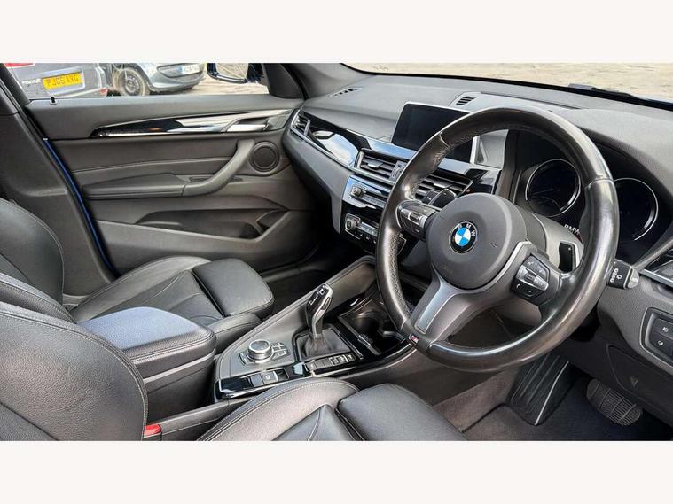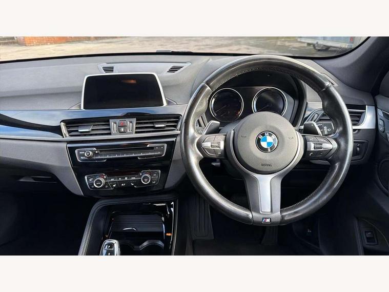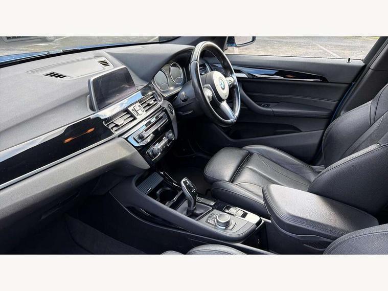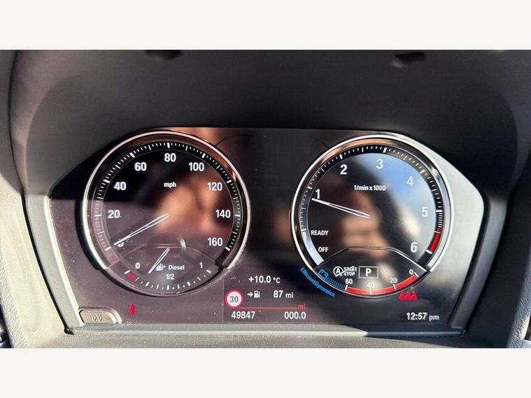 Active Guard incl speed limiting and lane departure functions with auto steering, and front collision warning with brake intervention, Ambient temperature display, Attentiveness assist, Automatic tailgate opening, BMW Online services, BMW remote services, BMW Teleservices, Lights on warning, On board computer, Outside temperature gauge, Real time traffic information, Service interval indicator, Speed limiter, Stop/start button, Tyre puncture warning system, Diesel particulate filter, Electronic differential lock, Performance Control, 2 USB ports in centre console, BMW professional radio with CD player, DAB Digital radio, USB/audio interface, Adaptive LED Headlights, Adjustable headlights, Body colour bumpers, Body colour door handles, Body colour door mirrors, Chrome tailpipe finisher, Electrically adjustable and heated door mirrors, Fingertip control / anti-trap function on electric window, Follow me home headlights, Front and rear electric windows, Front fog lights, Heat insulating tinted glass, Heated windscreen washer jets, kidney grille with high gloss black vertical slats, LED daytime running lights, M door entry sills, Rain sensor including auto headlights activation, Rear window wash/wipe, Twin chrome exhaust tailpipes x2, Welcome home function, 12v power point in centre console, 12V power socket in passenger footwell, 3 rear headrests, 3 spoke sport nappa leather steering wheel, 4 grab handles, Anthracite headlining, Boot light, Centre console with cupholders, Driver/passenger sunvisors with ticket holders, Drivers folding storage compartment, Dual zone automatic air conditioning, Front and rear door armrests, Front centre armrest/sliding cover, Front passenger isofix child seat attachment, Front sports seats, Front/rear adjustable head restraints, Heated front seats, Illuminated glovebox, Isofix rear child seat preparation, Leather gearknob/gaiter/handbrake grip, LED ambient lighting in door trim, Luggage area underfloor compartment, Luggage compartment lighting, Multifunction steering wheel, Rake/reach adjustable steering wheel, Sliding/split/reclining 40/20/40 rear seat with 60/40 split rear seat base, Steering wheel gearshift paddles, Velour floor carpets, Extended storage package - X1, 3 rear 3 point seatbelts, ABS/EBD, Audio/visual collision warning system, Automatic Stability Control (ASC), BMW emergency call, Cornering brake control (CBC), Crash Sensor - activates hazard/interior lighting + unlocks doors, Driver/Front Passenger airbags, Driver/front passenger side airbags, DSC - Dynamic Stability Control, Dynamic brake control, Dynamic Traction Control - DTC, Electronic parking brake, Front and rear head airbags, Front passenger airbag deactivation, Front seatbelt force limiters, Hill start assist, Pyrotechnically pre-tensioned front seatbelts, Rear door child safety locks, Seatbelt warning, Tyre pressure monitor, Warning triangle and first aid kit, Auto door lock when driving, Central locking including boot and fuel flap with deadlocks, Engine immobiliser, Locking wheel nuts, Remote control Thatcham category 1 alarm, High gloss black centre console, Low rolling resistance tyres,