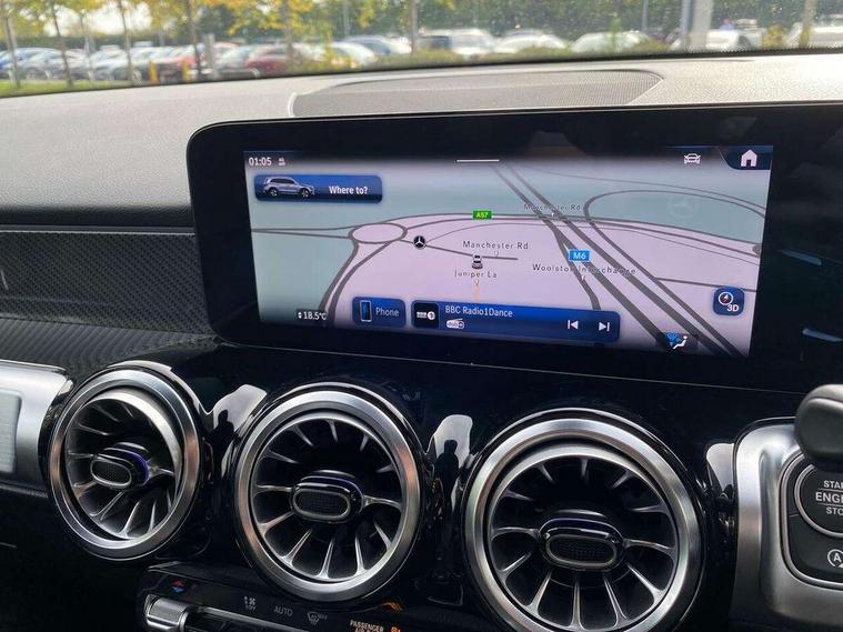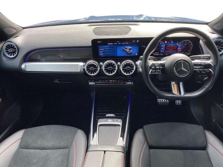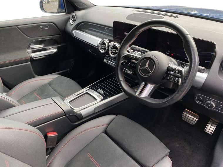 10.25 inch touchscreen central media display, 10.25" Digital instrument cluster display screen, 12 ultrasonic sensors in front and rear bumpers, 180 degree reversing camera with parking guidelines, Assisted parking: reversing backwards into perpendicular and parallel parking spaces, Attention assist - Monitors steering behaviour and long journey fatigue, Bluetooth connection, Brake pad wear indicator warning light, Car wash mode, Convenience opening and closing, Direct steering, DYNAMIC SELECT with a choice of driving modes (ECO, Comfort, Sport and Individual), ECO start/stop function, Engine start/stop button, Fluid level warning indicator for fuel, oil, coolant and washer fluid, Hard disk navigation, Hey Mercedes Voice activation, Lamp failure indicator, Lane keep assist, MBUX navigation premium, Mercedes me connect including emergency call system, accident recovery, breakdown and maintenance management, Mercedes me remote services, Outside temperature gauge, Owners manual and service booklet in English, Pre-installation of private car share, Preinstallation for parking damage notification, Radio aerial integrated into front and rear windshields, Remote boot closing, Service indicator (ASSYST), Smartphone integration with Apple CarPlay and Android auto, Speed limit assist, Tailgate, Trip computer in multifunction display with current consumption indicator, Ultrasound sensors - positioned in the handle of the tailgate, Wireless charging, Comfort suspension with ride height lowering, Rear axle multi-link, 1 USB-C port in the oddments compartment (Charge + Data transfer), 2 USB-C ports for the rear on the centre armrest (Charge only), 2 USB-C ports under the front centre armrest (Charge + Data transfer), DAB digital radio tuner, MBUX multimedia system, Mercedes Benz sound system (100 W) with 6 speakers, Pre installation for Mercedes Benz Link, Adaptive brake lights, Adaptive high beam assist, AMG front apron with front splitter in the colour of the vehicle with chrome trim element, AMG rear apron with visible tailpipe trim and chrome trim element, AMG specific/dual flow exhaust pipes in chrome (non-functional), Auto dimming rear view mirror, Beltline trim and window line trim strip in high gloss aluminium, Black grained side sill trim with chrome inlay, Body coloured door handles, Electric adjustable and heated door mirrors with integrated LED side indicators, Electric folding door mirrors, Front and rear electric windows, Headlamp assist automatic headlamp activation, Heat insulating dark-tinted glass starting from B-pillar, Heated glass rear windscreen + timer control, High level LED third brake light, Interior mirror with black reading lamps and frameless, LED high performance headlamps with integrated LED daytime running lights, LED tail lamp, Polished aluminium roof rails, Radiator grille as a diamond grille with chrome pins and central Mercedes star, Rain sensor windscreen wipers, Rear fog lamp, Rear side wing doors, Rear wiper, Single louvre in matt grey with chrome inserts and black highlights, Two visible tailpipe trim elements exhaust, Ultrasonic sensors - positioned in the front and rear bumpers, Wheel arch liners in the colour of the vehicle, 12V socket in the oddments compartment, 3 seat bench in 2nd row, 3 twin spoke flattened multifunction steering wheel in nappa leather - horizontal twin spoke in high gloss black, vertical twin spoke in silver chrome, 4 way adjustable lumbar support, 40:20:40 split folding rear seats, Air vents with silver chrome surrounds, AMG floor mats, AMG sports pedals with brushed stainless steel surfaces and black rubber studs, Automatic child seat recognition sensor, Black roof lining, Door handles with chrome inserts, Fluorescent jacket, Front and rear headrests, Front centre armrest with stowage, Galvanised steering wheel gearshift paddles in silver chrome, Handle recess lighting, Heated front seats, Height adjustable head restraints, Height/reach adjustable steering column, Interior lighting - 64 colour Ambient lighting, Luggage net on driver/front passenger seat backrest, Single front passenger seat, Sports seats, Stowage compartment with retractable cover, Sun visors with illuminated vanity mirrors, THERMATIC automatic climate control, Third row of seats for two people on rear seat, Twin front cup holders, Two outer rear seat isofix and top tether child seat fixing points, Easy pack tailgate, Interior lighting with light and sight pack - GLB, Seat comfort package - GLB, 3 rear 3 point seatbelts, Active bonnet pedestrain safety measure which detects an impact and raises bonnet by 65mm, Active brake assist includes forward collision warning system with autonomous braking, Adaptive brake assist with hold function and hill start assist, Airbags - kneebag for driver, Anti-lock braking system (ABS) with brake assist, Black seatbelts, Bonnet with power domes, Childproof locks manually operated for rear doors and electrically operated for rear power windows, Crash responsive emergency lighting, Curve dynamic assist, Driver and front passenger head and sidebags, Driver and front passenger windowbags, Dual stage driver and front passenger airbags, Electric parking brake, Electronic stability programme with acceleration skid control, Front and rear seatbelt reminder, Front brake callipers with Mercedes Benz lettering, Front passenger seat occupancy sensor, Perforated front brake discs, Tyre pressure monitoring system, Warning triangle and first aid kit, Guard 360 degree vehicle protection - Anti theft alarm system, tow away protection with visual, acoustic warning and alarm, Interior monitoring system, Keyless Go Access and drive authorisation system, KEYLESS-GO starting function, Remote central locking and crash sensor with emergency opening function, Thatcham category 1 alarm system with immobiliser and interior protection, Vehicle key with KEYLESS GO functionality, Carbon structure trim, 19" AMG 5 twin spoke light alloy wheels aerodynamically optimise