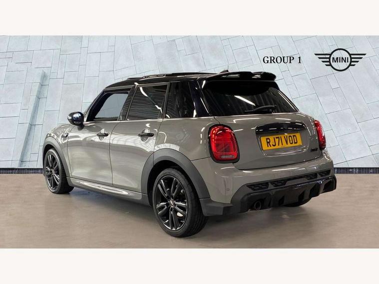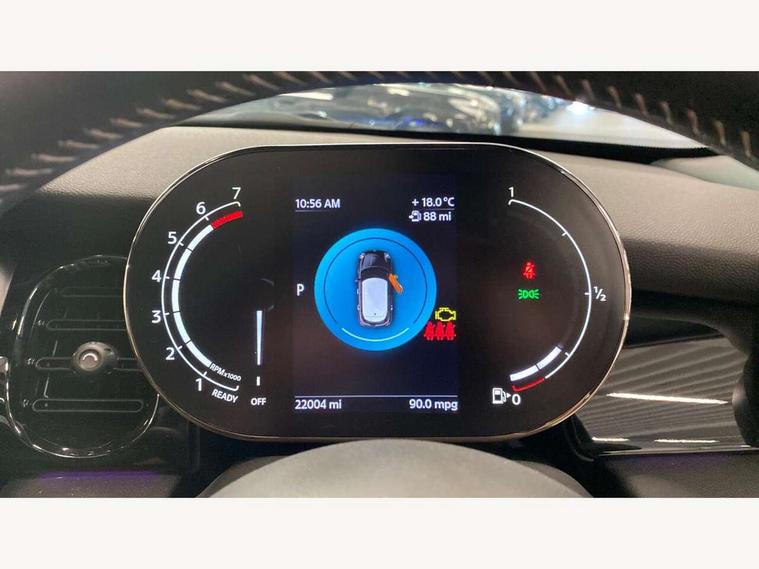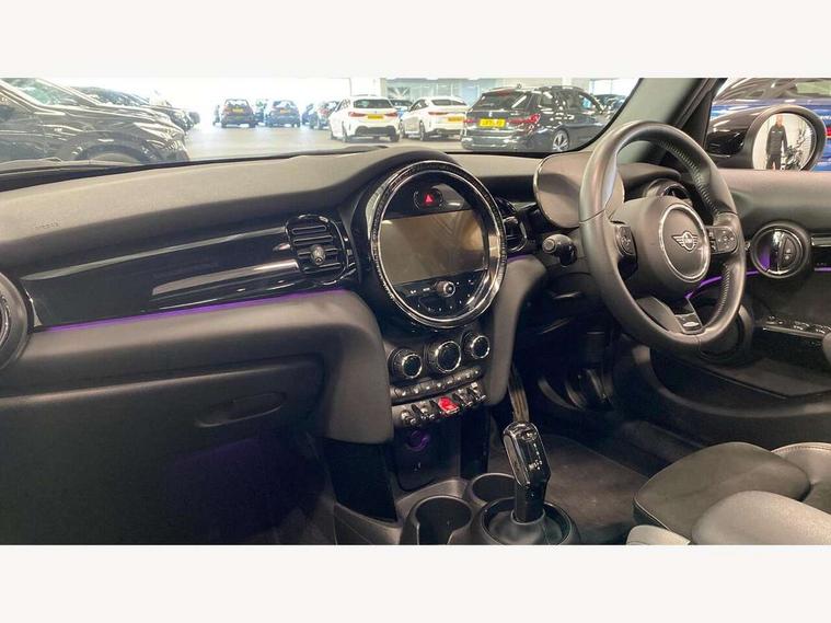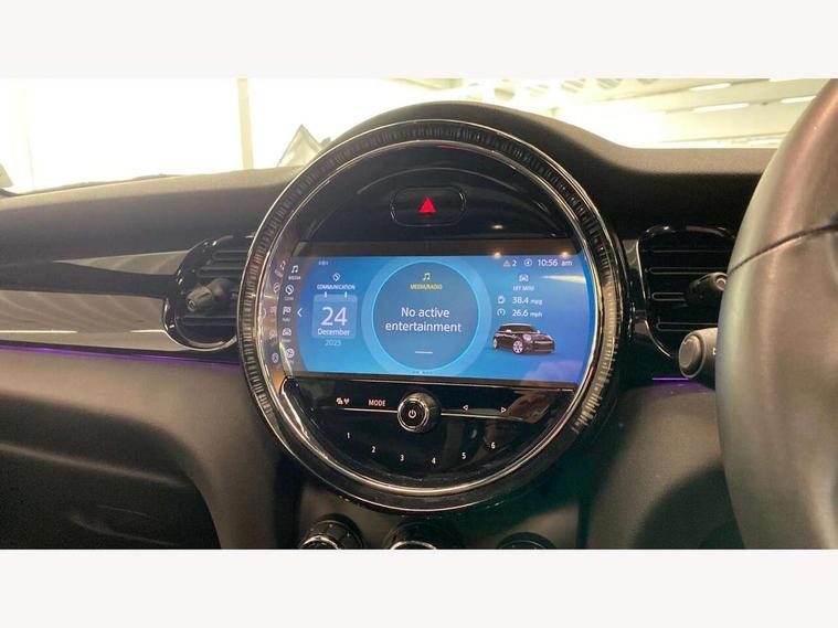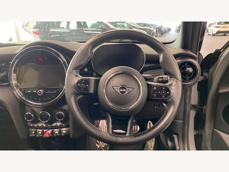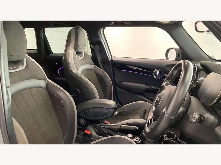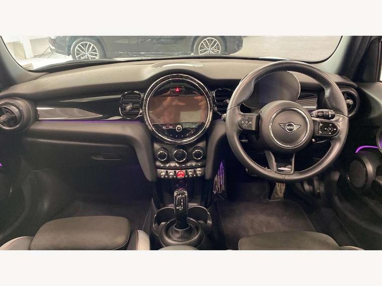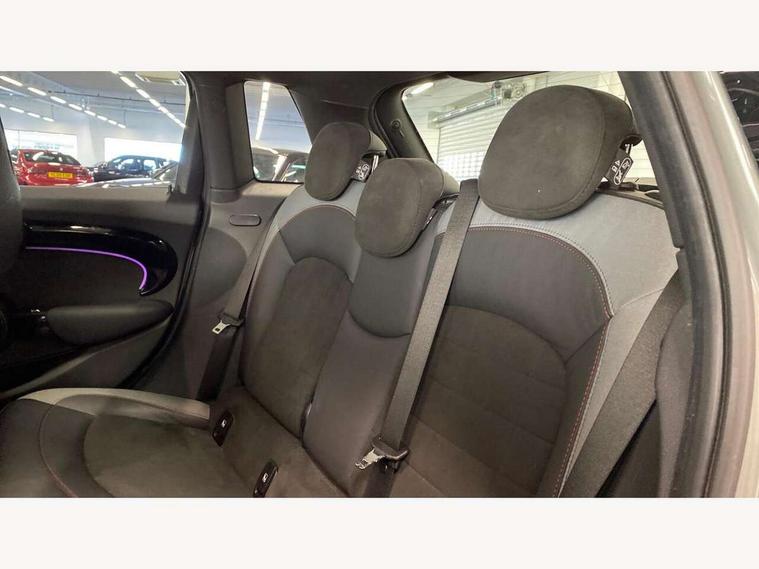 Automatic start/stop function with brake energy recuperation, Compatible mobile phone bluetooth with audio streaming, Cruise control with brake assist, Electro-mechanical speed dependant steering assistance, Flexible car sharing preparation, Instrument cluster, MINI Driving Modes - centre toggle switch to control driving setting (sport, mid and green), Mini E-call, MINI TeleServices, On board computer, Rear park distance control, Service interval indicator, Adaptive suspension, Double Vanos system, Fully variable valve control, Gear change indicator display, High precision injection, Performance Control, Steptronic transmission with double clutch, 6 speakers in front door trims and underneath front seats, 8.8" touchscreen with LED ring, FM tuner and DAB digital radio, Automatic headlight activation switch, Body colour fuel filler cap, Chrome border high gloss black slats radiator grille, Dynamic brake lights, Electric front+rear windows, Exhaust tailpipe on left with chrome finisher, Heated rear window, Heated windscreen washer jets, JCW Aerodynamic kit - Front and rear bumpers with sporty JCW styling and part-painted side sills with MINI John Cooper Works door sill finishers, John Cooper Works rear spoiler, LED headlight with closed ring and daytime driving lights, Metal door sill strips with MINI imprint, Model logo Cooper on right of tailgate, Rain sensor window wipers, Rear fog lights, Rear LED lights with union jack design, Rear window wiper, Side scuttle panel with integrated indicator, Sun/heat protection glass, White indicator lenses, 12V Accessory socket in centre console, 4 lashing eyes in luggage compartment, 60/40 split folding rear seat, Anthracite headliner including grab handles and clothes hooks, Carbon black colour line - Knee roll and door armrest, Chrome interior highlights, Cupholders, Front and rear isofix with front passenger airbag deactivation, Glove compartment, Height and length steering column adjustment, Interior lighting with 12 different colours across the dashboard, underneath door bezel with illuminated laser-engraved design on central display, JCW Sport seats with integrated headrests, adjustable thigh support and John Cooper Works logo, Leatherette gearshift lever and handbrake gaiters, LED reading lights, vanity mirror lights, front foot well light and spotlight on front seats, Manual air conditioning, Mechanical seat adjustment - forward/back & backrest for front seats and driver seat height adjust, Multifunction steering wheel, Storage compartments in doors, Sunvisors with vanity mirrors, Velour floor mats, Walknappa leather steering wheel with grey seam and John Cooper Works badge on Piano Black lower steering wheel spoke, Piano black exterior pack - Mini Hatchback Cooper, 3 point seatbelts on all five seats, 6 Airbags - front, side, head and seat belt tensioners, Anti-lock braking system (ABS), DSC - Dynamic Stability Control, Front and rear disc brakes, Hill start assist, Single tone fanfare horn, Tyre pressure monitoring system, Alarm system with tilt sensor, monitoring doors, bonnet interior and tailgate, Electronic vehicle immobiliser, Start/stop toggle with keyless go, Piano black interior trim, Tool kit,