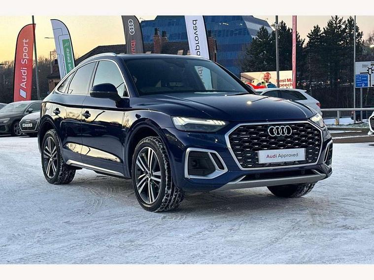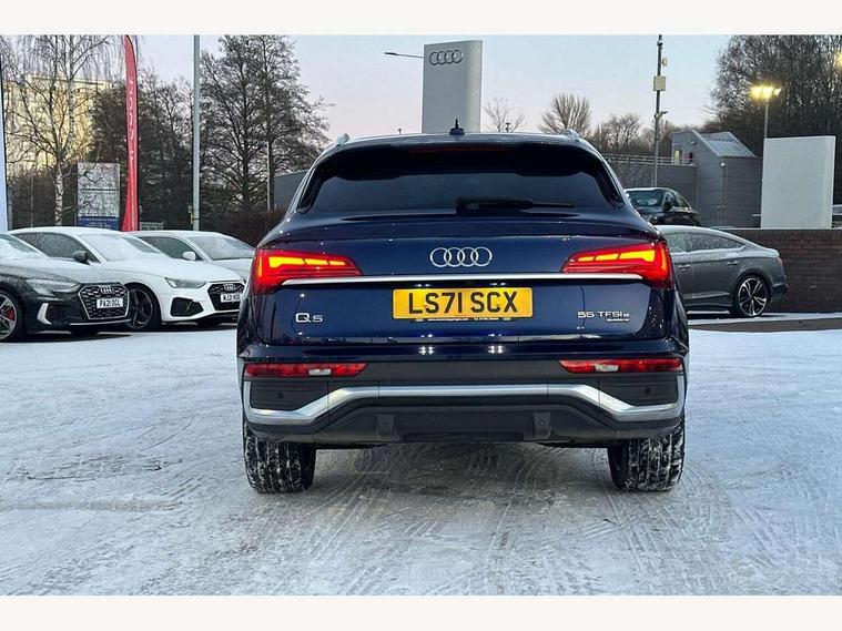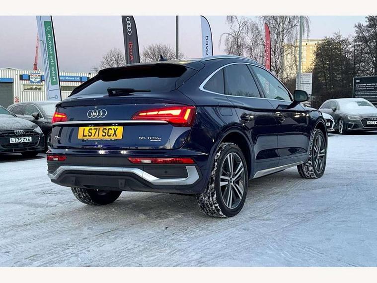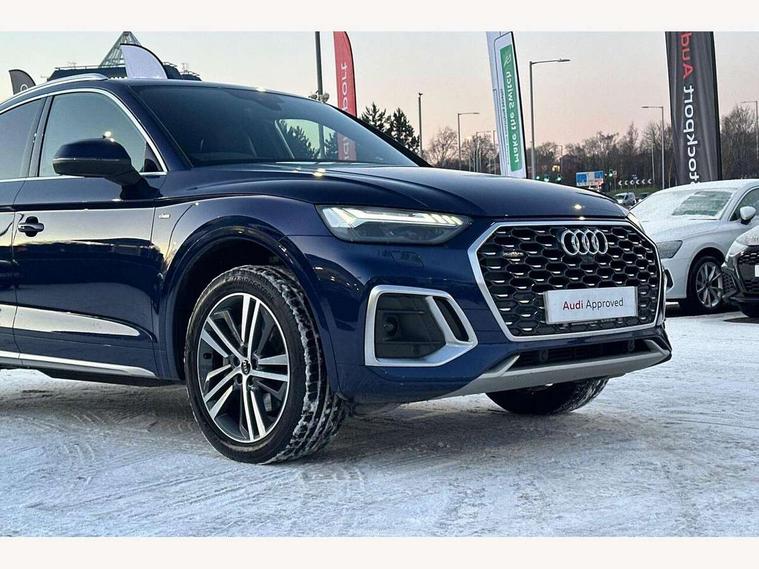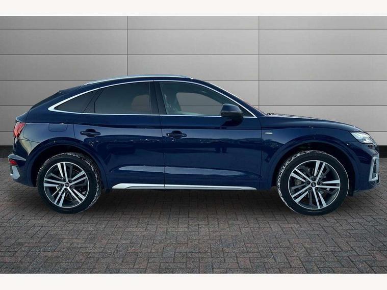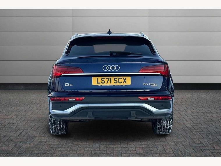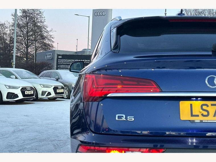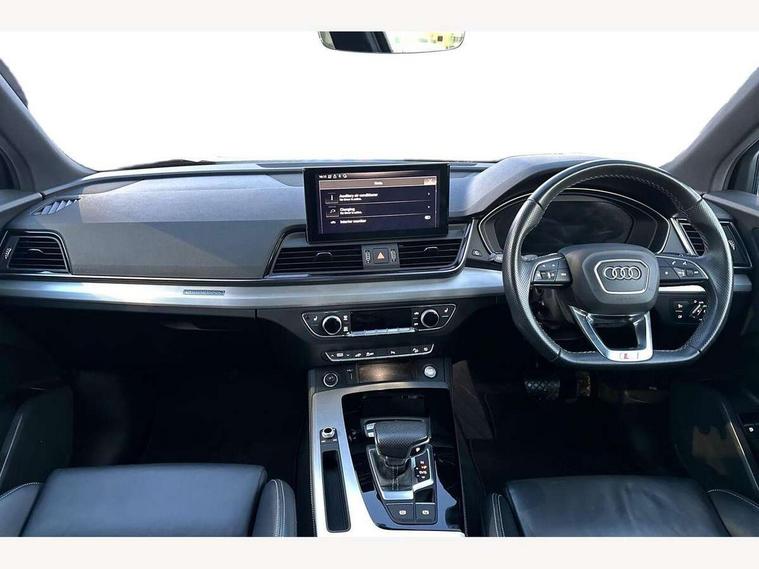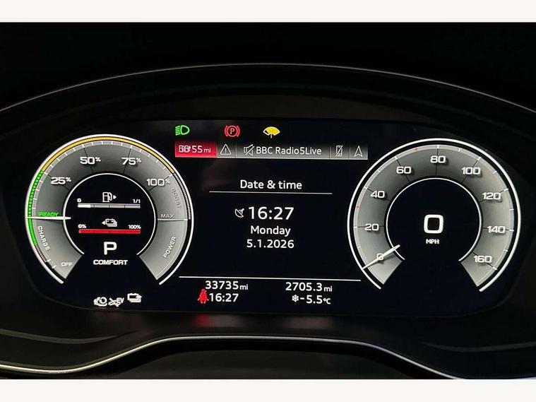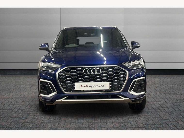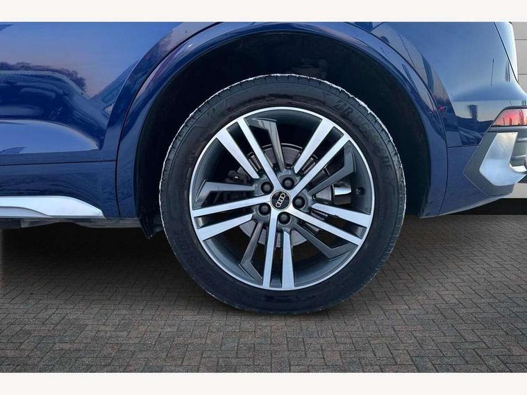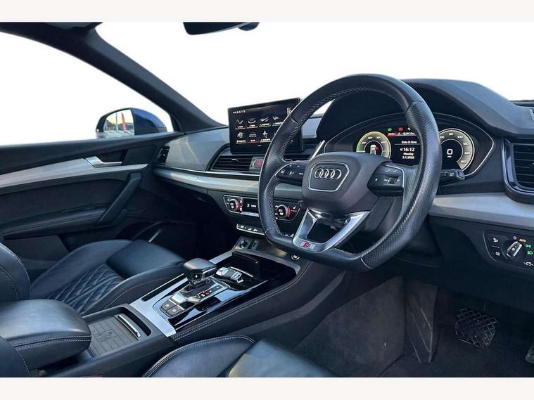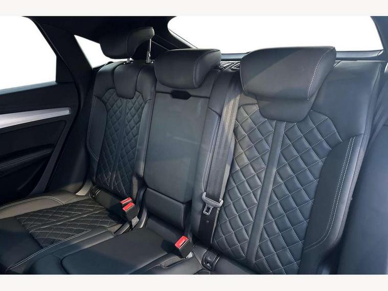 Advanced key with electric hands free boot opening system, Audi connect safety and service (e-call), Audi connect with Amazon Alexa Integration, Audi drive select, Audi virtual cockpit plus with 12.3" screen and three different layout designs, Audi wireless smartphone interface, Automatic start-stop system with coasting functionality and efficiency programme, Bluetooth interface, Electro - mechanical power assisted steering, MMI navigation plus with 10.1" touch screen, Power tailgate, Reversing camera, Service interval indicator, Voice control system with Audi hotword activation "Hey Audi", 3 pin 10 amp domestic charging cable, Dynamic suspension, Quattro on demand, Type 2 mode 3 22kW 32 amp charging cable, Type 2 socket for AC charging, Audi sound system, DAB Digital radio, Acoustic glass for front and door windows, Aluminium roof rails, Audi beam, Audi matrix LED headlights with dynamic front and rear indicators, Auto dimming rear view mirror, Automatic headlights and windscreen wipers, Body colour bumpers, Body colour door mirrors, Body colour rear diffuser with matt aluminium silver surrounds, Body colour underbody protection, Chrome plated exhaust trims, Door sills in Selenite silver, Electric adjustable/heated/folding door mirrors, Front air inlet surrounds in aluminium, Front and rear electric windows, Front radiator grille in honeycomb design, Headlight washers, Lower bumpers painted in contrast Manhattan grey, Rear chrome trim strip below lights, Rear diffuser strip in selenite silver, Rear privacy glass and rear side windows, Rear spoiler, Rear wiper, Roof bars, 2 x USB charging port with aux input socket, 3 rear headrests, 40:20:40 split folding rear seat with rear centre armrest, Black cloth headlining, Comfort front centre armrest, Contrast stitching on seats, steering wheel and gear lever gaiter, Deluxe 3 zone electronic climate control, Fine Nappa leather upholstery with diamond pattern contrast stitching + front sport seats with S embossed logo, Front/rear floor mats, Fully electrically adjustable seats, Gear lever in black leather, Heated front seats, Height adjustable front head restraints, Height/reach adjustable steering column, Illuminated door sill trims with S logo, ISOFIX child seat mounting and top tether, Massage function for front seats, Rear seat bench plus, Sunvisors with vanity mirrors, Tool kit, Trunk roller cover, Extended interior upholstery pack - Q5, High gloss pack - Q5, LED interior light pack - Q5, 3 point seatbelts on all seats, 6 airbags - Driver, front passenger, curtain and side airbags, Electrically operated child locks on rear doors, Electromechanical parking brake, Electronic stabilisation control including ABS, ASR and EDL, Front passenger airbag deactivation, Hill descent control, Hill hold assist, Multi collision brake assist, Pop-up bonnet for pedestrian protection, Pre sense city, Seat belt force limiter, Seatbelt monitoring, Tyre pressure warning, Warning triangle and first aid kit, Anti theft alarm, Anti-theft wheel bolts, Keyless Go access/ignition system, Matt brushed aluminium inlays, 20'' 5 segment spoke design alloy wheels in contrasting grey with diamond cut finish, Tyre repair kit,