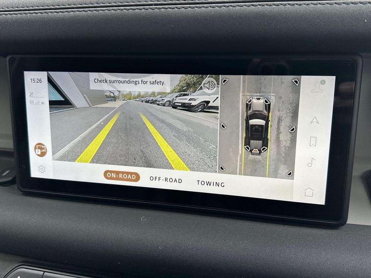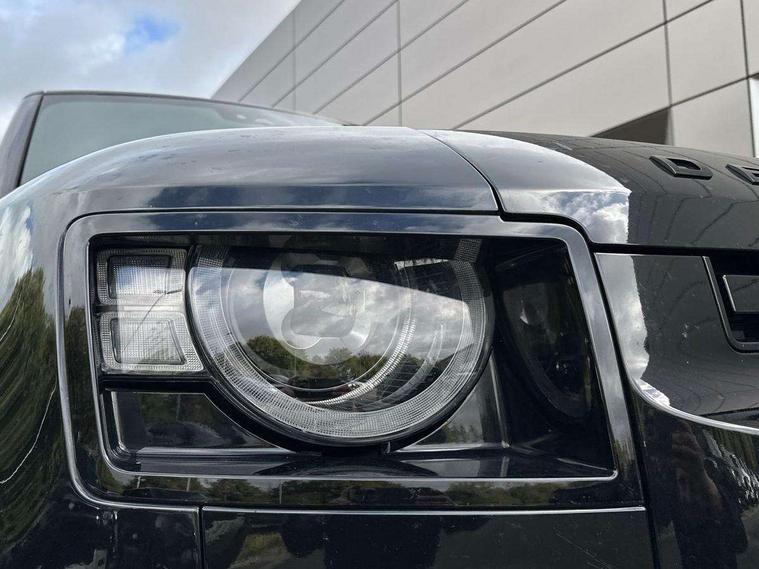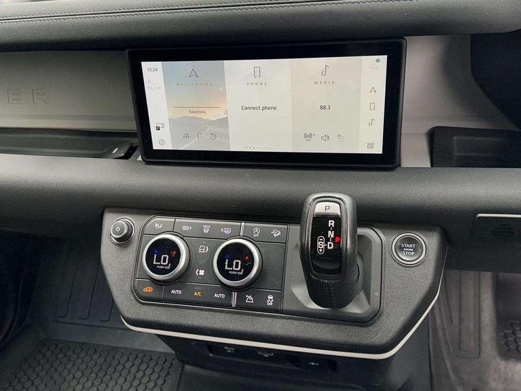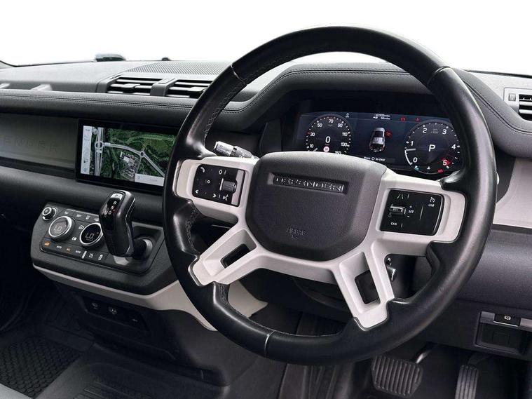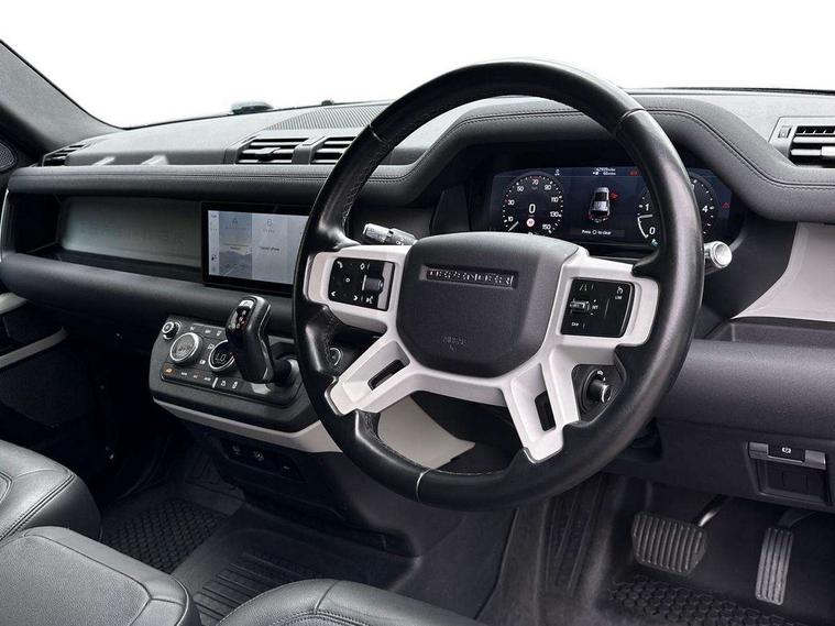 Customer Configurable Autolock, 360 parking aid, 3D Surround Camera with 360 View, 180 Rear View, Front Traffic Detection, Forward Vehicle Guidance, Tow Hitch Assist and clear sight Ground View, Blind spot assist, Brake Hold, Driver condition monitor, Electric power assisted steering (EPAS), Interactive Driver display, Lane keep assist, Low traction launch, Pivi pro connected, Rear traffic monitor, Traffic sign recognition adaptive speed limiter, Trip computer, Tyre pressure monitor, Wade Sensing, Android Auto, Apple CarPlay, DAB Radio (Digital Audio Broadcasting), Meridian 280W sound audio system with 7 speakers with subwoofer, Alpine lights, Assisted tailgate, Auto High Beam Assist, Automatic headlight levelling, Centre high mounted stop light, ClearSight interior rear view mirror, D300 badge, Electric heated/power fold door mirrors with approach lights and auto dimming driver side, Electric windows with one touch open/close and anti-trap, Exterior signage panel, Follow me home lighting, Front fog lights, Heated rear window with timer, LED tail light, Premium LED headlights with signature DRL, Privacy glass, Puddle lights, Rain sensing wipers, Rear fog lights, Rear wash wiper, Side-hinged tailgate, Standard roof, Standard tread plates, 40:20:40 folding rear seats with centre armrest, Carpet mats, Clear exit monitor, Click and go integrated base unit, Dual zone climate control, Durable rubber cabin flooring, Electric adjustable steering column, Footwell lights, Front jump seat and folding front centre armrest, Front passenger seat ISOFIX points, Glovebox storage, Grained Leather upholstery, High sided rubber mats, Leather gearshift, Loadspace hooks, Loadspace rubber mat, Lockable and illuminated forward underfloor storage, Overhead stowage for sunglasses, Rear centre headrest, Rear reading light, Signature graphic, Sunvisors with illuminated vanity mirrors, Online pack - Defender with data plan, Brake pad wear indicator, Electronic traction control, Emergency braking, Front airbags, with passenger seat occupant detector, Power operated child locks, Remote for (e-Call, Optimised assistance call, InControl app, Climate, beep and flash and door), Seat belt reminder, Intrusion sensor, Keyless entry system, Locking wheel nuts, ABS and EBA, CBC - (Cornering brake control), Dynamic stability control, Electronic park brake, Gradient acceleration control, Hill Descent Control, Hill start assist, Particulate filter (DPF), Push button start, Roll stability control, Trailer stability assist,
