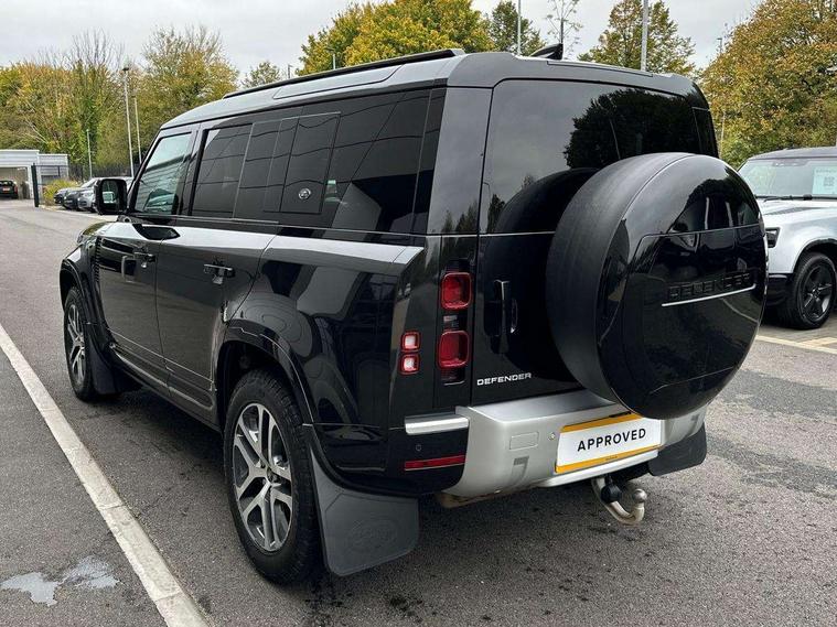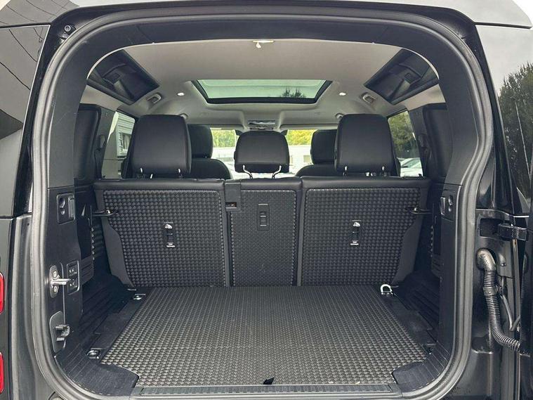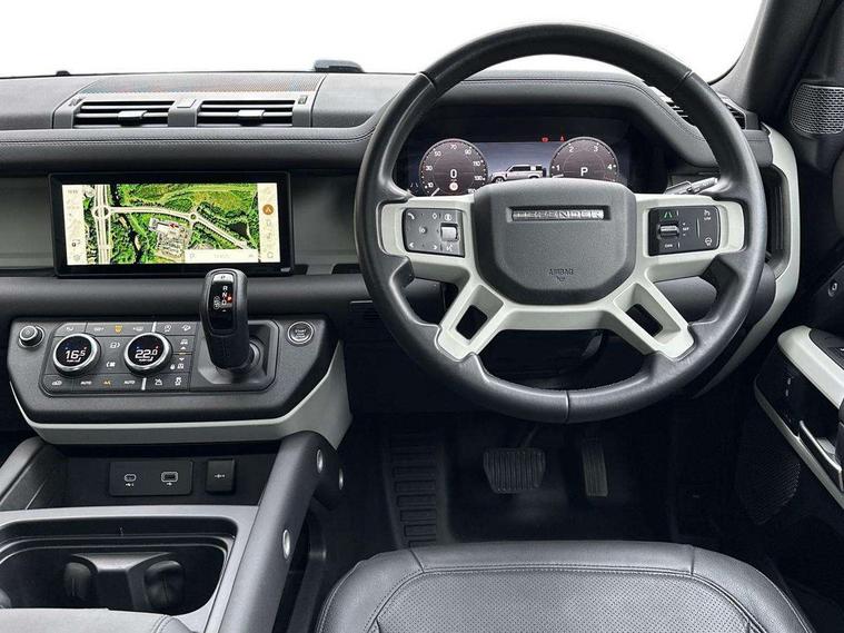 360 degree parking aid, 3D Surround Camera with 360 View, 180 Rear View, Front Traffic Detection, Forward Vehicle Guidance, Tow Hitch Assist and clear sight Ground View, Android Auto, Apple CarPlay, Assisted tailgate with soft close, Blind spot assist, Bluetooth system, Brake pad wear indicator, Clear exit monitor, Connected navigation pro, Cruise control + speed limiter, Driver condition monitor, Electric power assisted steering (EPAS), Interactive driver display, Lane keep assist, Push button start, Rear traffic monitor, Traffic sign recognition with adaptive speed limiter, Trip computer, Wade Sensing, 8 speed automatic transmission, Adaptive dynamics, All wheel drive system, Electronic air suspension, Twin speed transfer box, DAB Radio (Digital Audio Broadcasting), Pivi pro connected, Automatic headlight levelling, Automatic headlights, Body coloured roof, Centre high mounted stop light, ClearSight interior rear view mirror, Electric heated/power fold door mirrors with approach lights and auto dimming driver side, Electric windows with one touch open/close and anti-trap, Follow me home lighting, Front fog lights, Heated rear window with timer, Heated windscreen, Illuminated metal treadplates with brand name script, LED tail lights, Matrix LED headlights with signature DRL, Privacy glass, Puddle lights, Rain sensing windscreen wipers, Rear fog lights, Rear side wing doors, Rear wiper, Side hinged tailgate, Signature graphic (with interior storage), Sliding panoramic roof, Trailer stability assist, 12 way heated and cooled electric memory front seats with 2 way manual headrests, 12V power socket in loadspace, 3 seat bench in 2nd row, 40:20:40 folding rear seats with centre armrest, Alpine lights, Configurable cabin lighting, Durable rubber cabin flooring, Durable rubber loadspace flooring, Electric cabin pre conditioning, Electric reach + rake adjustable steering column, Footwell lights, Front centre console refrigerator compartment, Front passenger isofix child seat attachment, Grained Leather upholstery, Heated steering wheel, Leather gearshift, Light oyster morzine headlining, Loadspace cover, Loadspace Hook, Multifunction steering wheel, Overhead stowage for sunglasses, Premium cabin lighting, Rear headrests, Rear ISOFIX, Rear reading lights, Single front passenger seat, Standard interior, Standard leather steering wheel, Standard seat configuration, Storage glovebox, Sunvisors with illuminated vanity mirrors, Online pack with data plan - Defender, XS Edition exterior pack - Defender, 5 x 3 point seatbelts, ABS, Brake hold function, Cornering brake control (CBC), Cross car beam in light grey powder coat brushed finish, Customer configurable autolock, DSC - Dynamic Stability Control, EBD - Electronic brakeforce distribution, Electric parking brake (EPB), Emergency brake assist, Emergency braking, ESP + traction control, Front airbags with passenger seat occupant detector, HDC - Hill descent control, Hill launch assist, Low traction launch, Power operated child locks, Remote for (e-Call, Optimised assistance call, InControl app, Climate, beep and flash and door), RSC - Roll stability control, Seat belt reminder, TPMS (Tyre pressure monitoring system), Alarm, Immobiliser, Intrusion sensor, Keyless entry, Locking wheel nuts,