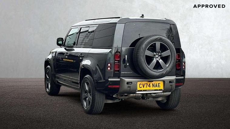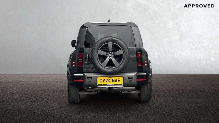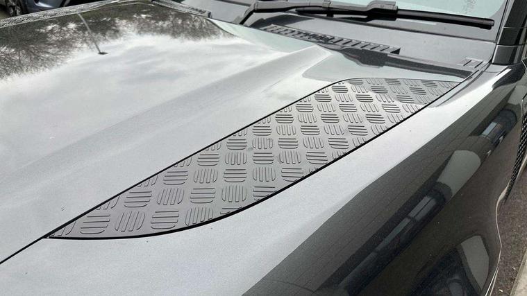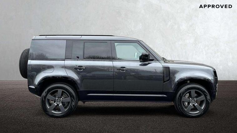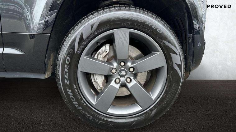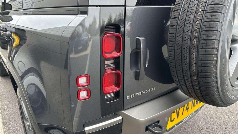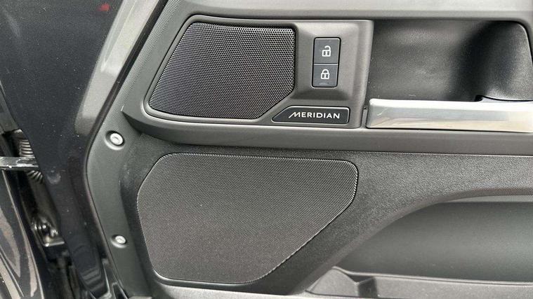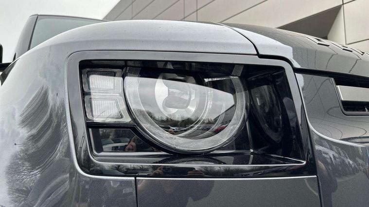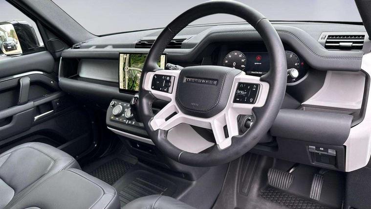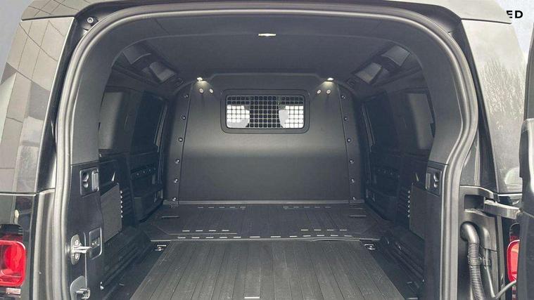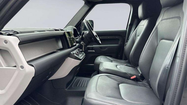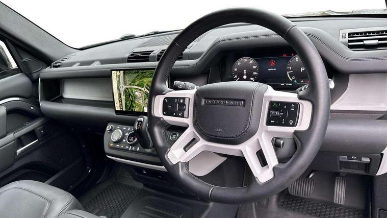 Customer Configurable Autolock, 11.4" touchscreen, 360 parking aid, 3D Surround Camera with 360 View, 180 Rear View, Front Traffic Detection, Forward Vehicle Guidance, Tow Hitch Assist and clear sight Ground View, Adaptive cruise control, Blind spot assist, Brake Hold, Driver condition monitor, Electric power assisted steering (EPAS), Interactive Driver display, Lane keep assist, Low traction launch, Pivi pro connected, Rear collision monitor, Rear traffic monitor, Traffic sign recognition adaptive speed limiter, Trip computer, Tyre pressure monitor, Android Auto, Apple CarPlay, DAB Radio (Digital Audio Broadcasting), Meridian 280W sound audio system with 7 speakers with subwoofer, Alpine lights, Assisted tailgate, Automatic headlight levelling, Automatic headlights and rain sensitive front wipers, Body coloured bonnet, Body coloured exterior Utility Panel, Centre high mounted stop light, Electric heated/power fold door mirrors with approach lights and auto dimming driver side, Electric windows with one touch open/close and anti-trap, Follow me home lighting, Front fog lights, Heated rear window with timer, Heated windscreen, LED tail light, Matrix LED headlights with signature DRL, Privacy glass, Puddle lights, Rear fog lights, Rear wash wiper, Side-hinged tailgate, Soft close tail door, Standard roof, Standard tail door, Standard tread plates, Additional lashing points, Black exposed rear recovery eyes, Configurable cabin lighting, Dual zone climate control, Durable rubber cabin flooring, Electric adjustable steering column, Footwell lights, Front jump seat and folding front centre armrest, Front passenger seat ISOFIX points, Full height bulkhead behind row 1 seats, Glovebox storage, Heated steering wheel, High sided rubber mats, Leather steering wheel, Loadspace cover, Loadspace hooks, Loadspace rubber mat, Lockable and illuminated underfloor storage compartment (x1 under boot floor and x1 accessible via rear doors), Overhead stowage for sunglasses, Rear centre headrest, Rear reading light, Sunvisors with illuminated vanity mirrors, Upgraded loadspace LED lighting, Online pack - Defender with data plan, Brake pad wear indicator, Electronic traction control, Emergency braking, Front airbags, with passenger seat occupant detector, Power operated child locks, Remote for (e-Call, Optimised assistance call, InControl app, Climate, beep and flash and door), Seat belt reminder, Intrusion sensor, Keyless entry system, Locking wheel nuts, Spare wheel lock, 8 speed automatic transmission, ABS and EBA, All wheel drive, CBC - (Cornering brake control), Dynamic stability control, Electronic brake force distribution, Electronic park brake, Gradient acceleration control, Hill Descent Control, Hill start assist, Particulate filter (DPF), Push button start, Roll stability control, Trailer stability assist, Twin speed transfer box (high/low range), Extended leather upgrade,