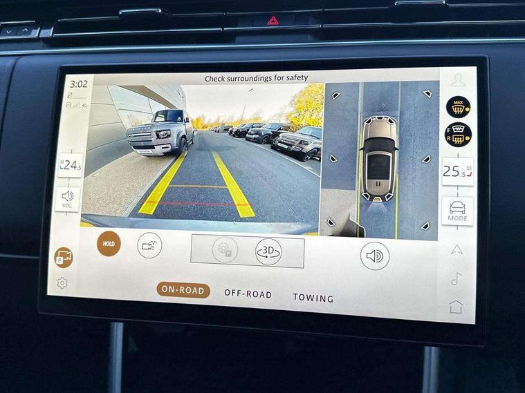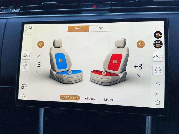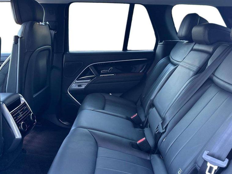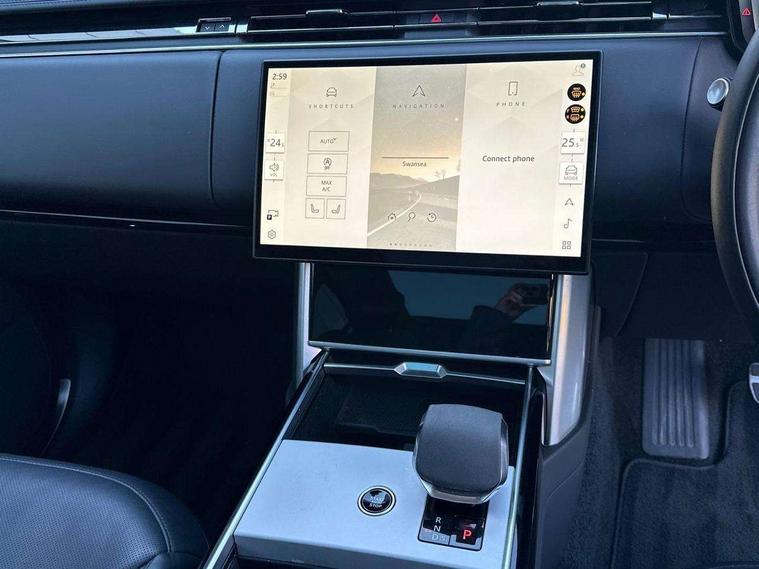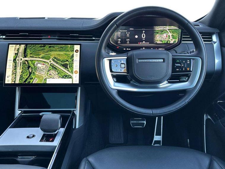 13.1" Touchscreen, 3D surround camera inc frwd traffic detection, vehicle clearance guidance, 3D view, clearsight ground view, manoevure light, 360 parking aid, wade sensing, All Terrain Info Centre, All wheel steering, Android Auto, Apple car play, Blind spot assist, Bluetooth connectivity streaming, Driver condition response, Eco mode, Electric power assisted steering (EPAS), Emergency call service, Front and rear parking aid, Head up Display, Interactive driver display, Lane keep assist, Rear collision monitor, Rear traffic monitor, Remote, Traffic sign recognition with adaptive speed limiter, Wi-Fi Enabled with data plan, Wireless device charging with phone signal booster, 8 speed automatic transmission, Active damper technology system, Adaptive dynamics, All terrain progress control, All Wheel Drive (AWD), Automatic access height, Terrain Response 2 Auto, Twin speed transfer box, Digital Audio Broadcast radio-DAB, Pivi pro including smart settings, Connected navigation pro, nuance speech, USB socket, Acoustic laminated windscreen, Animated directional indicators, Automatic headlights, Automatic levelling headlights, Centre high mounted stop light, ClearSight interior rear view mirror, Electric windows with one touch open/close and anti trap, Engine cover, Flush deployable exterior door handles, Front and rear recovery eyes, Front fog lights, Headlamp power wash, Heated rear window, Heated washer jets, LED tail lights, No badges, Power fold, auto-dimming, heated door mirrors with approach lights, Rain sensing windscreen wipers, Rear boot, Rear fog lights, Rear side wing doors, Side repeater indicators in mirror, Trailer stability assist, Winter wiper park position, 12V power sockets, 3 seat bench in 2nd row, Air quality sensor, Bright metal pedals, Cabin air purification pro, Cabin lighting, Customer configurable single point entry, Driver and passenger front seat armrests, Easy boot loading, Ebony Carpet, Front and rear cupholders, Front and rear grab handles, Front head restraints, Gearshift paddles, Heated steering wheel, Hook in load space, Loadspace light, Luggage tie down in loadspace, Multifunction steering wheel, Rear centre armrest, Rear head restraints, Rear ISOFIX, Single front passenger seat, Soft close doors, Twin blade sunvisors with Illuminated vanity mirrors, Upper and lower glovebox, Online pack with data plan - Range Rover, 3x3 point rear seat belts, Anti-lock braking system (ABS), Brake hold function, Cornering brake control (CBC), Customer configurable autolock, DSC - Dynamic Stability Control, Electronic brake force distribution, Electronic parking brake, Electronic traction control, Emergency brake assist, Emergency braking, Front airbags with passenger seat occupant detector, Front side airbags, Hill descent control, Hill launch assist, Illuminated seat belt buckles, Low traction launch, Occupant protection assist, Power operated child locks, Roll stability control, Tyre pressure monitoring system (TPMS), Immobiliser, Intrusion sensor and alarm, Keyless entry, Locking wheel nuts, Remote central locking, Noble chrome controls,