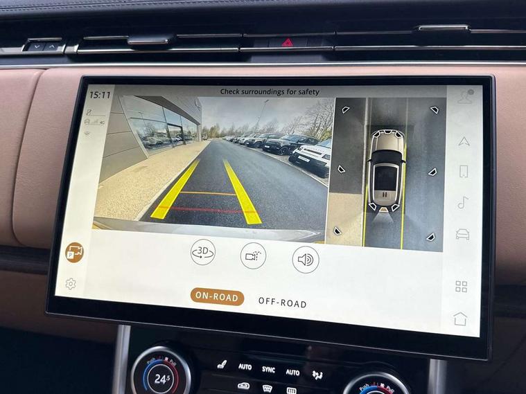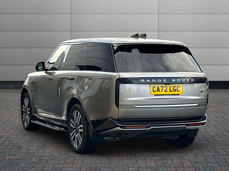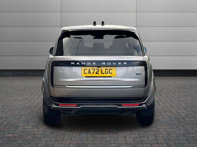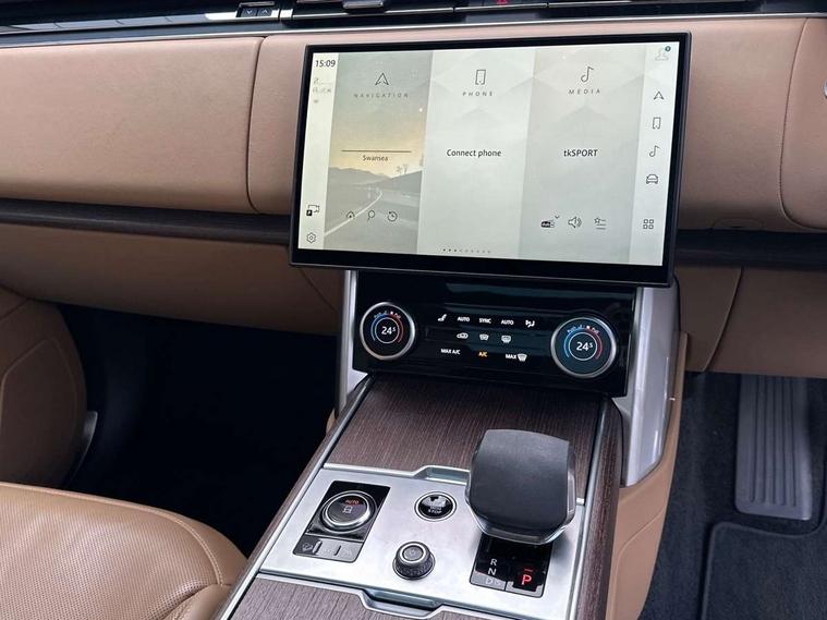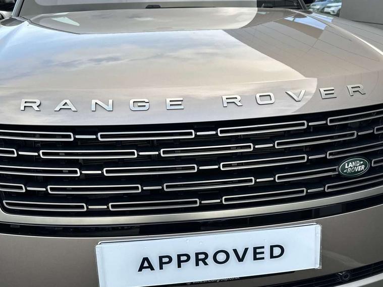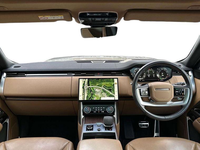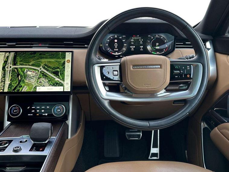13.1" Touchscreen, 3D surround camera inc frwd traffic detection, vehicle clearance guidance, 3D view, clearsight ground view, manoevure light, 360 parking aid, wade sensing, Adaptive cruise control with steering assist, All Terrain Info Centre, All wheel steering, Android Auto, Apple car play, Blind spot assist, Bluetooth connectivity streaming, Driver condition response, Eco mode, Electric power assisted steering (EPAS), Emergency call service, Front and rear parking aid, Interactive driver display, Lane keep assist, Occupant protection assist, Powered gesture tailgate/boot lid, Rear collision monitor, Rear traffic monitor, Remote, Traffic sign recognition with adaptive speed limiter, Wi-Fi Enabled with data plan, Wireless device charging with phone signal booster, 7 kW onboard charger, 8 speed automatic transmission, Active damper technology system, Adaptive dynamics, All terrain progress control, All Wheel Drive (AWD), Automatic access height, Home charging cable 5m Mode 2 including plugs, Public charging cable 5m Mode 2 including plugs, Terrain Response 2 Auto, Twin speed transfer box, Digital Audio Broadcast radio-DAB, Pivi pro including smart settings, Connected navigation pro, nuance speech, USB socket, Acoustic laminated windscreen, Animated directional indicators, Automatic headlights, Automatic levelling headlights, Centre high mounted stop light, Electric windows with one touch open/close and anti trap, Electrical towing preparation, Flush deployable exterior door handles, Front and rear recovery eyes, Front fog lights, Headlamp power wash, Heated rear window, Heated washer jets, LED tail lights, Power fold, auto-dimming, heated door mirrors with approach lights, Rain sensing windscreen wipers, Range rover badge, Rear boot, Rear fog lights, Rear side wing doors, Rear wash/wipe, Side repeater indicators in mirror, Trailer stability assist, Winter wiper park position, 12V power sockets, 3 seat bench in 2nd row, Air quality sensor, Bright metal pedals, Cabin lighting, Customer configurable single point entry, Driver and passenger front seat armrests, Easy boot loading, Ebony Carpet, Front and rear cupholders, Front and rear grab handles, Front head restraints, Gearshift paddles, Heated steering wheel, Hook in load space, Loadspace light, Luggage tie down in loadspace, Multifunction steering wheel, Rear centre armrest, Rear head restraints, Rear ISOFIX, Single front passenger seat, Twin blade sunvisors with Illuminated vanity mirrors, Upper and lower glovebox, Online pack with data plan - Range Rover, 3x3 point rear seat belts, Anti-lock braking system (ABS), Brake hold function, Cornering brake control (CBC), Customer configurable autolock, DSC - Dynamic Stability Control, Electronic brake force distribution, Electronic parking brake, Electronic traction control, Emergency brake assist, Emergency braking, Front airbags with passenger seat occupant detector, Front side airbags, Hill descent control, Hill launch assist, Low traction launch, Power operated child locks, Roll stability control, Tyre pressure monitoring system (TPMS), Immobiliser, Intrusion sensor and alarm, Keyless entry, Locking wheel nuts, Remote central locking, Noble chrome controls,
