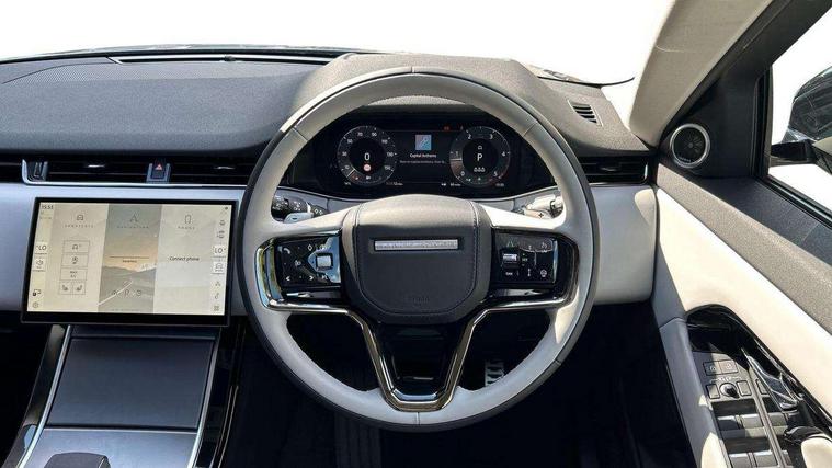 11.4" touch screen, Adaptive cruise control, Android Auto, Apple car play, Blind spot assist, Bluetooth connectivity, Brake pad wear indicator warning light, Driver condition monitor, eCall emergency system, Eco mode, Electronic power assisted steering (EPAS), Front and rear parking aid, InControl remote, Interactive driver display, Land Rover InControl apps, Lane keep assist, Pivi pro connected includes diamond pivi variant, smart settings, connected navigation pro, nuance speech licence, Powered tailgate/boot lid, Rear collision monitor, Rear traffic monitor, Traffic sign recognition with adaptive speed limiter, Voice control system, Wireless device charging, All terrain progress control, Diesel exhaust fluid (DEF) large tank, Efficient Driveline, Large fuel tank, Passive suspension, Terrain Response 2, Digital Audio Broadcast radio-DAB, Steering wheel mounted controls, Acoustic laminated windscreen, Auto headlights, Automatic headlight levelling, Electric windows with one touch open/close and anti trap, Flush deployable exterior door handles, Front and rear recovery eyes, Heated rear window with timer, Heated washer jets, Heated windscreen, Pixel LED headlights with signature DRL and LED tail Lights, Power fold, auto-dimming, heated door mirrors with approach lights and auto dimming driver side, Rain sensing windscreen wipers, Rear animated directional indicators, Rear fog lights, Rear side wing doors, Rear wiper, Side repeater indicators in mirror, Tailgate spoiler, Third brake light, Winter wiper park position, 14 way driver memory electric front seats with 2 way manual headrests + 4 way lumbar support, bolsters, 40:20:40 split folding rear seats with centre headrest and armrest, Ambient interior lighting, Bright metal pedals, Carpet mats, Chrome tread plates with range rover branding Includes stainless steel loadspace scuff plate with etched graphic, Customer configurable single point entry, Electrically adjustable steering column with memory function and easy entry/exit, Front and rear cupholders, Heated steering wheel, Isofix system on outer rear seats, Overhead lighting console, Overhead stowage for sunglasses, Passive front head restraints, Rear air vents, Rear head restraints, Satin chrome gearshift paddles, Single passenger seat, Sunvisors with illuminated vanity mirrors, Twin sliding front centre armrest, Online pack with data plan - Evoque, Power socket pack 2 - Evoque, 3 rear 3 point seatbelts, Anti-lock braking system (ABS), Brake hold function, Customer configurable autolock, DSC - Dynamic Stability Control, Electronic brake force distribution, Electronic parking brake, Electronic traction control, Emergency braking, Front and rear seatbelt reminder, Hill descent control, Hill launch assist, Low traction launch, Occupant protection assist, Passenger seat occupant detector, Power operated child locks, Roll stability control, Six airbags - Driver and passenger airbags/driver knee airbag/front side airbag and curtain airbags, Torque vectoring brake, Tyre pressure monitoring system, Alarm, Immobiliser, Intrusion sensor, Keyless entry, Locking wheel nuts,